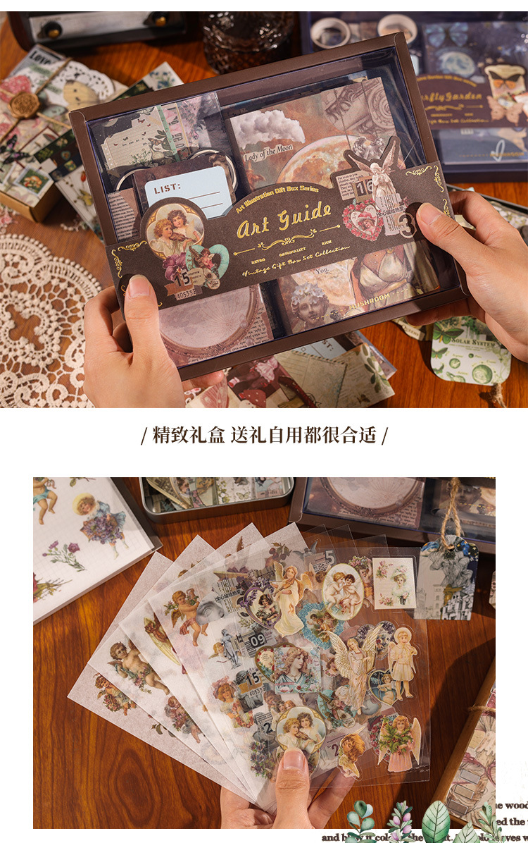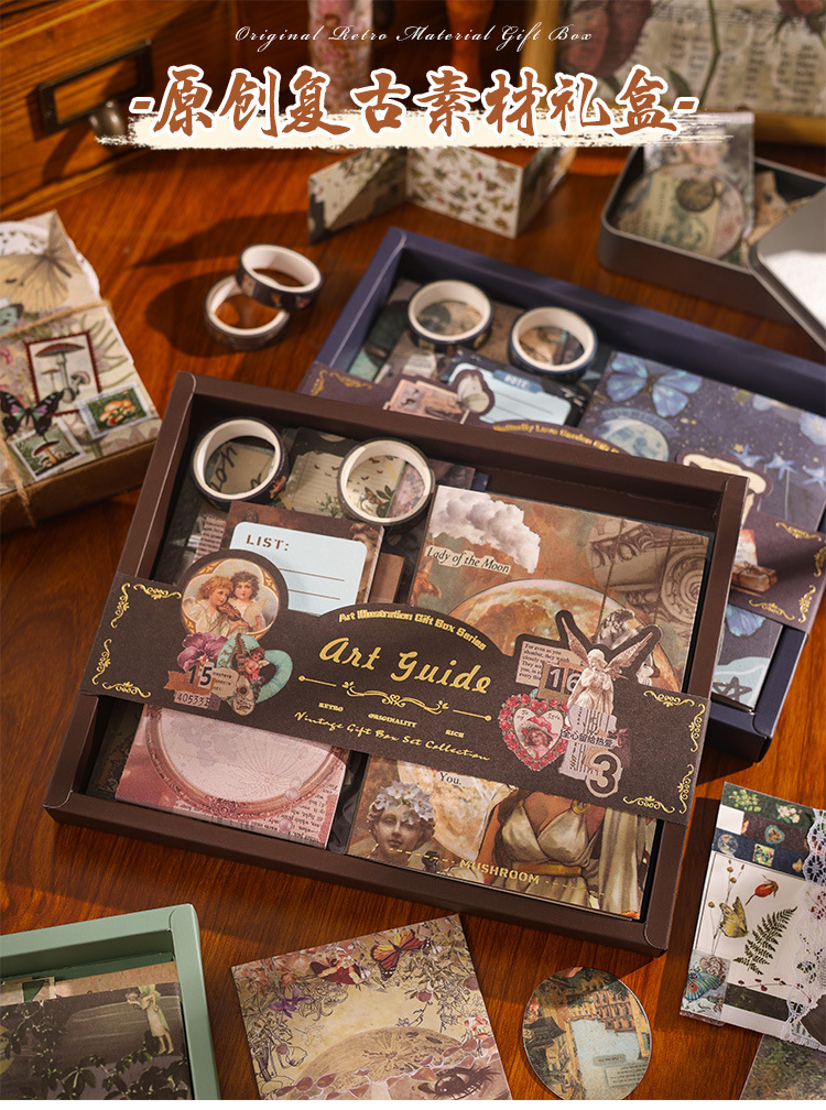 Kotak hadiah Jurnal Retro, setelan perlengkapan musim sekolah, hadiah kecil, hadiah siswa sekolah dasar, perlengkapan alat tulis sekolah