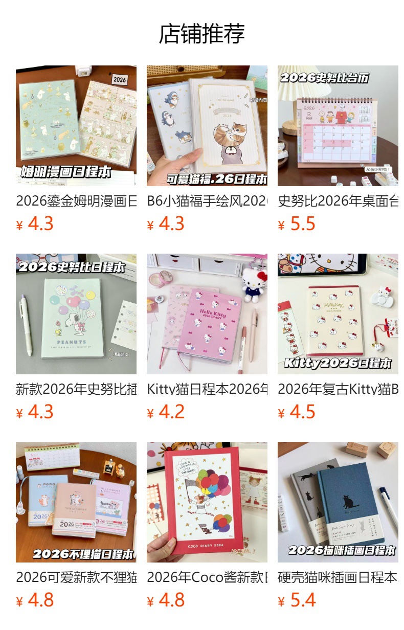 米菲兔大象2026日程本彩色内页可爱卡通计划笔记事本子红色蓝色