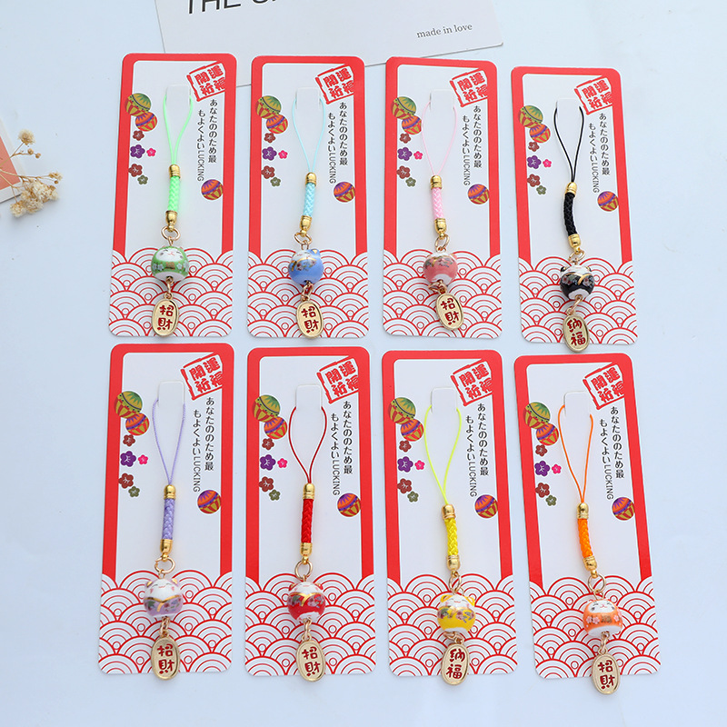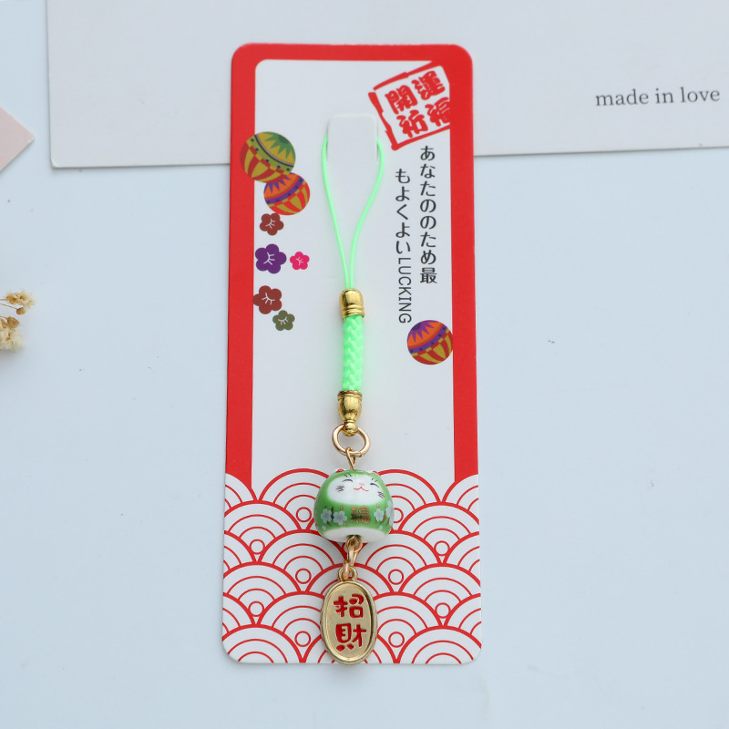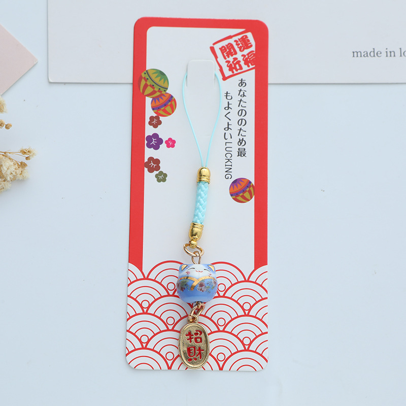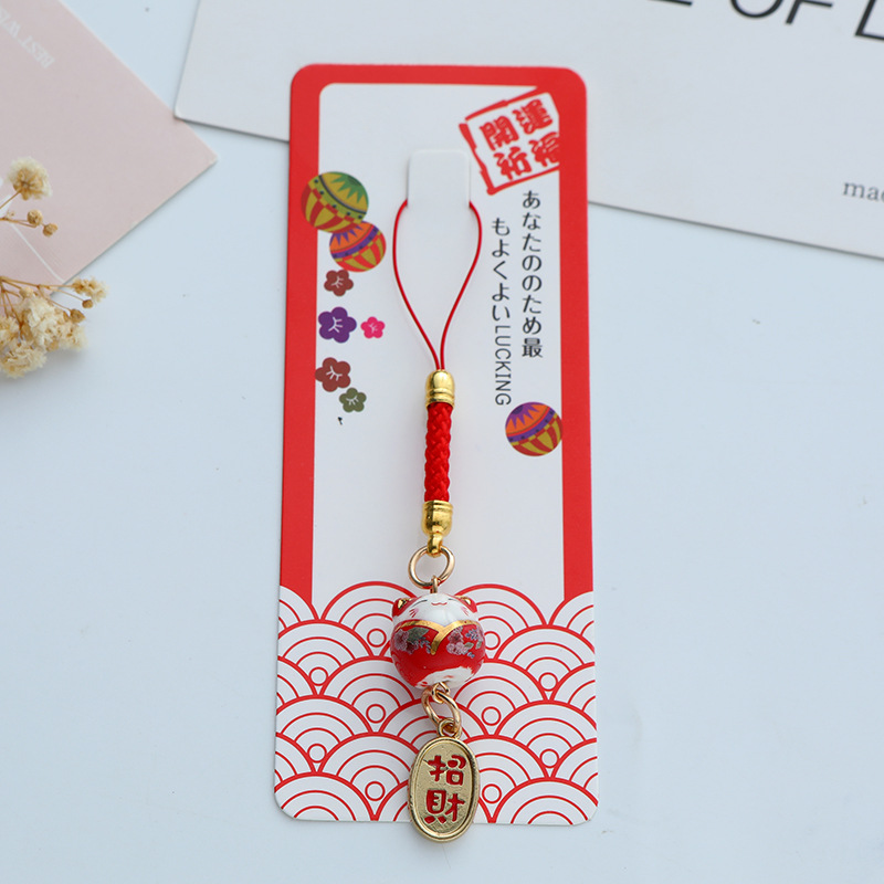 招财纳福陶瓷招财猫钥匙扣挂件包包装饰金属礼品配件挂饰卡通日式
