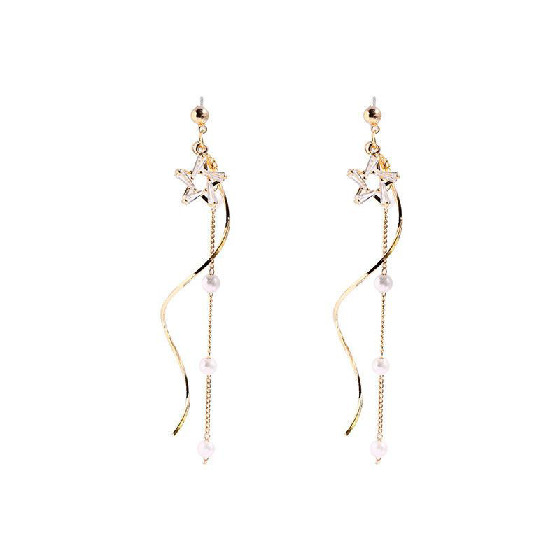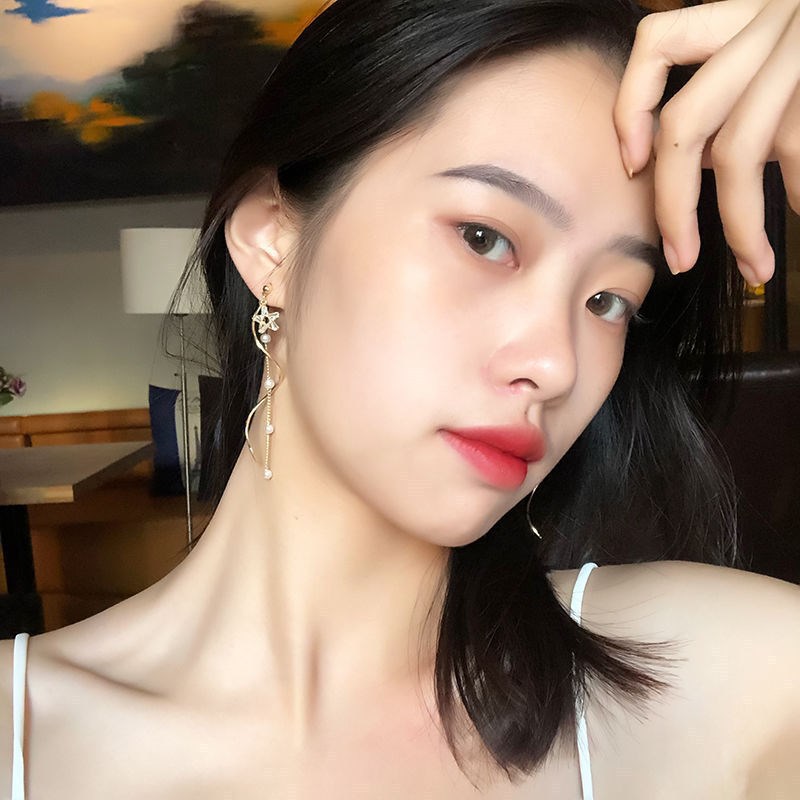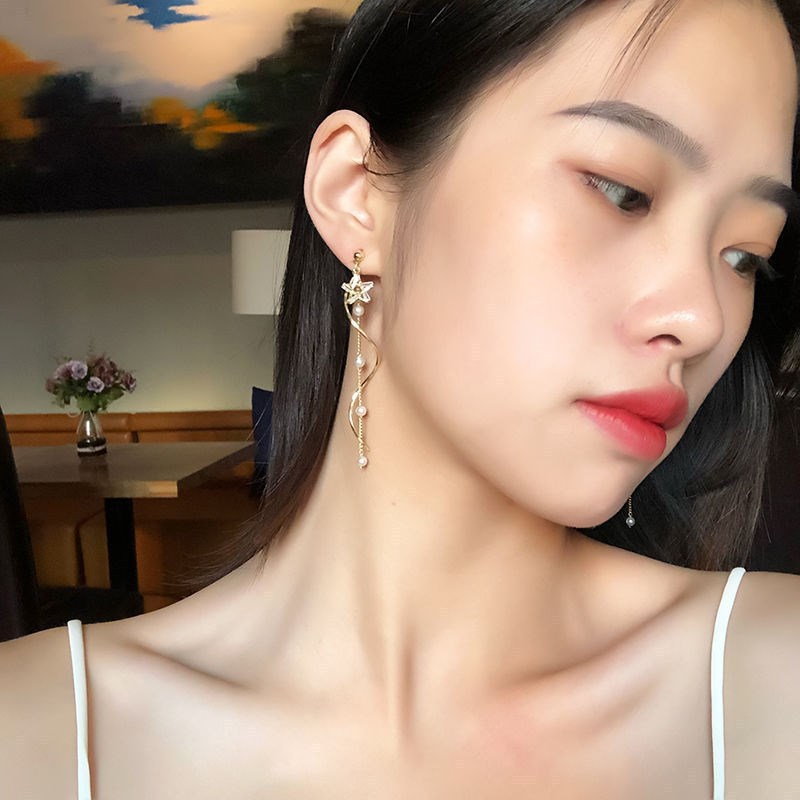 Anting-anting Wanita Korea Dongdaemun Model Prancis Anting-anting Mutiara Rumbai Model Panjang Bintang Elegan Perak S925 Retro