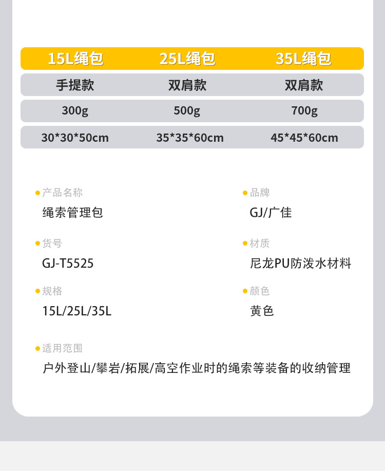 户外高空作业攀岩绳包多功能登山包收纳包防水耐磨包装备包