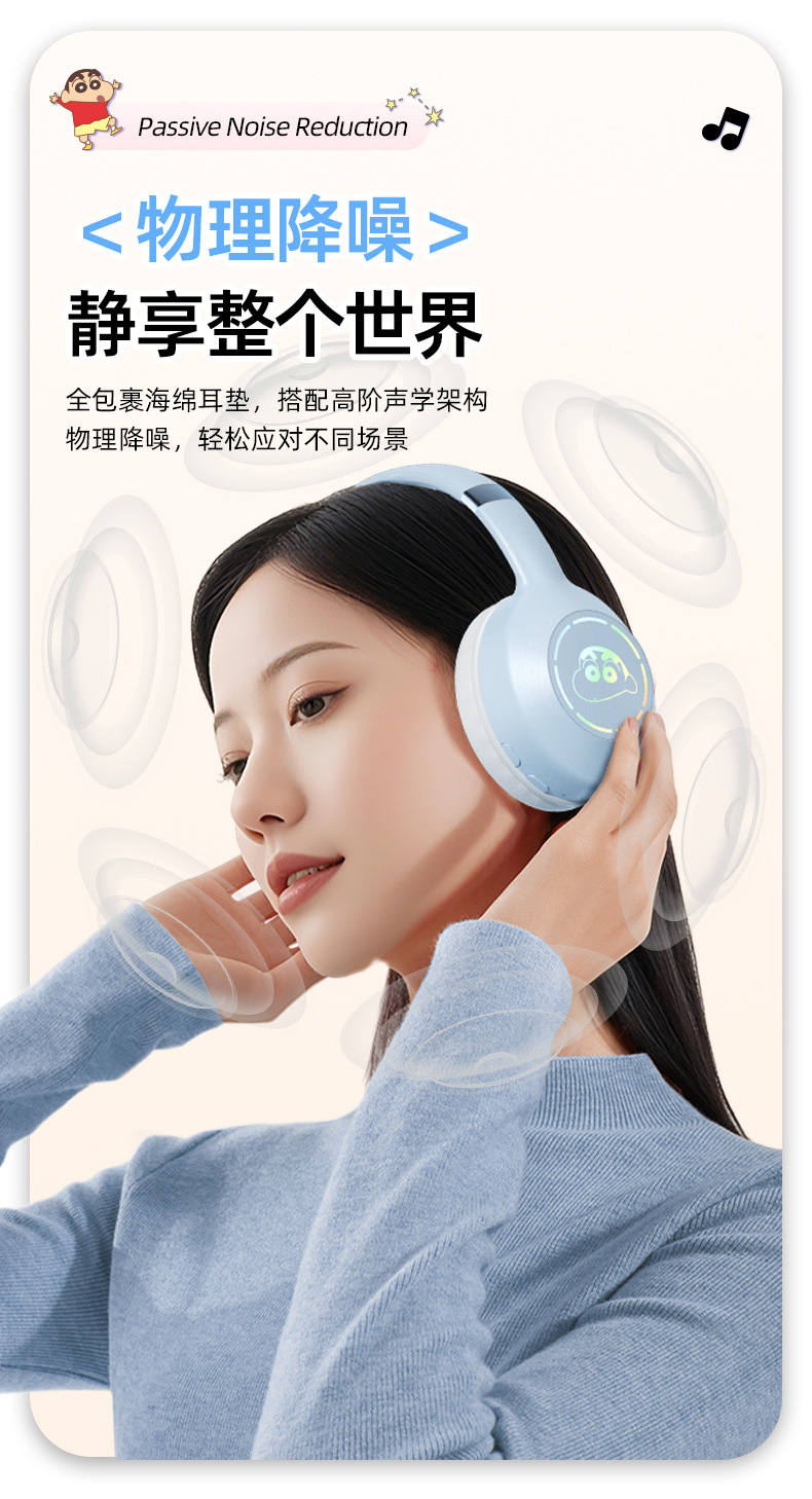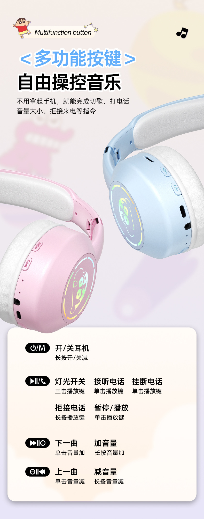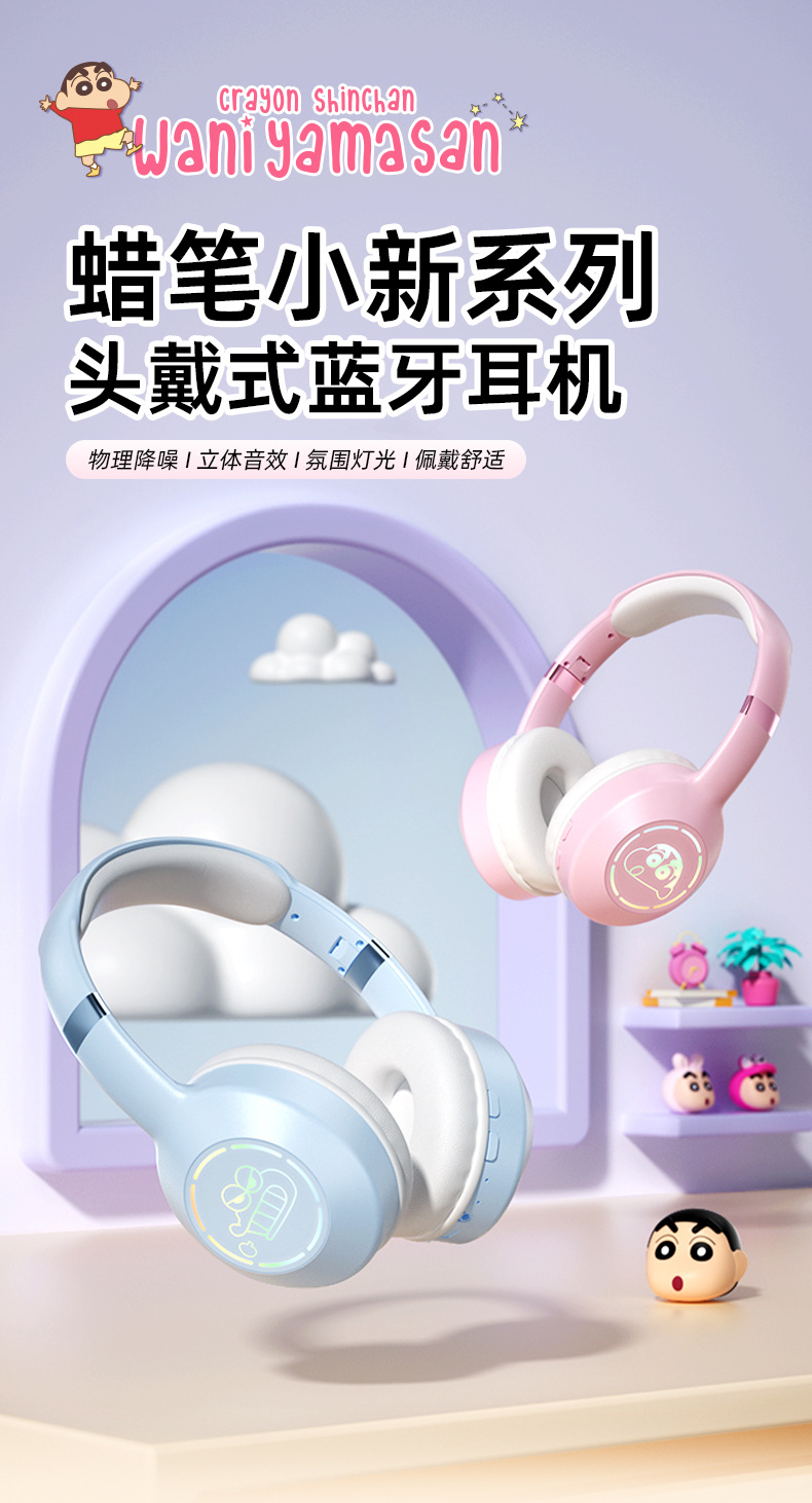 Crayon Shinchan Resmi Headset Bluetooth Headset Cloud Nyaman 0 Tekanan Efek Suara Stereo Super Clear