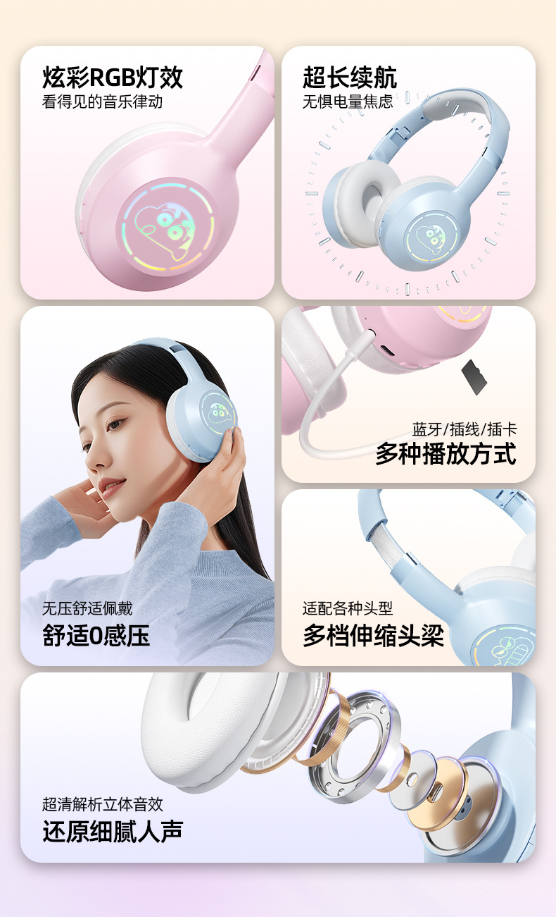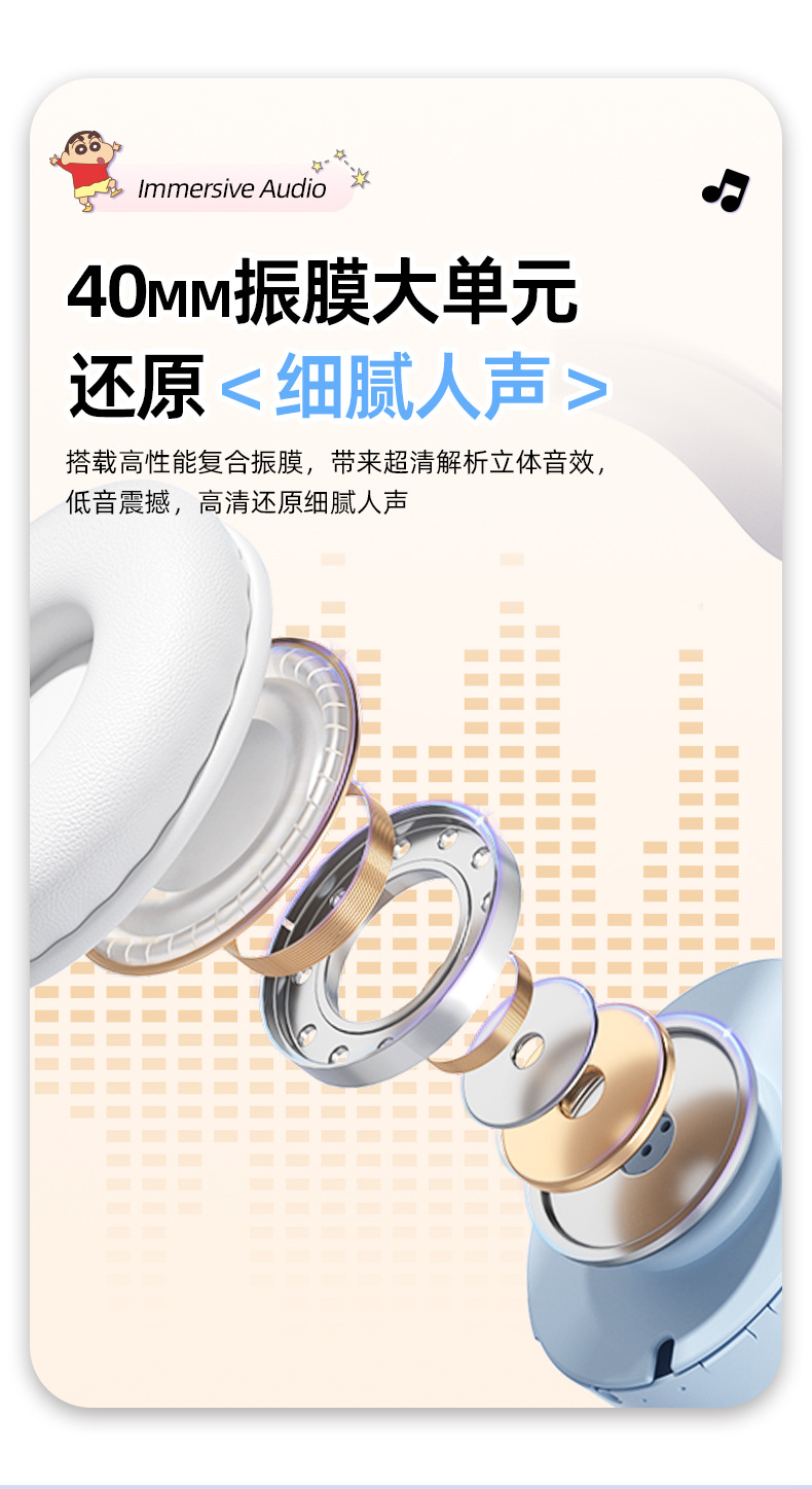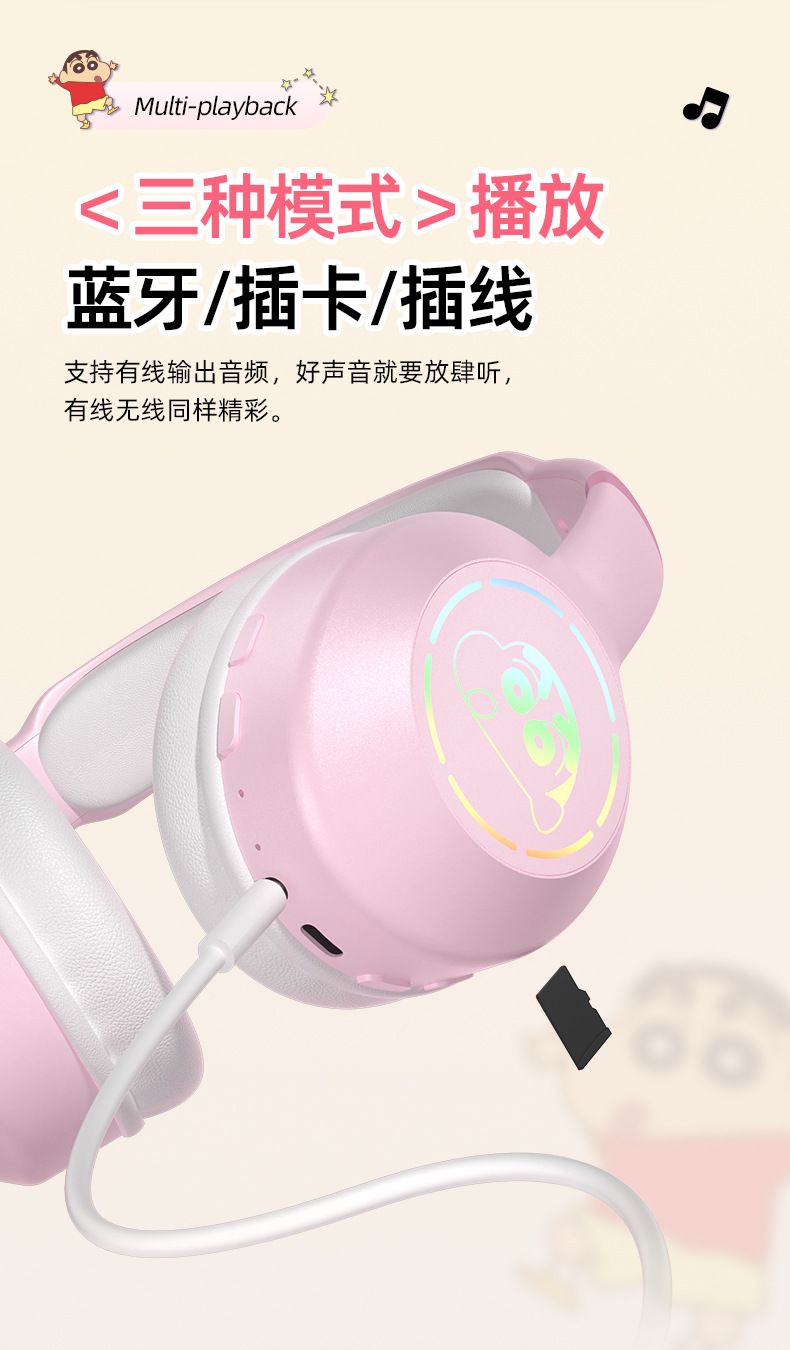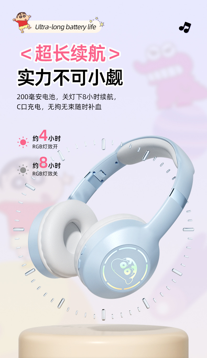 Crayon Shinchan Resmi Headset Bluetooth Headset Cloud Nyaman 0 Tekanan Efek Suara Stereo Super Clear