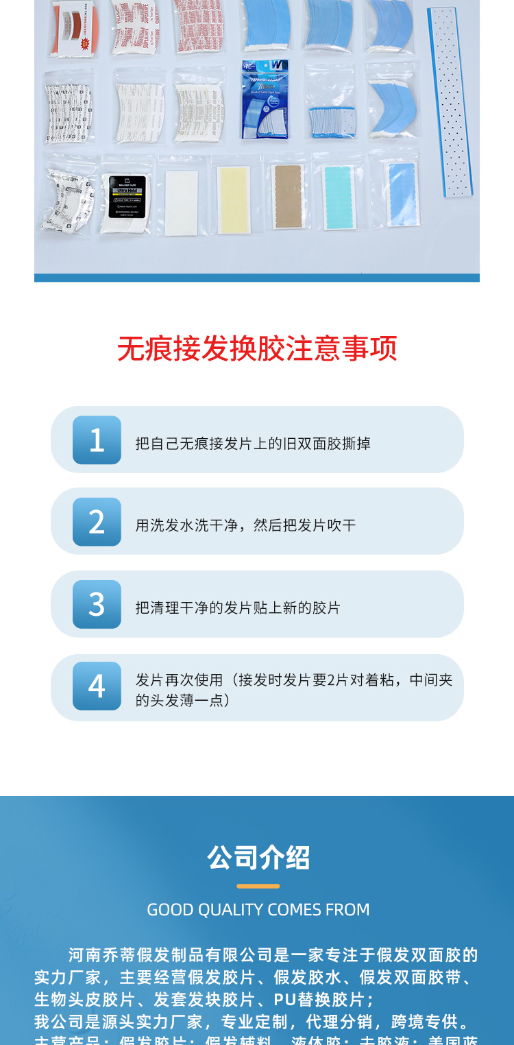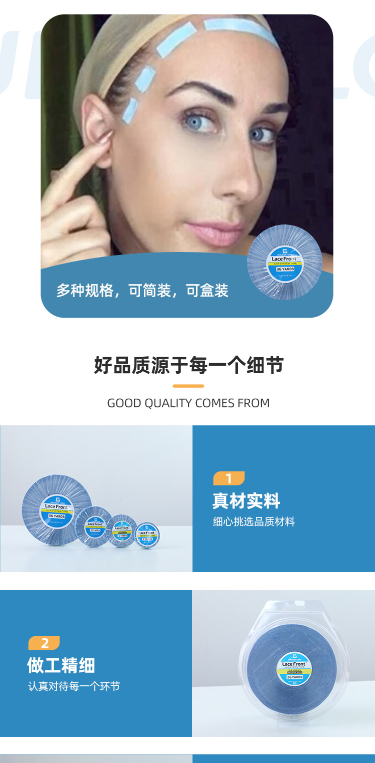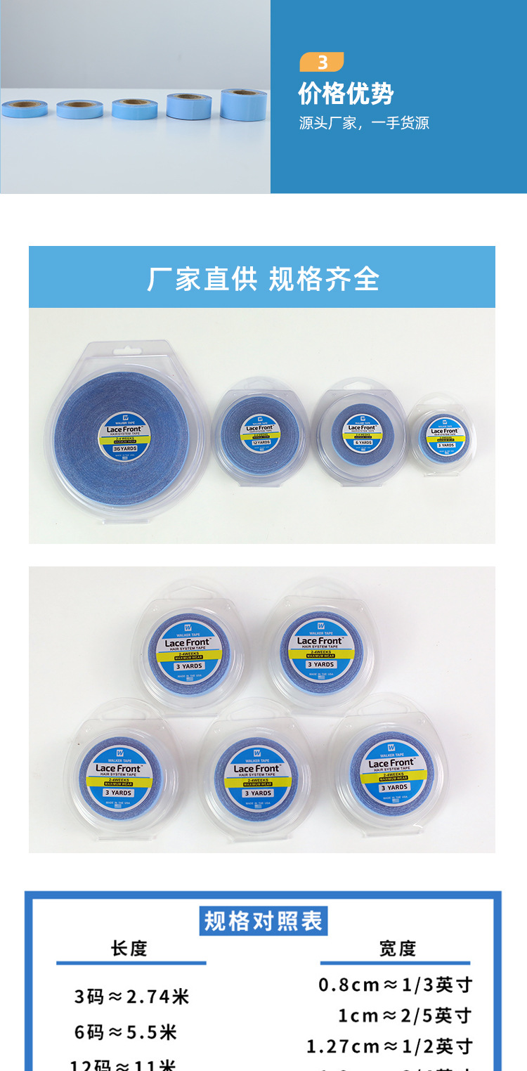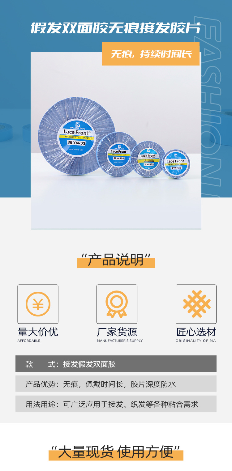 假发胶片美国walker蓝胶无痕接发补发卷装胶带双面胶厂家直供