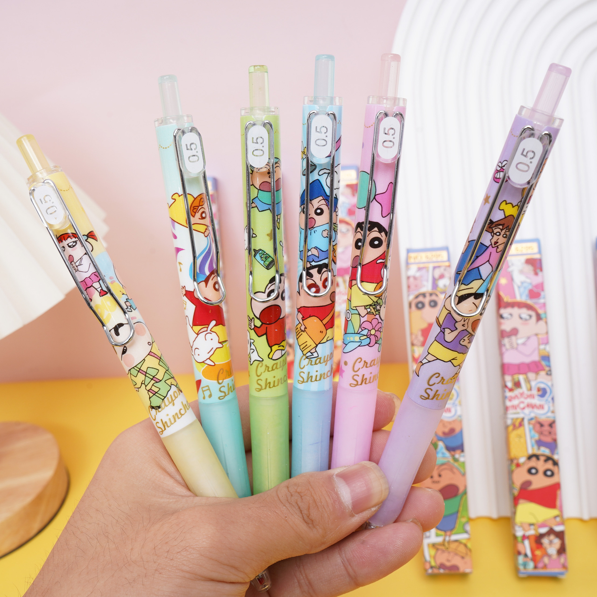 蜡笔小新惊喜盲盒笔卡通再来一盒刷题舒适ST头黑色按动中性笔跨境
