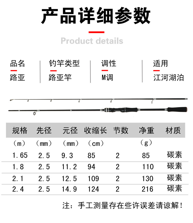 跨境路亚竿碳素路亚黑鱼竿插节竿渔具钓鱼竿海竿鱼竿