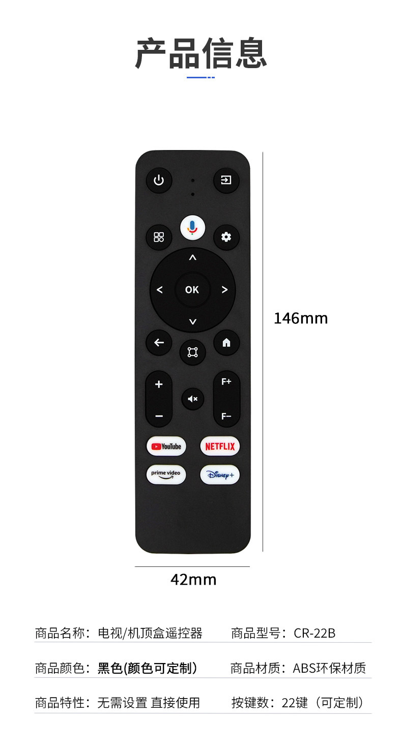 跨境新品语音蓝牙电视通用无线遥控器 Voice Remote 22键源头厂家