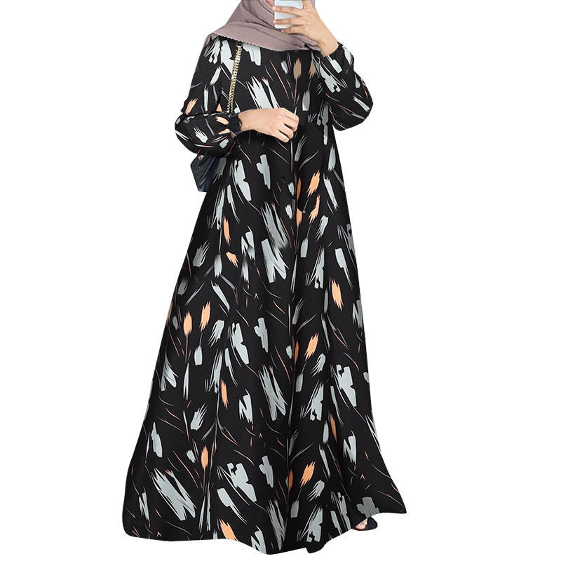 Stok Tersedia Jubah Model Baru Lintas Batas Timur Tengah Gaun Melayu Muslim Bercorak Gaun Panjang Leher Bulat Lengan Penuh