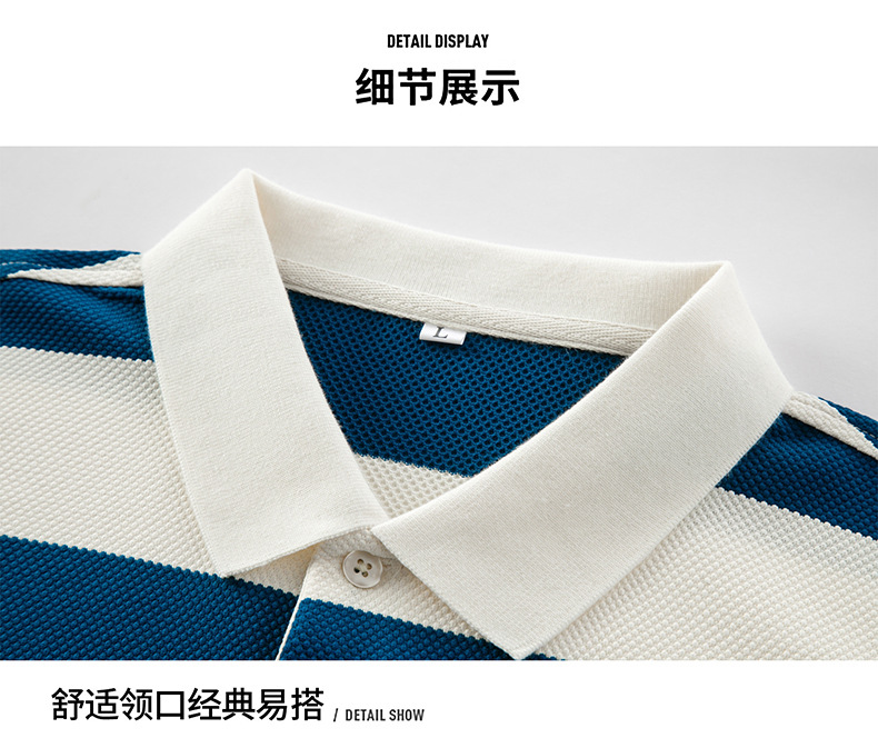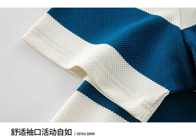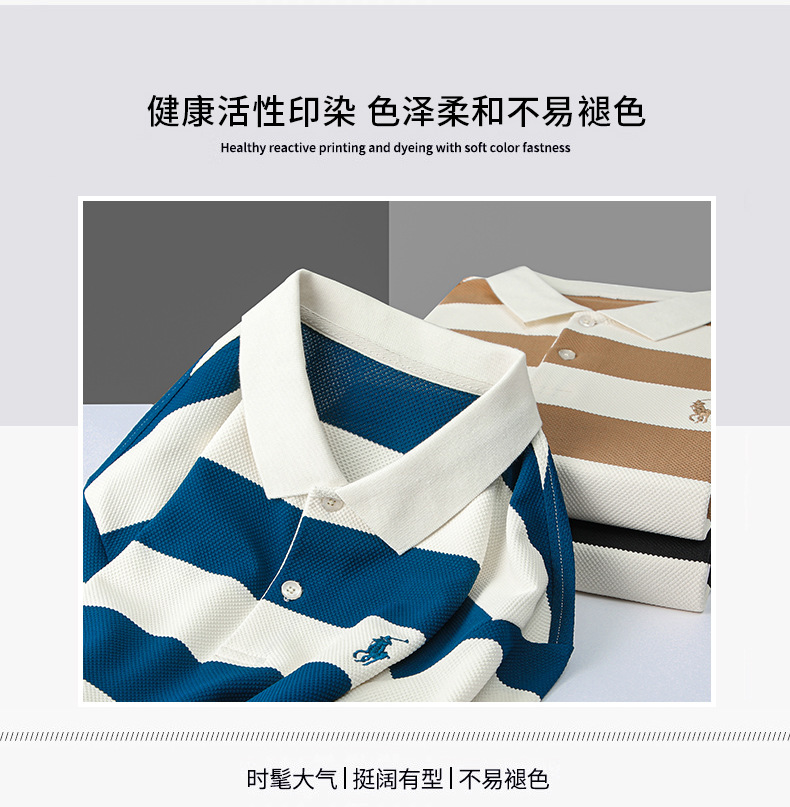 男士polo条纹拼色短袖男士t恤夏季刺绣中青年翻领上衣男士polo
