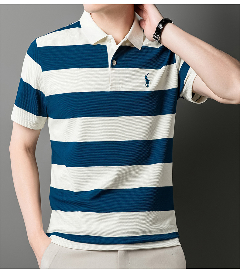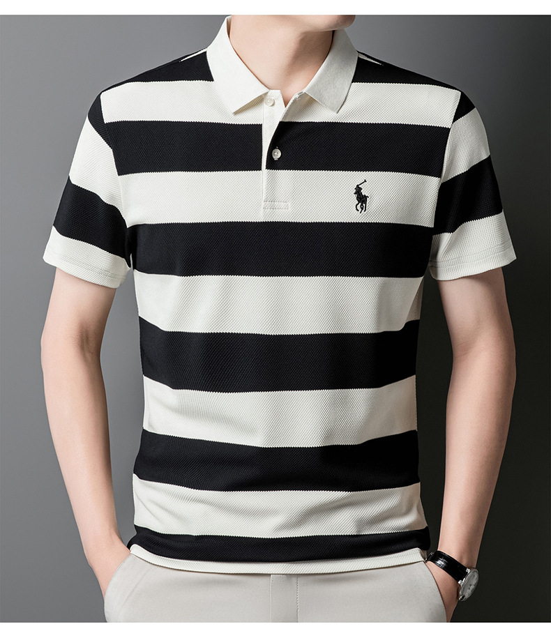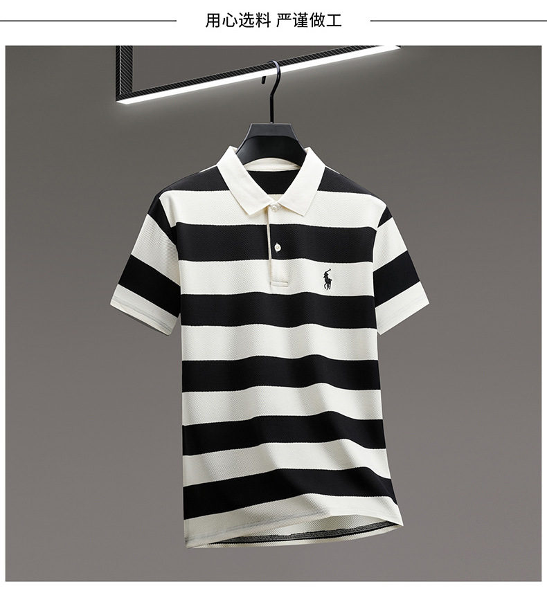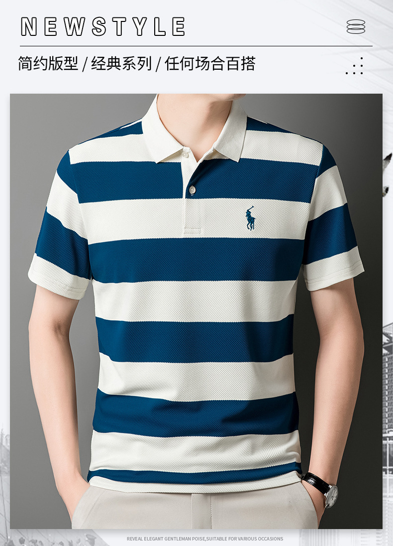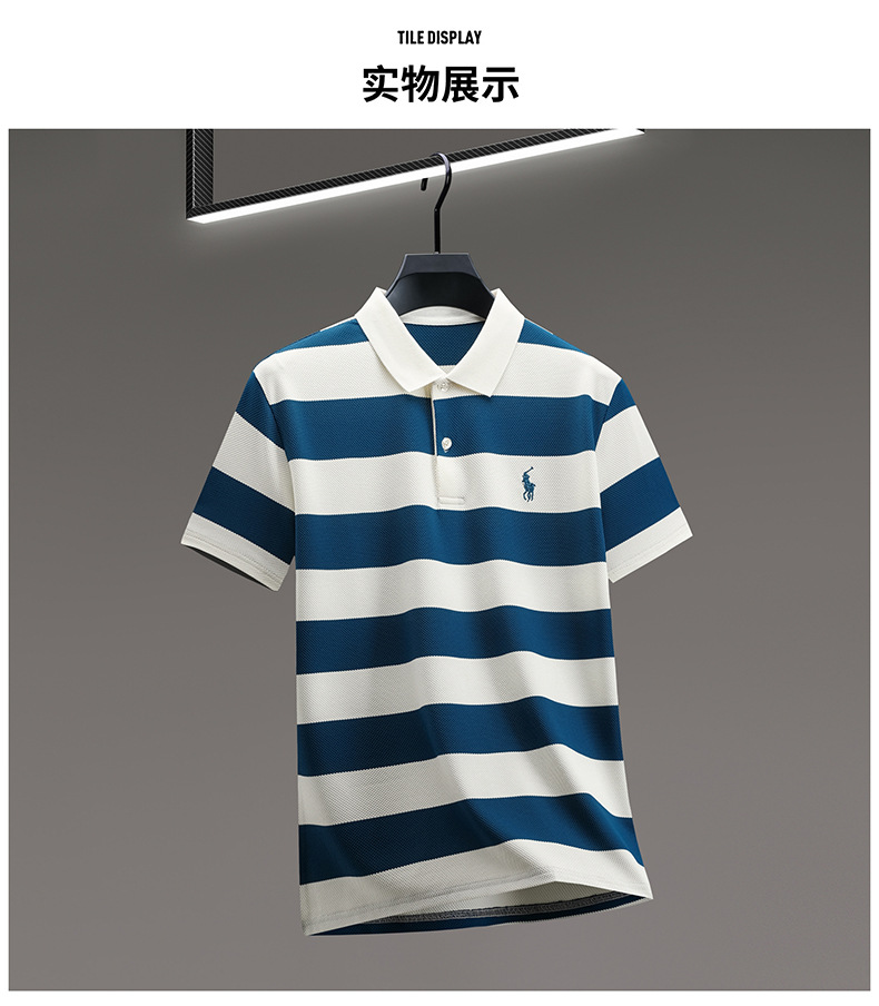 男士高级感条纹polo衫剪刀领短袖夏季新款商务修身无痕短袖t恤男