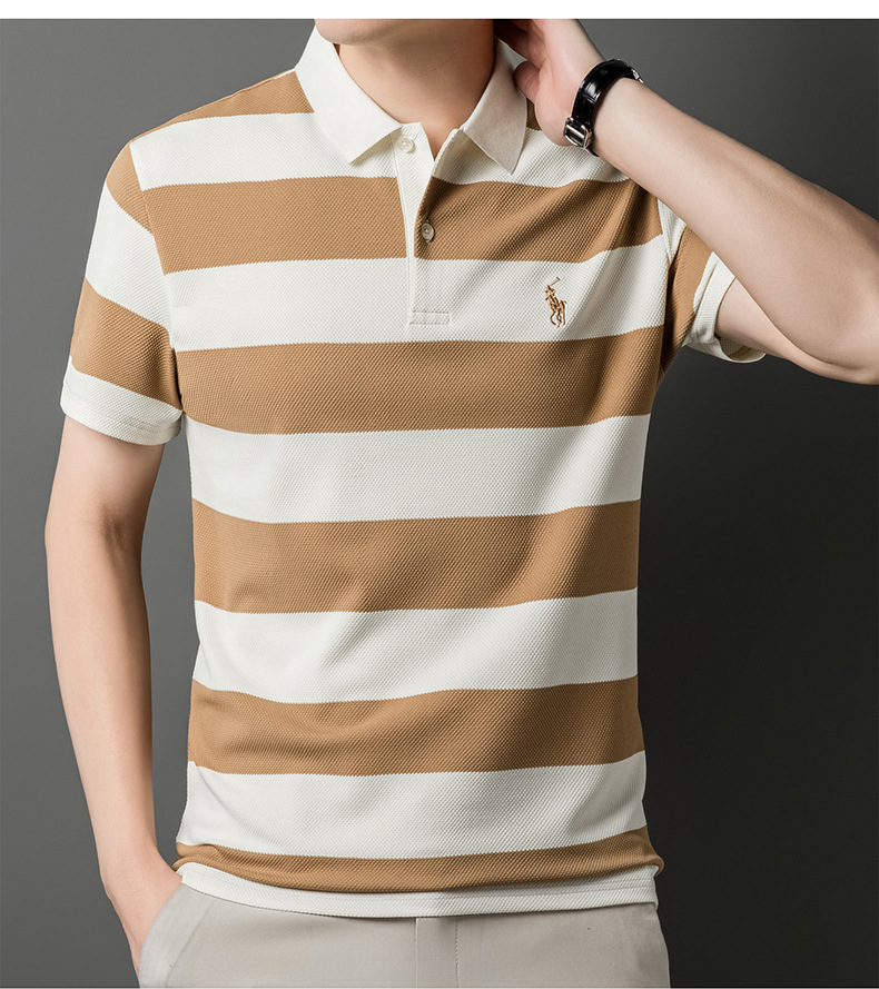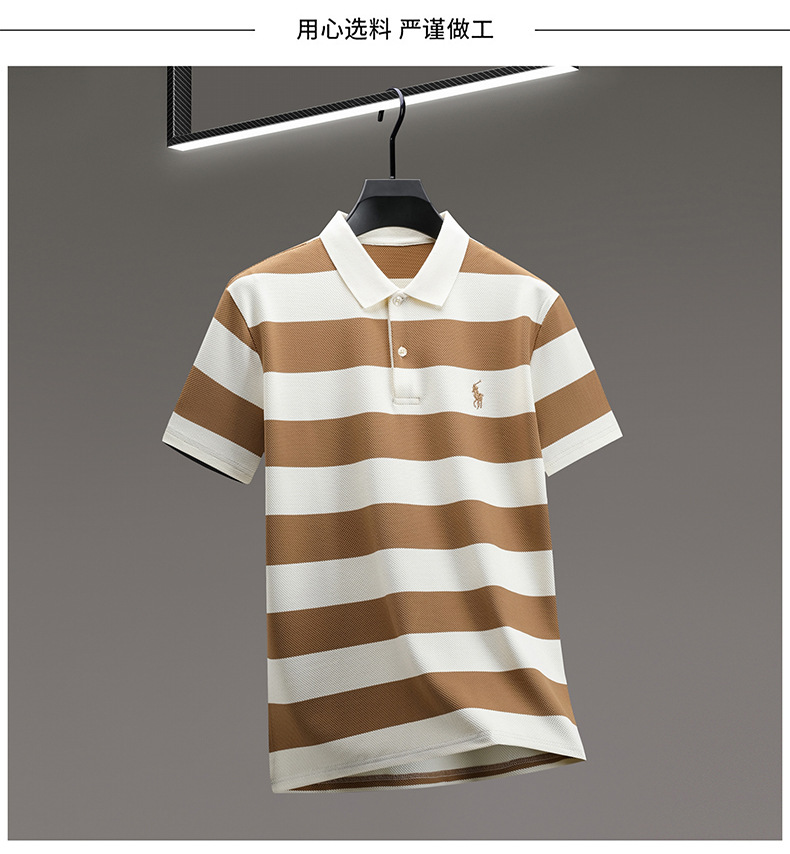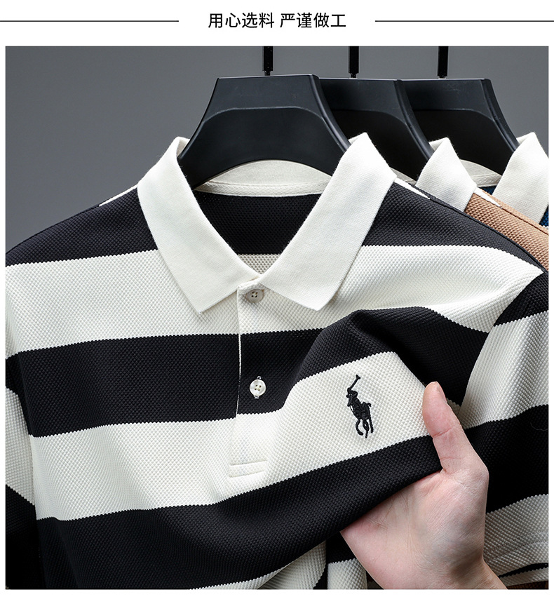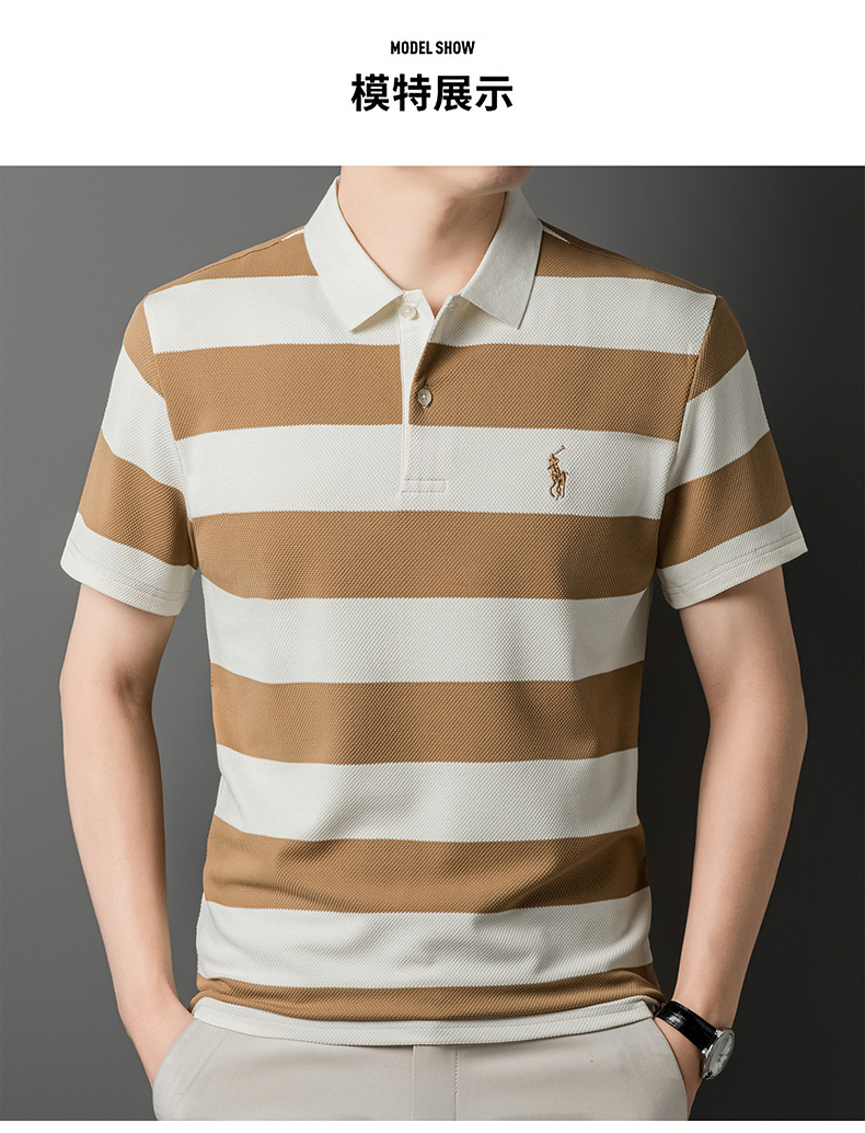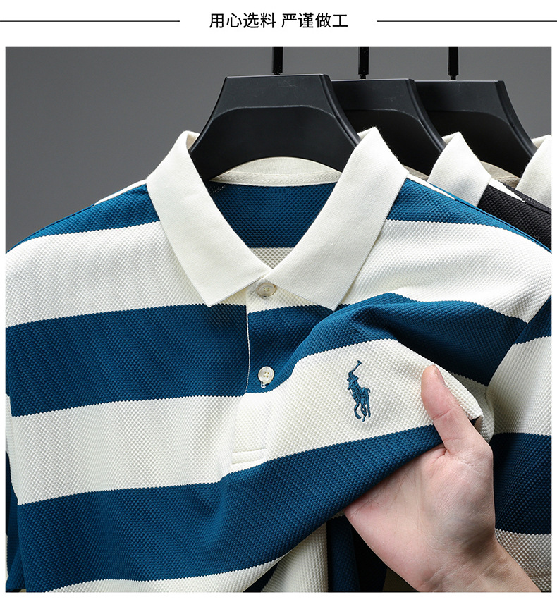 男士高级感条纹polo衫剪刀领短袖夏季新款商务修身无痕短袖t恤男