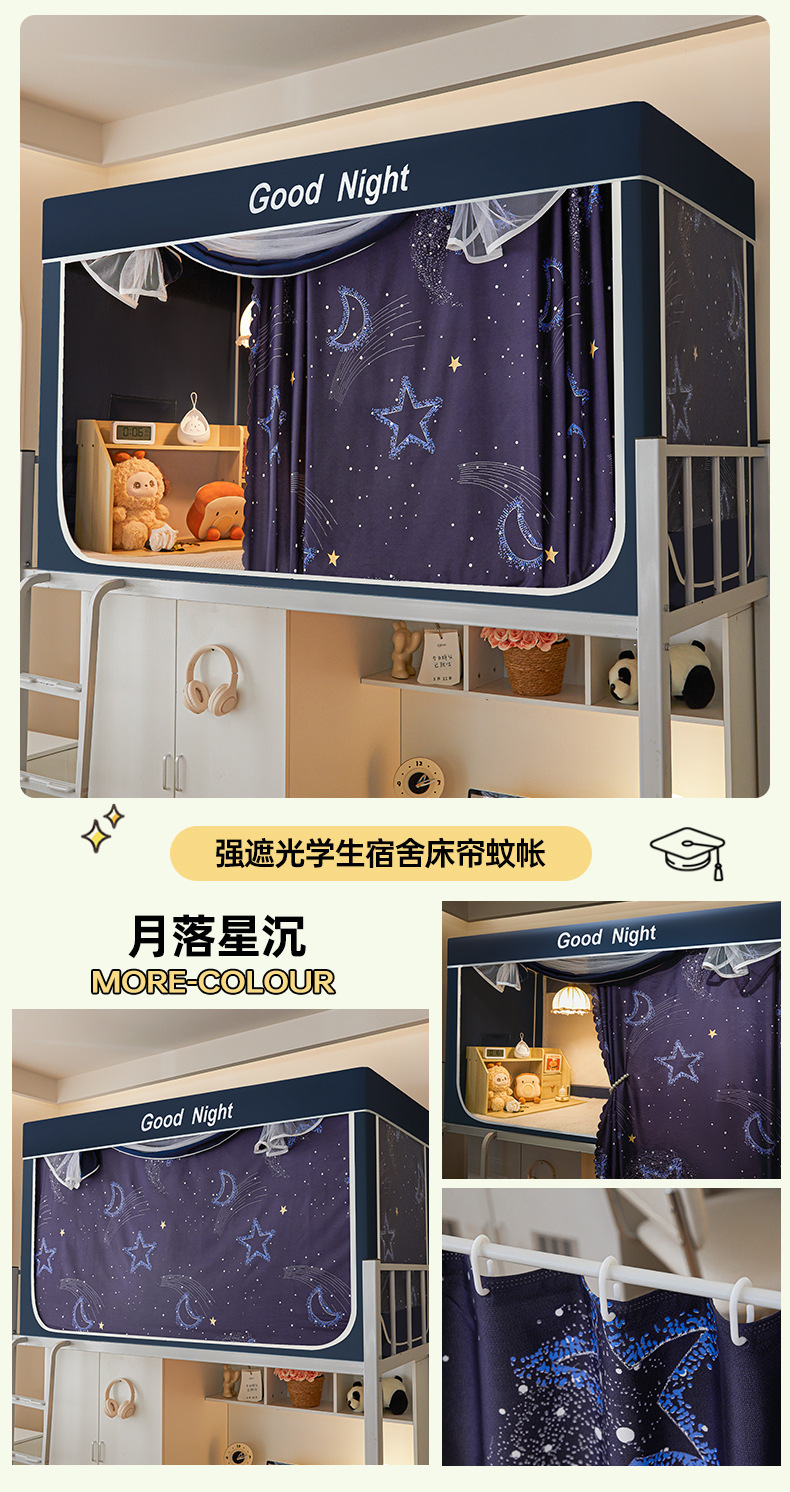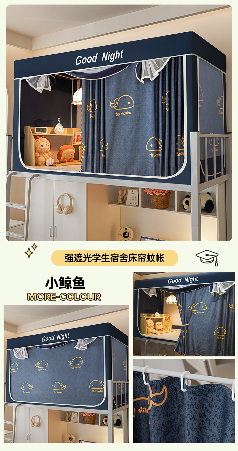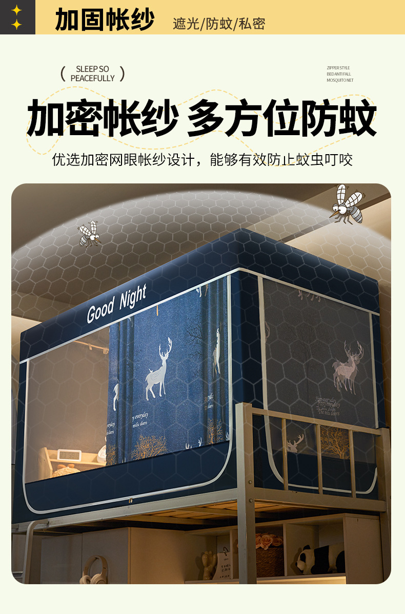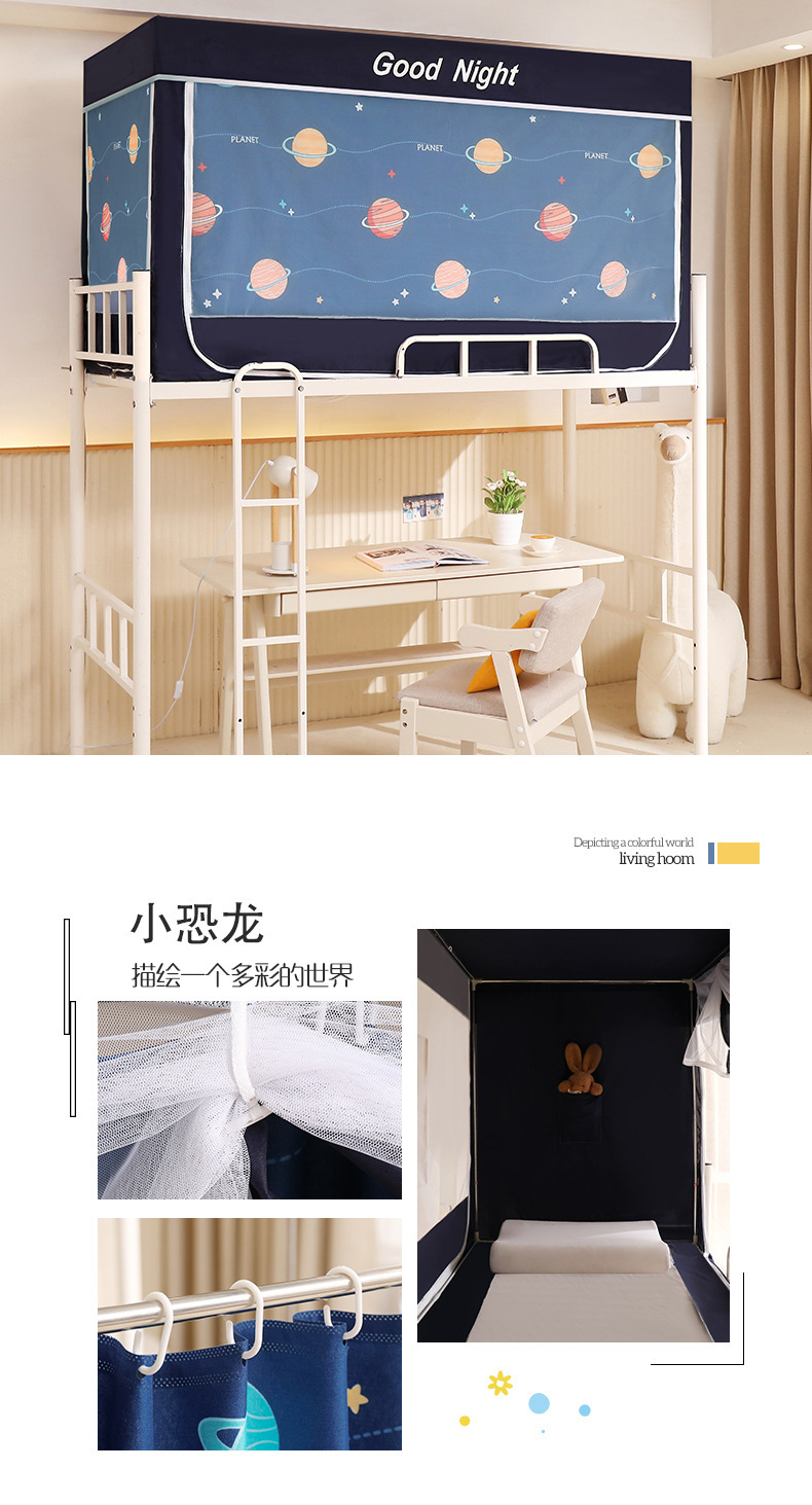 新款遮光防尘一体式学生宿舍蚊帐上下铺隐私床帘加密加厚蚊帐批发