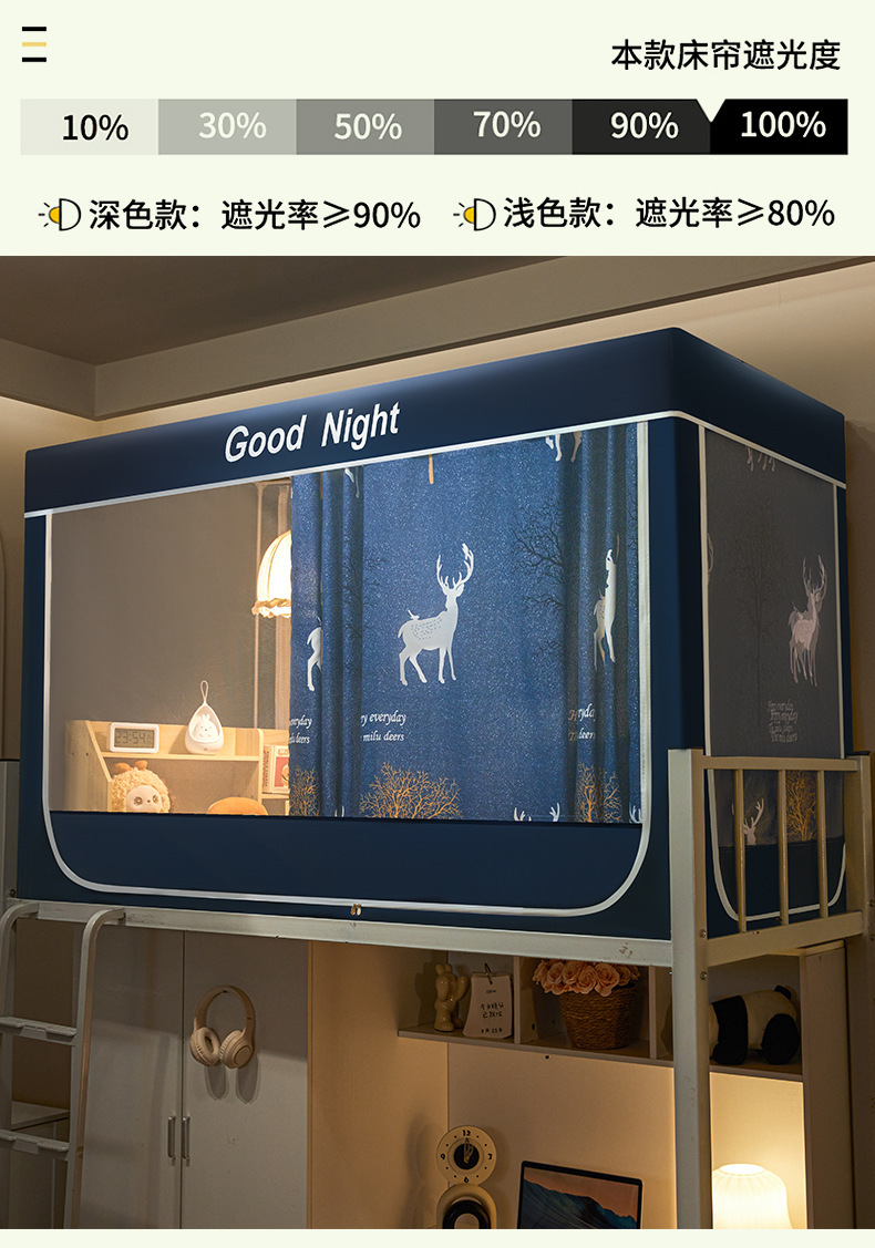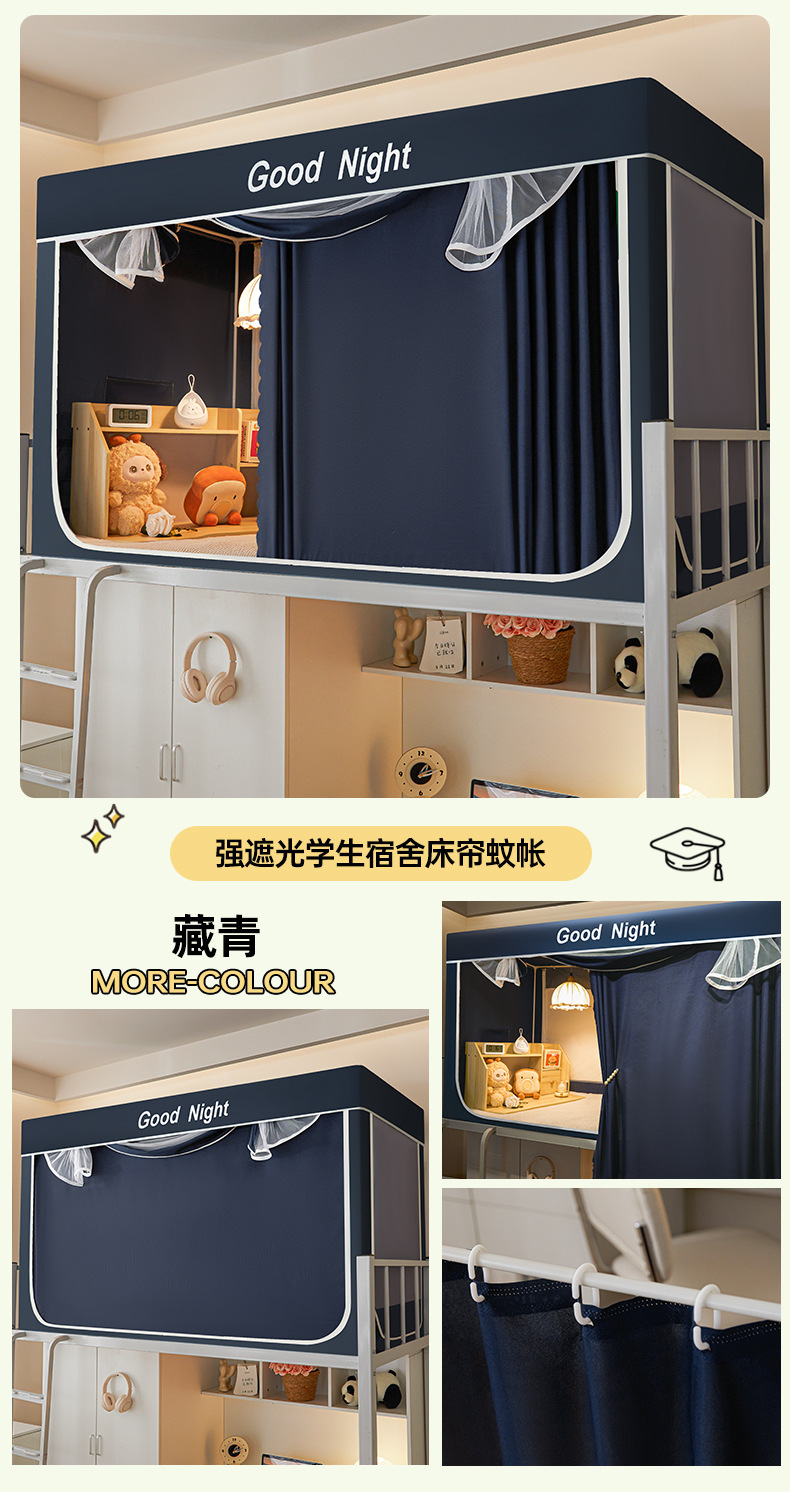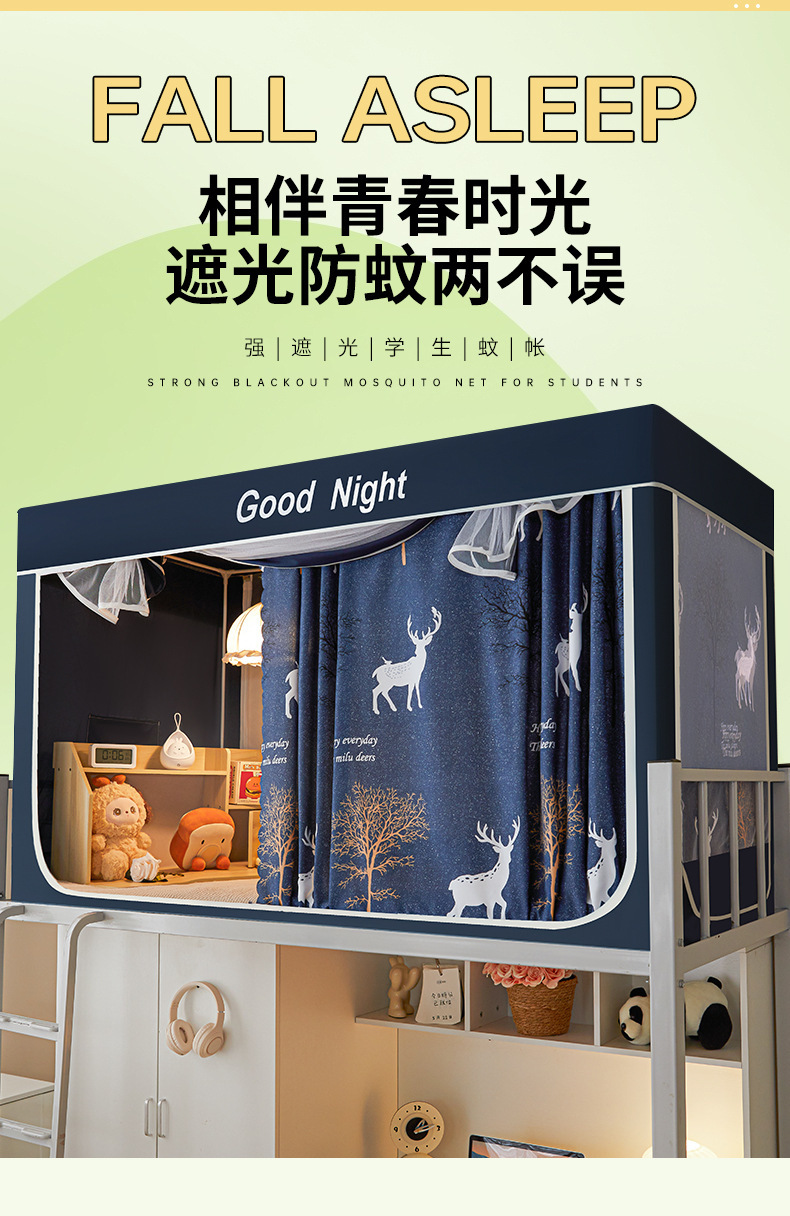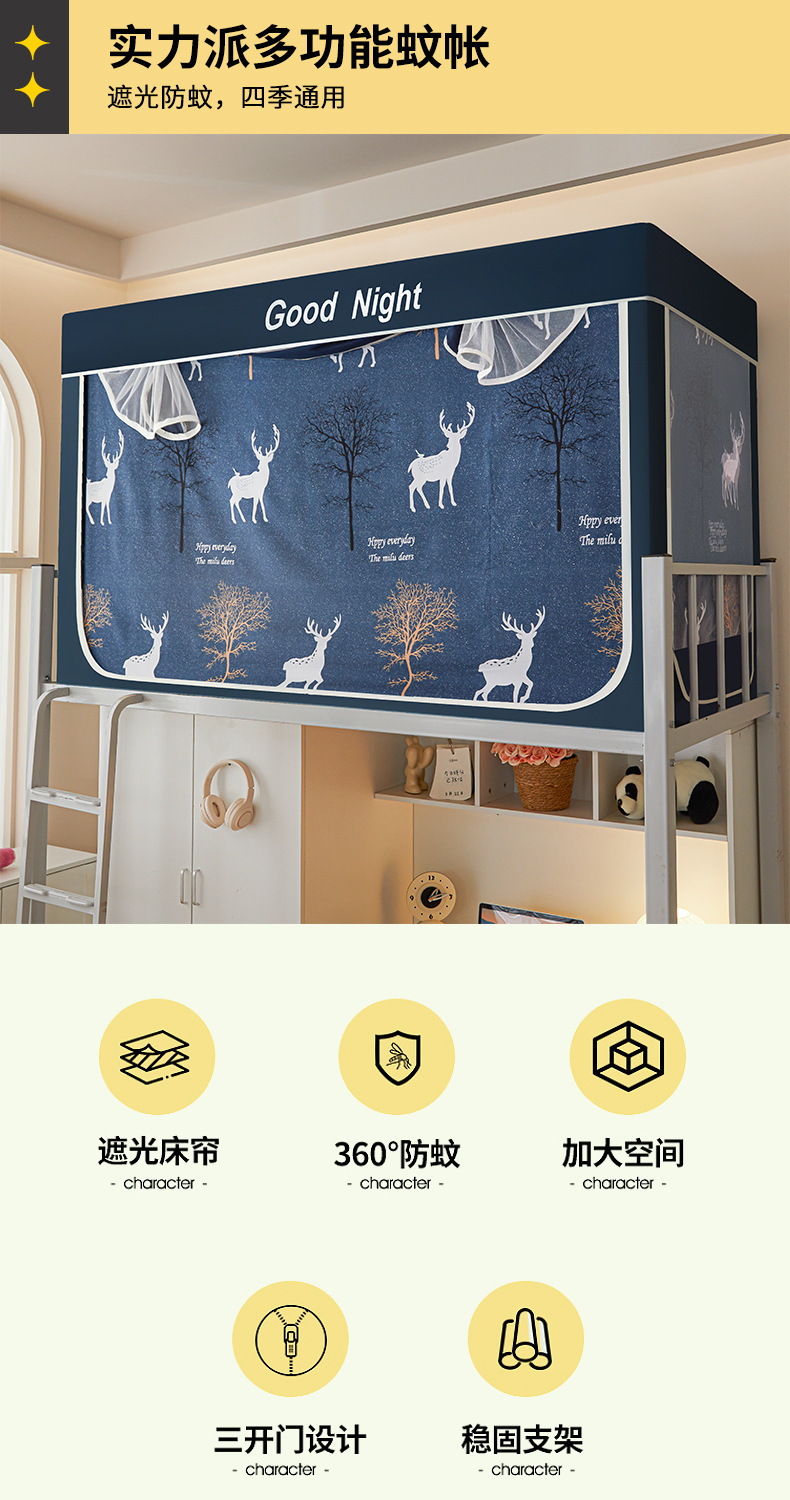 新款遮光防尘一体式学生宿舍蚊帐上下铺隐私床帘加密加厚蚊帐批发
