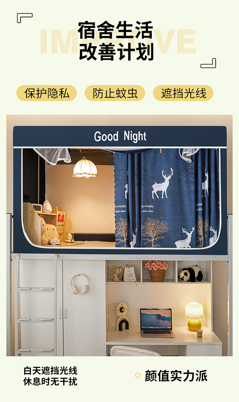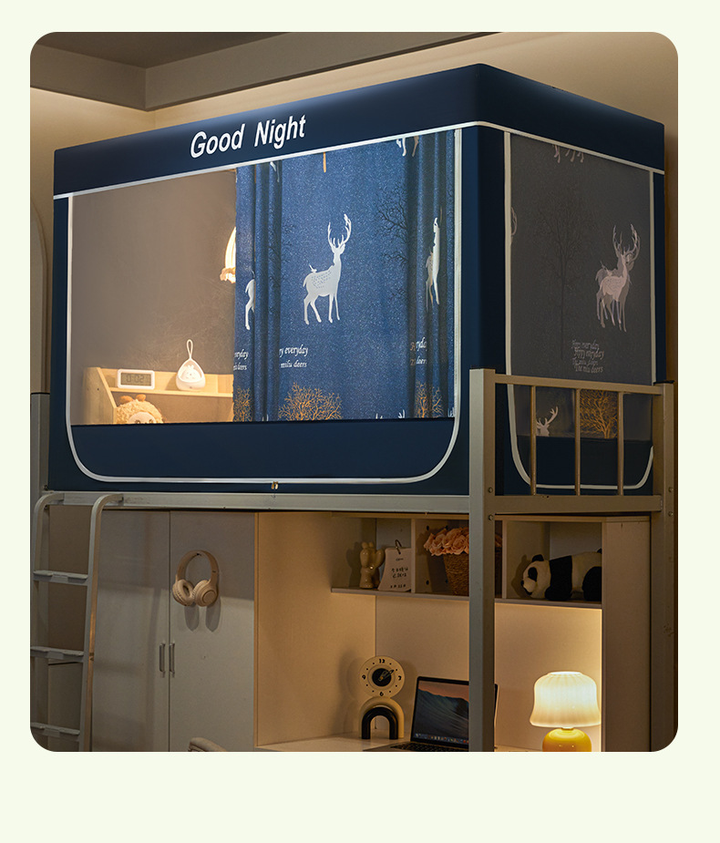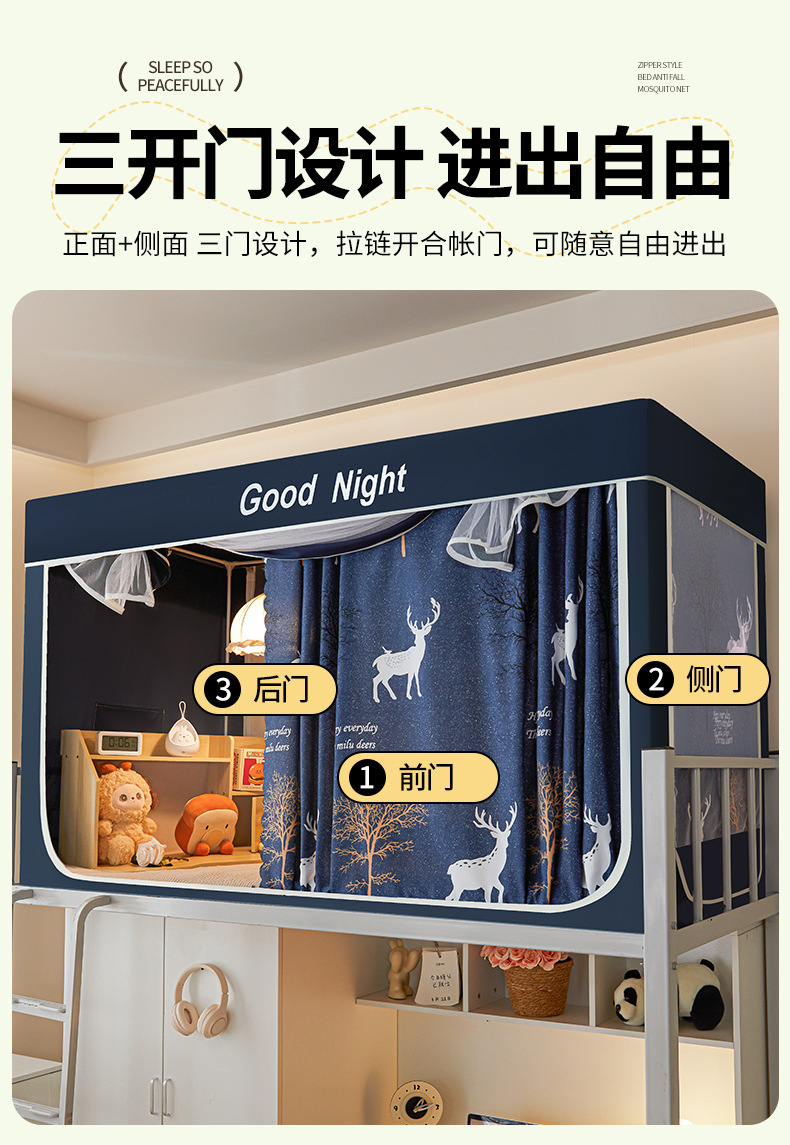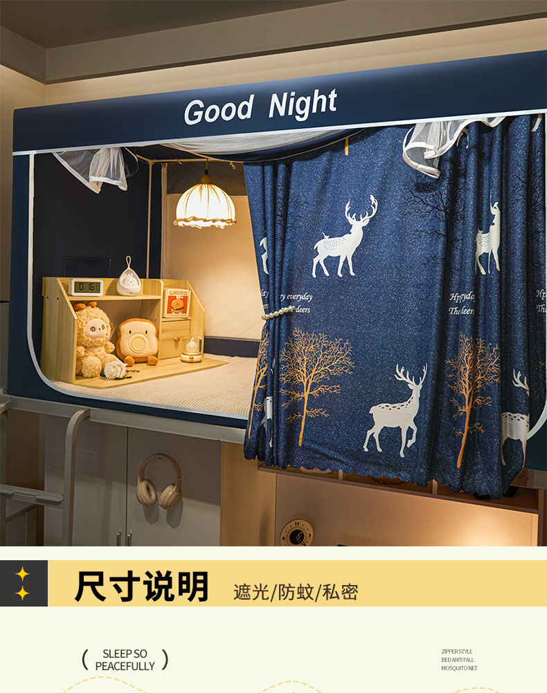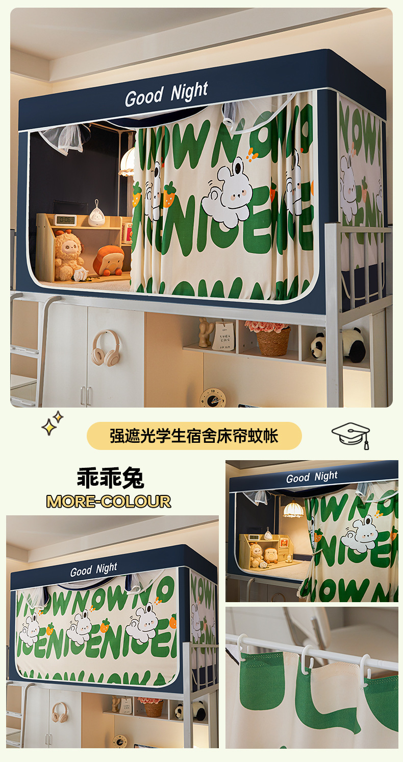 新款遮光防尘一体式学生宿舍蚊帐上下铺隐私床帘加密加厚蚊帐批发