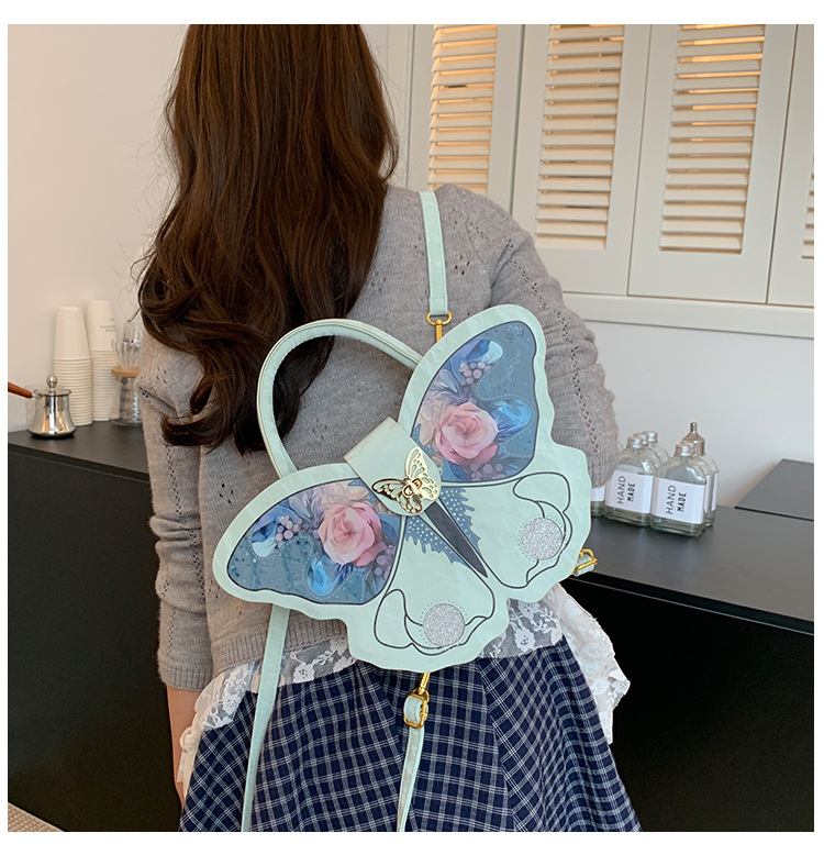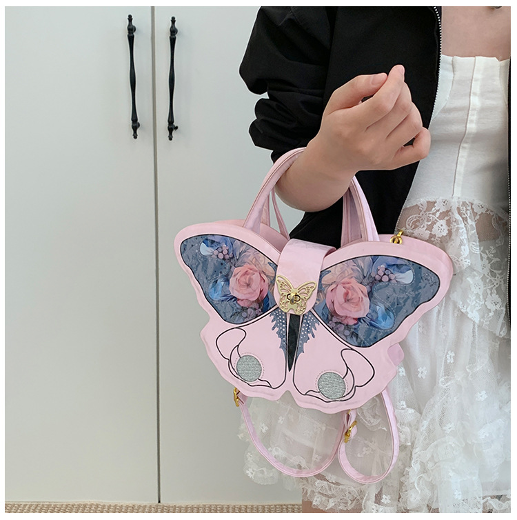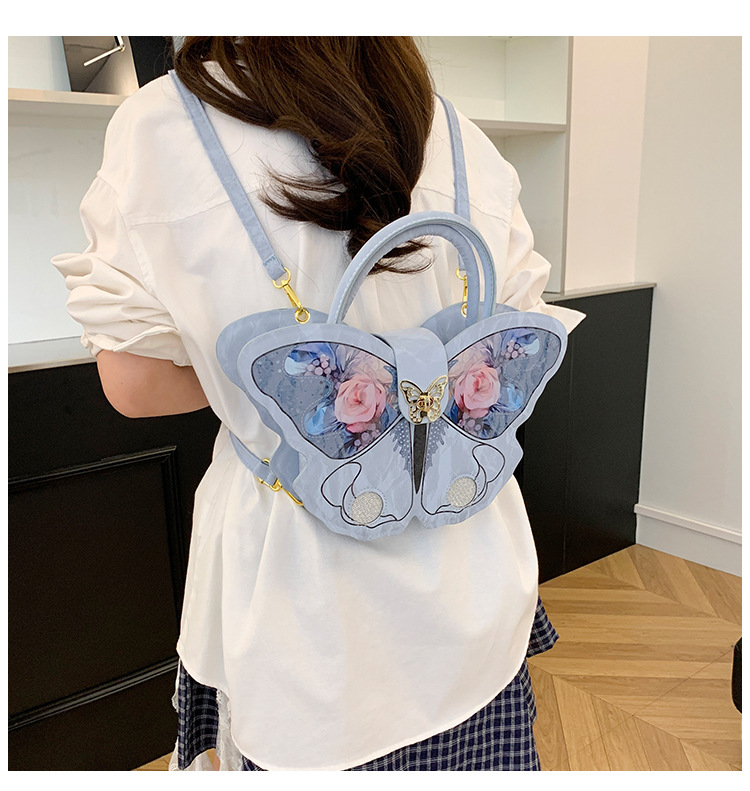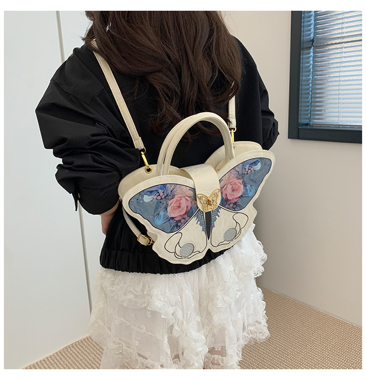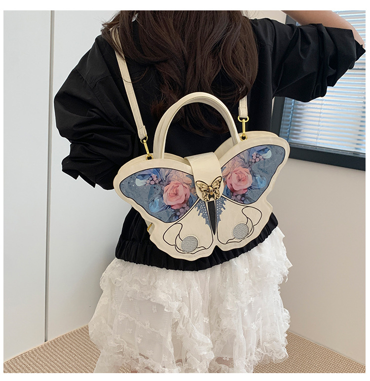 时尚小众设计蝴蝶双肩包女2025新款百搭手提高级感两用斜跨包