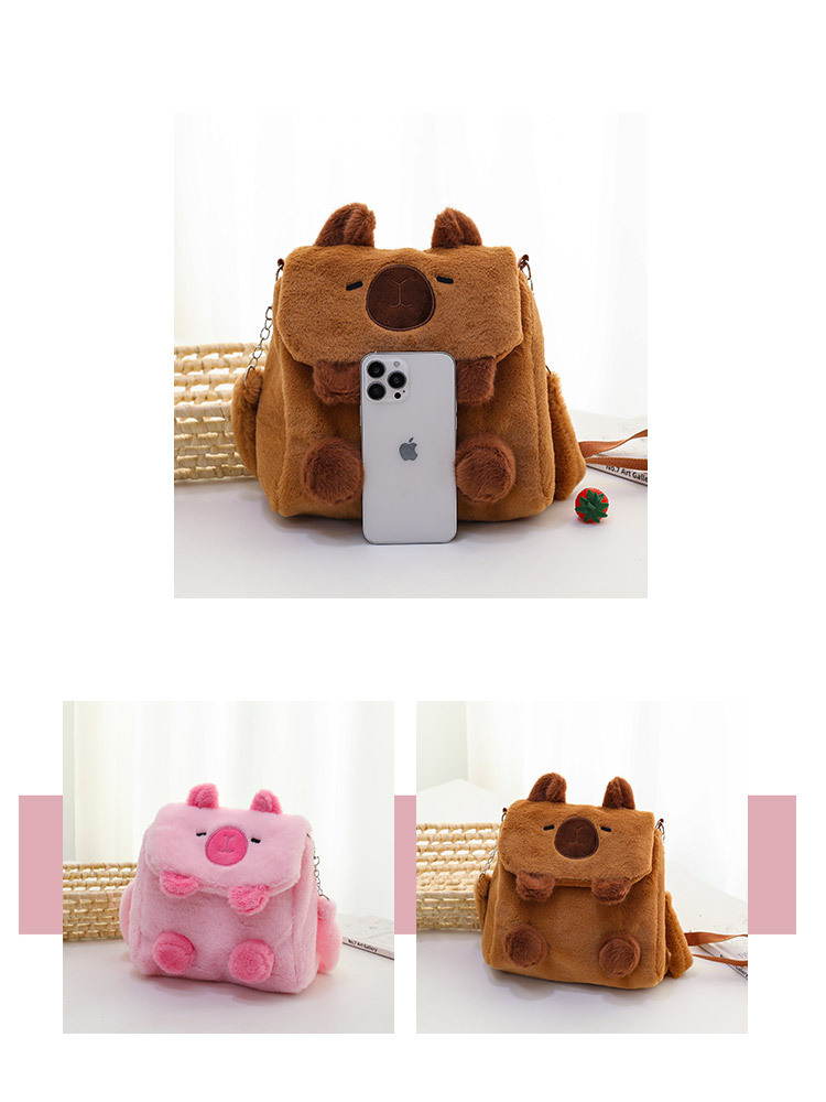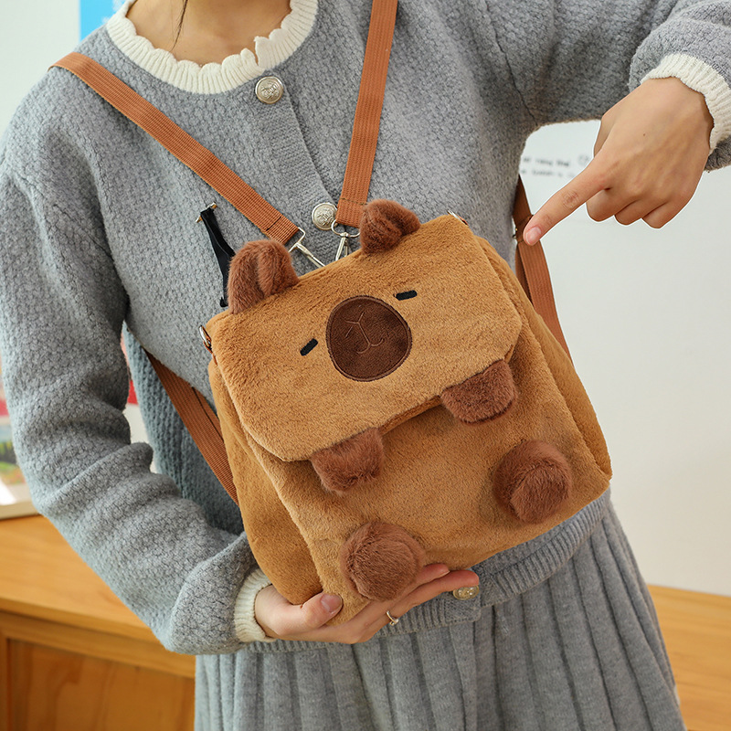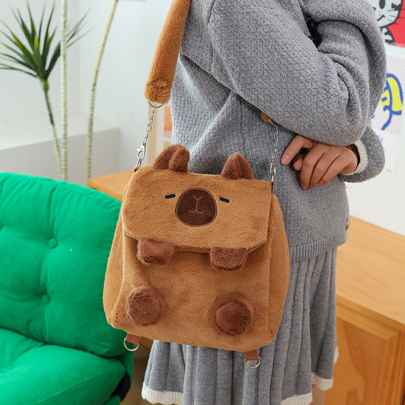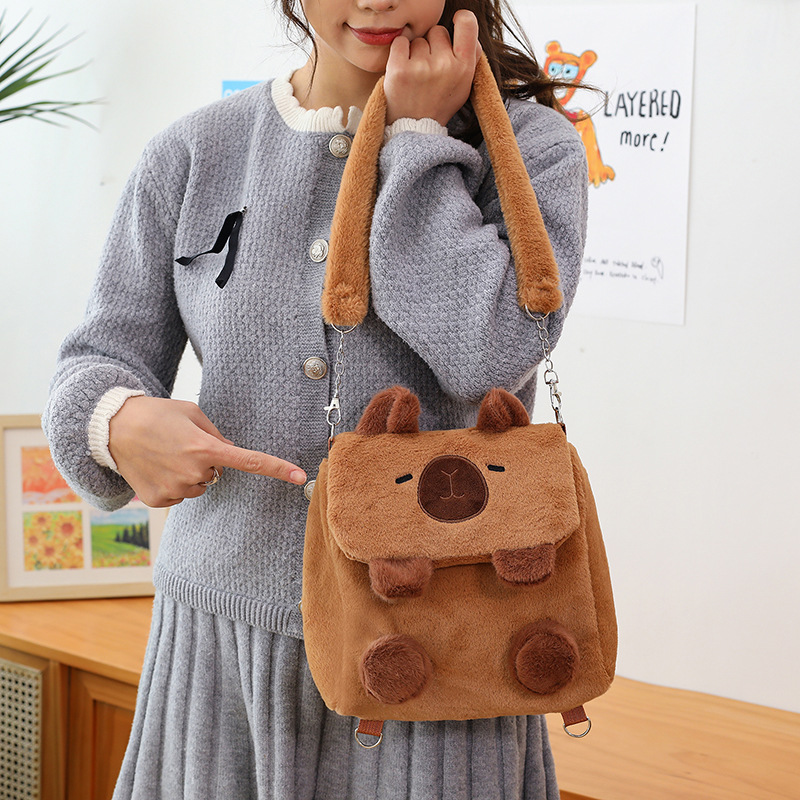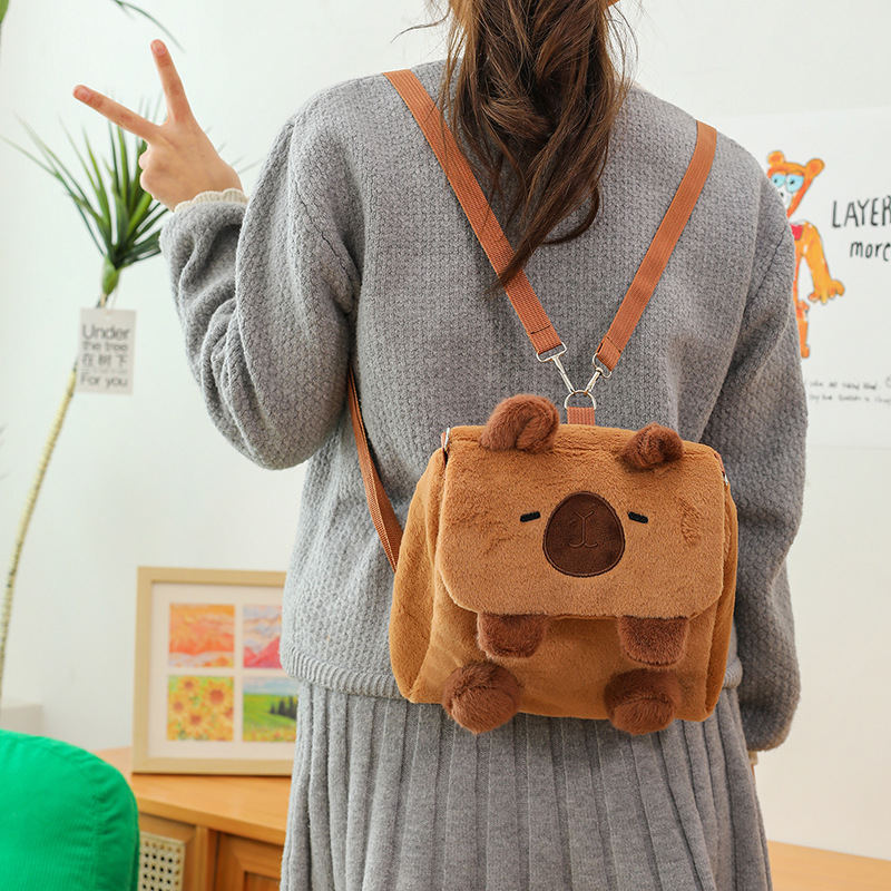 Tas Flip Capipara Model Baru Tas Beludru Lucu Tas Penyimpanan Kartun Capybara Tas Dua Tujuan Ganda Selempang Bahu Anak Perempuan