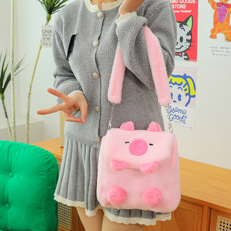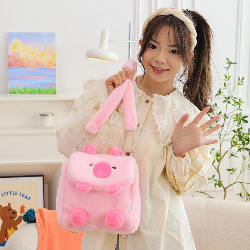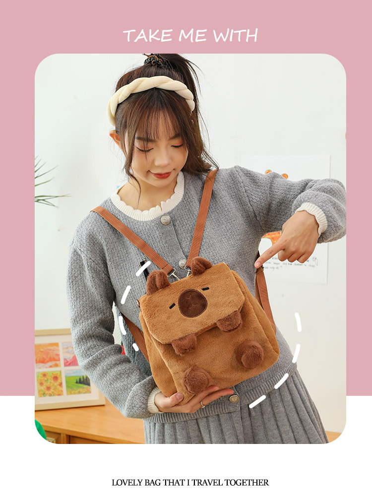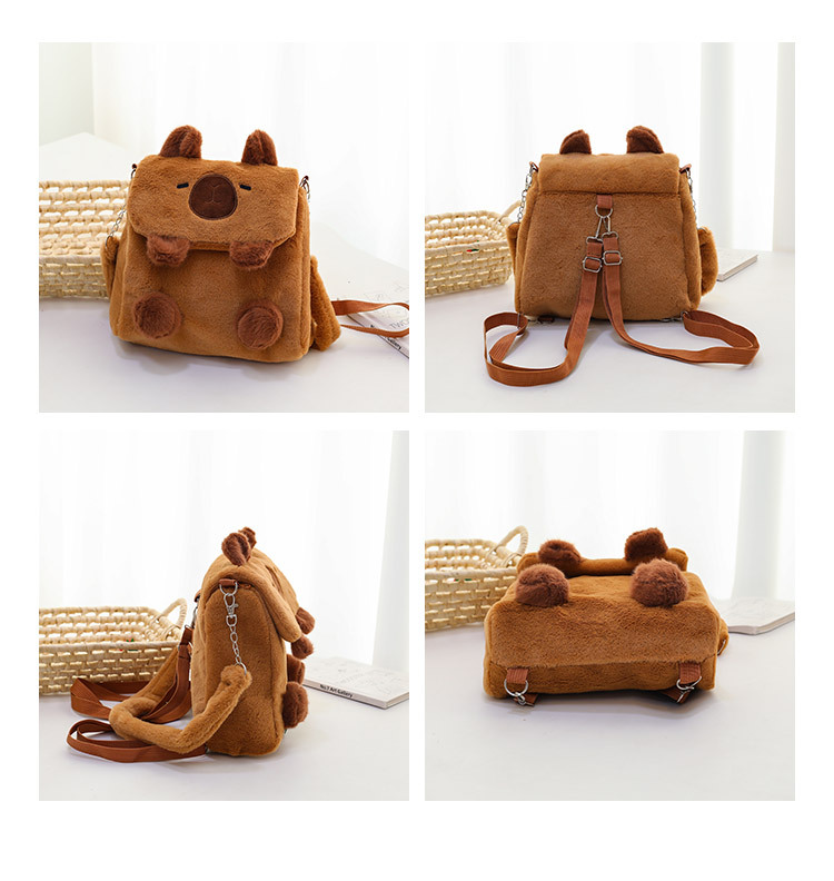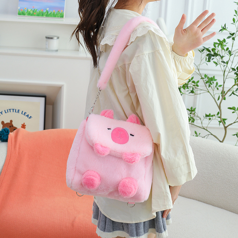 Tas Flip Capipara Model Baru Tas Beludru Lucu Tas Penyimpanan Kartun Capybara Tas Dua Tujuan Ganda Selempang Bahu Anak Perempuan