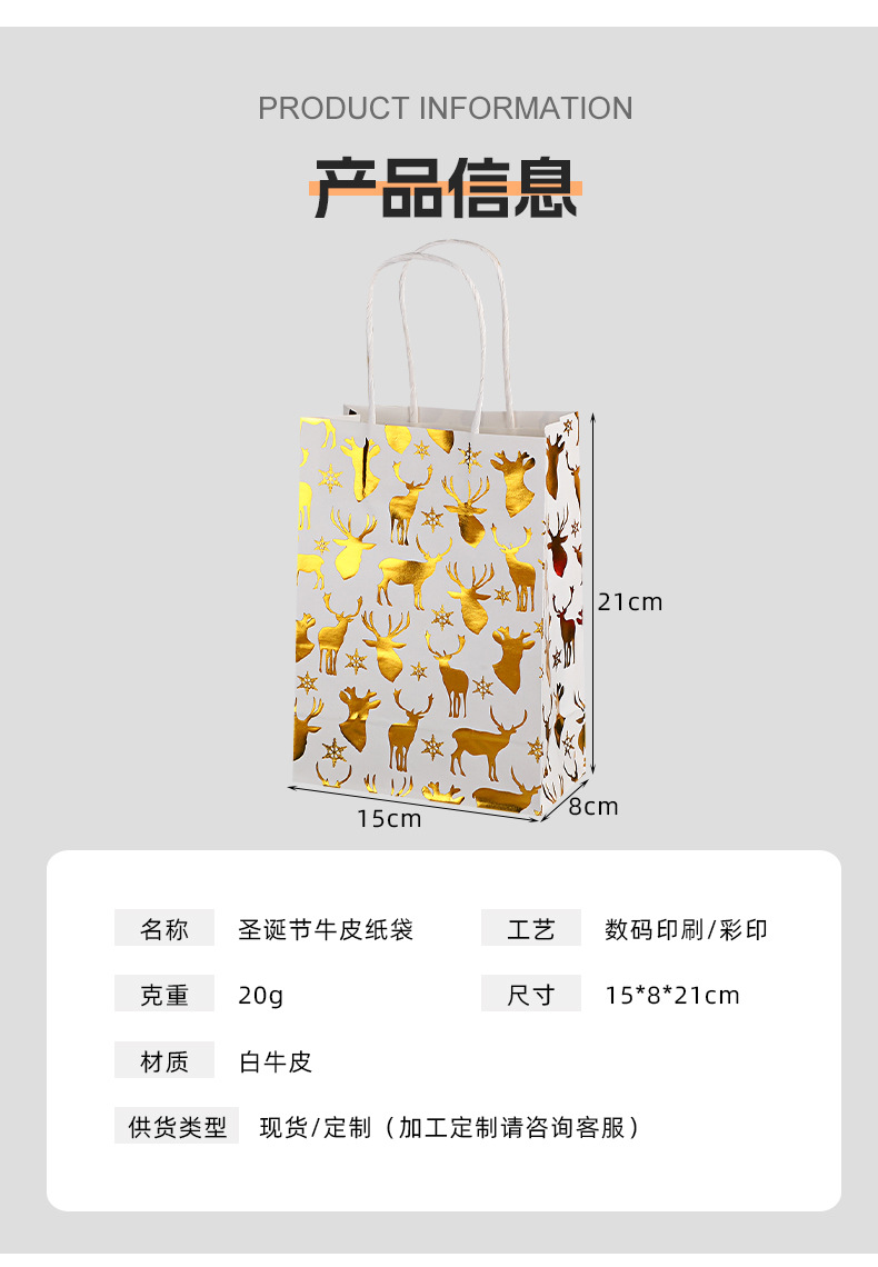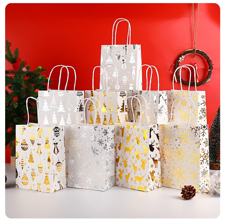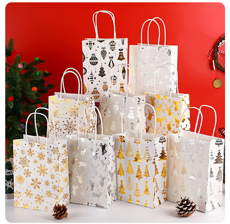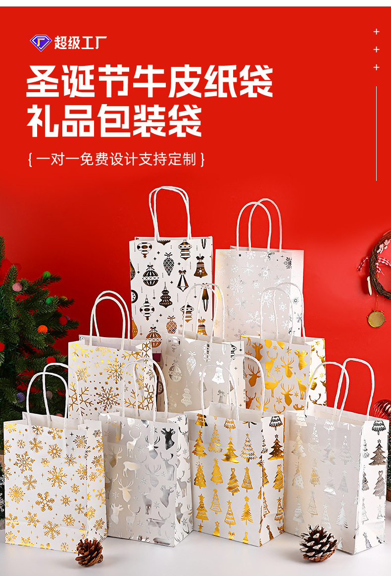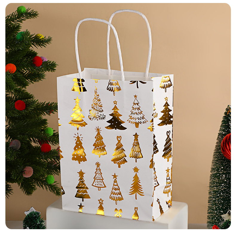 跨境圣诞节礼品袋卡通圣诞树伴手礼袋节日派对零食包装袋牛皮纸袋