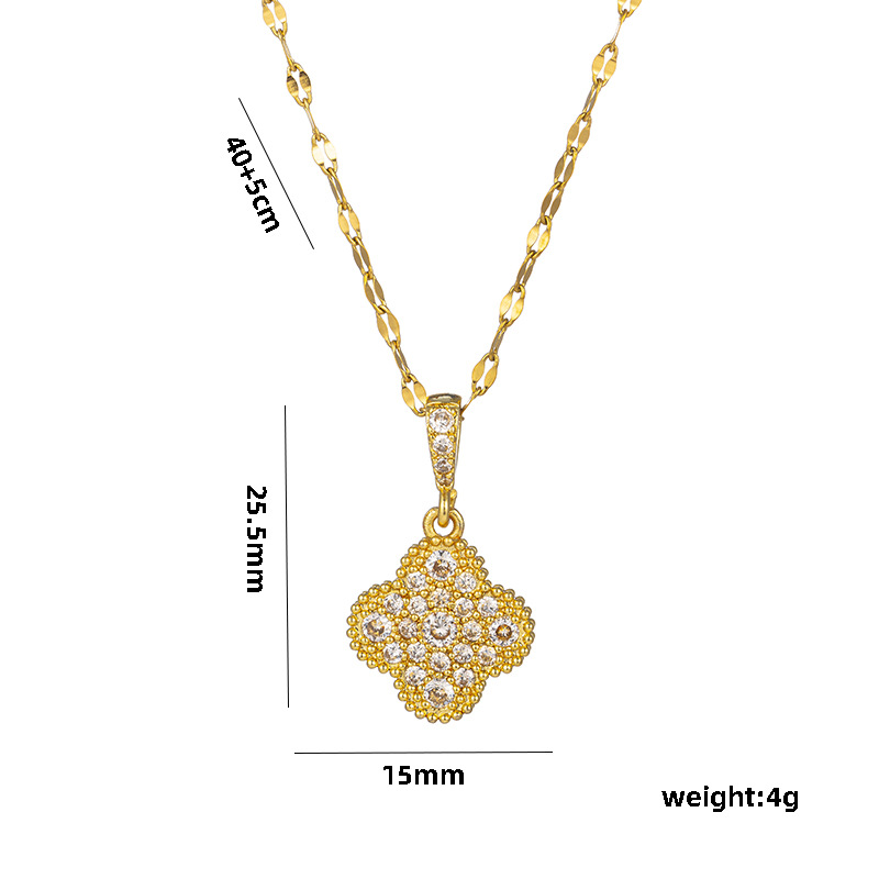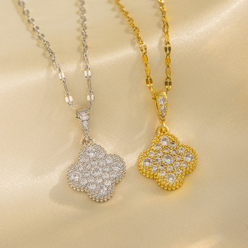 Kalung berlian mikro wanita, rantai klavikula selebriti Internet manik-manik keberuntungan perempuan bunga semanggi berlian penuh mewah