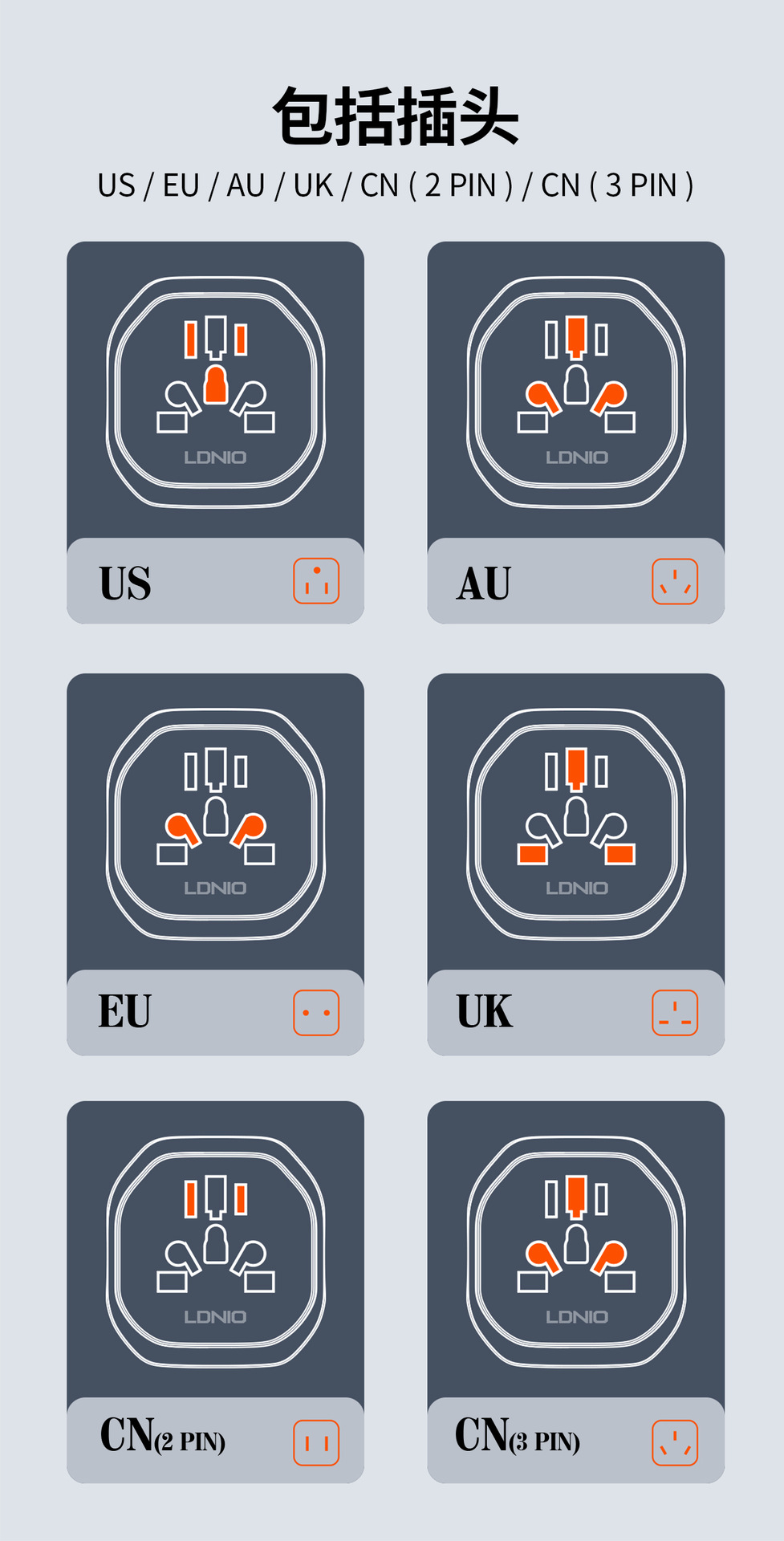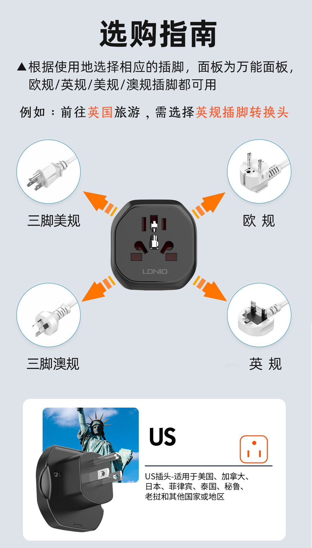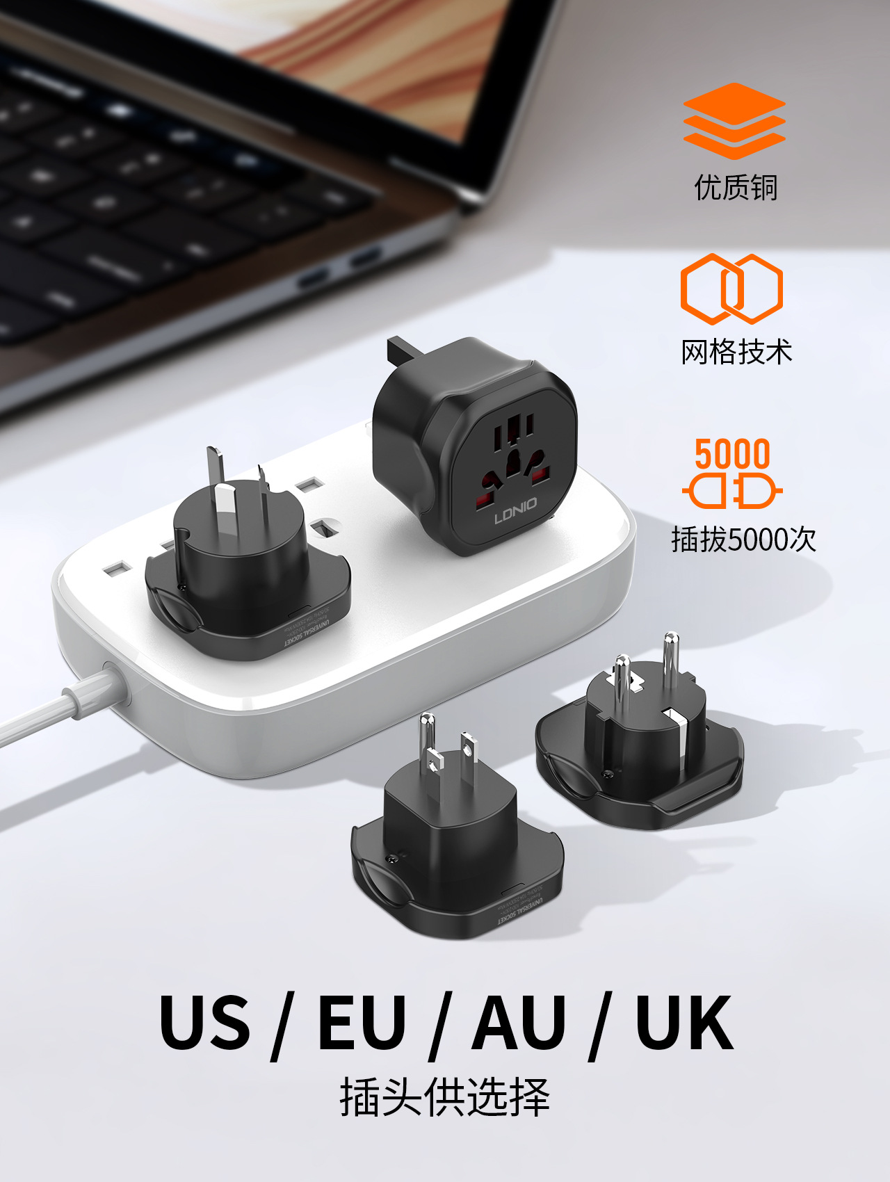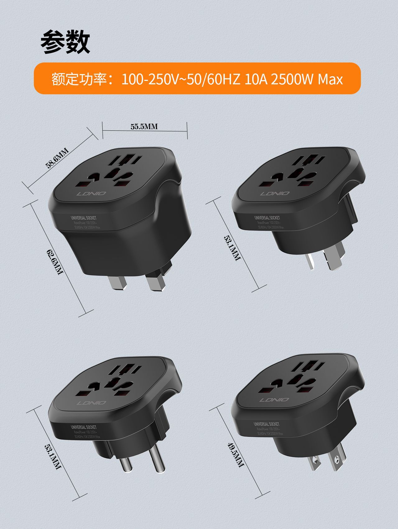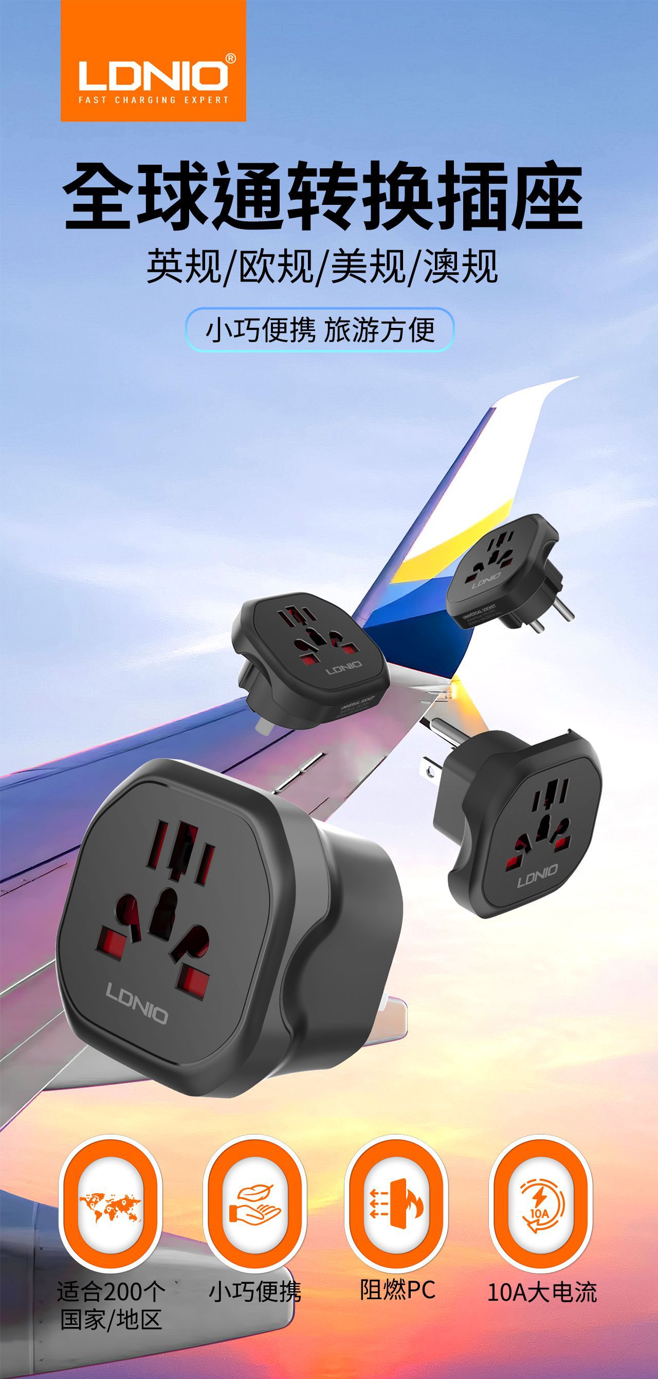 LDNIO steker konversi perjalanan global standar Inggris konverter daya standar Eropa Korea Selatan steker konversi standar sedang pabrik
