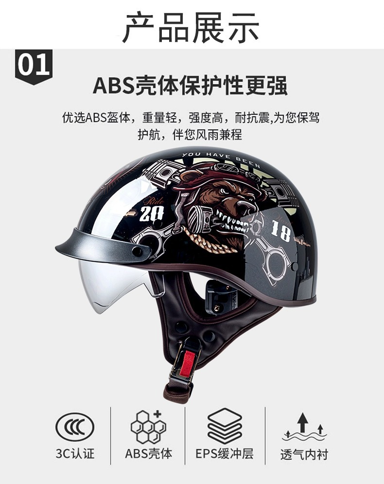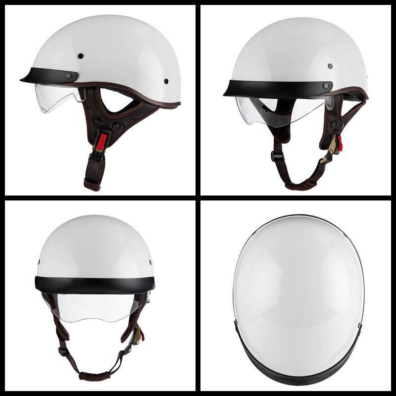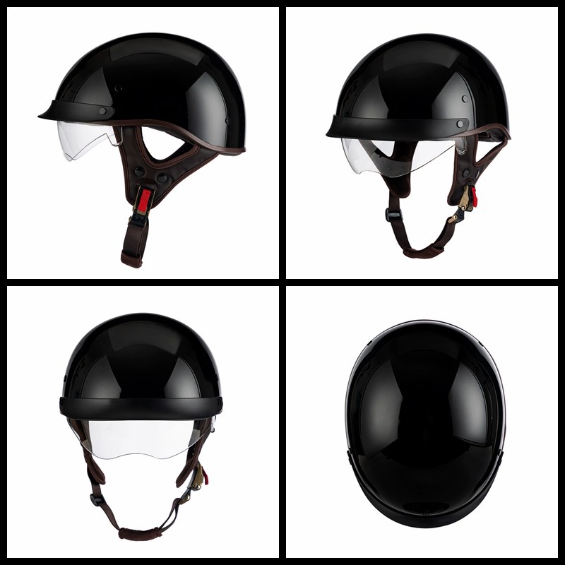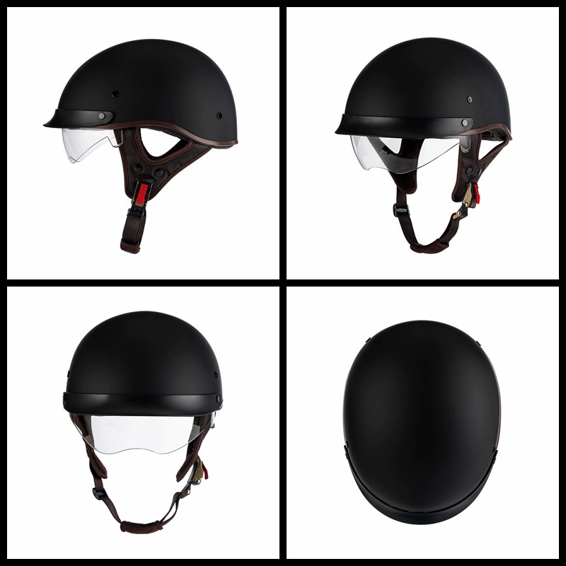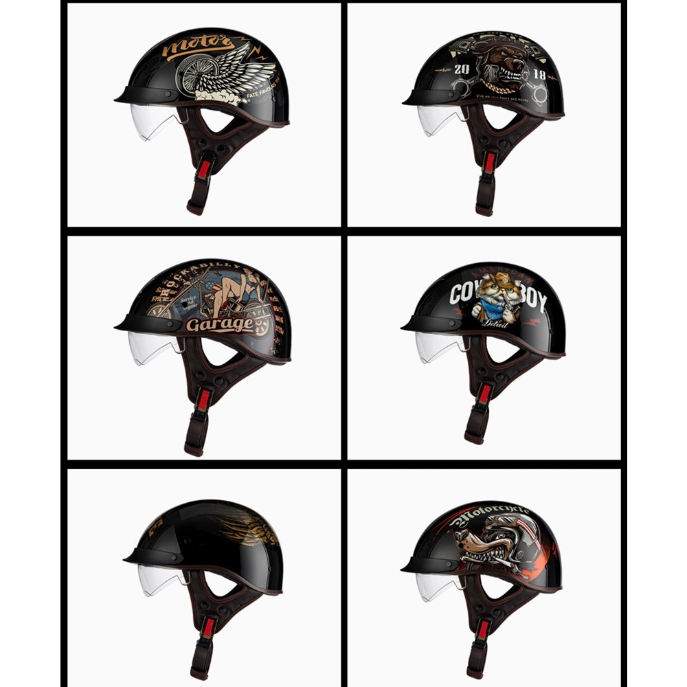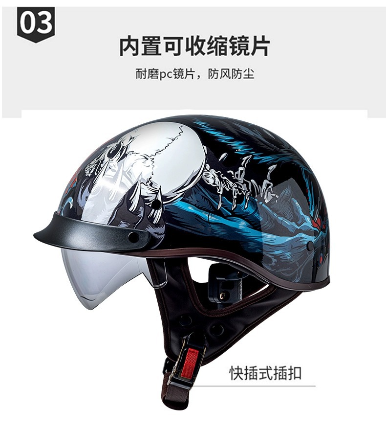 Helm listrik Pria Wanita pelindung matahari, helm pelindung matahari baterai vintage sepeda motor setengah musim Universal musim panas