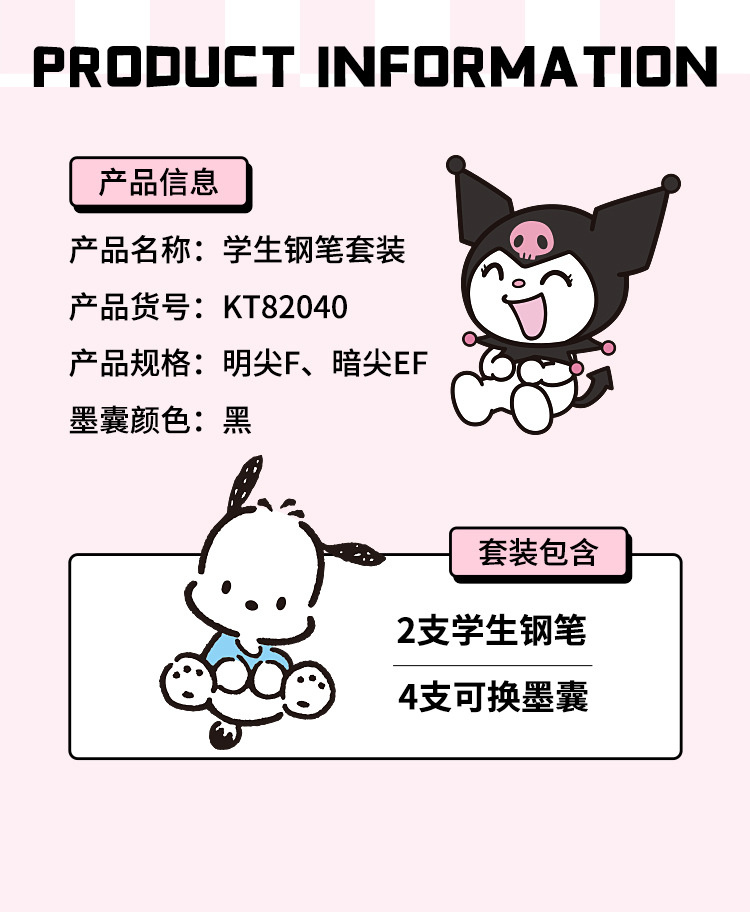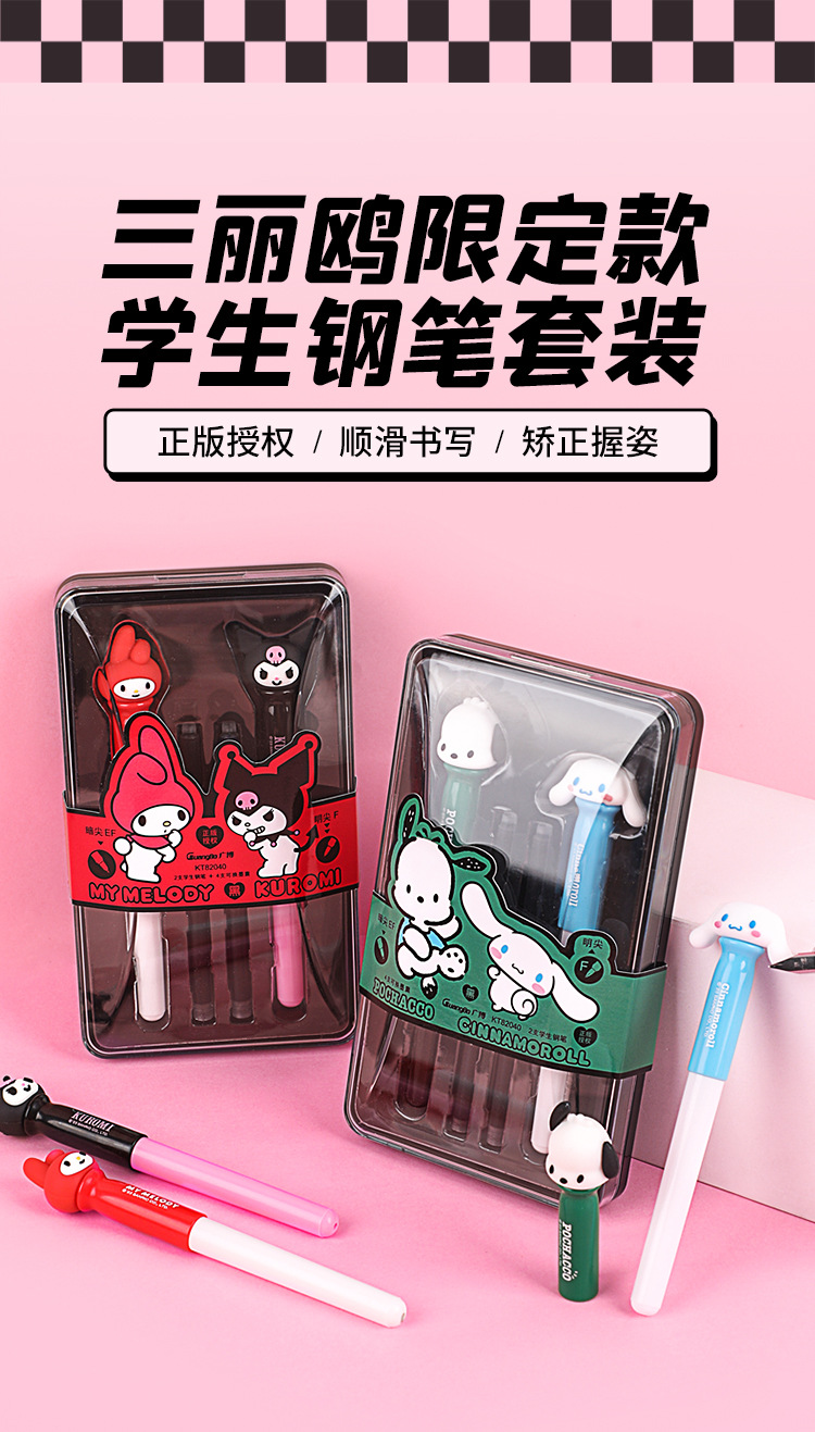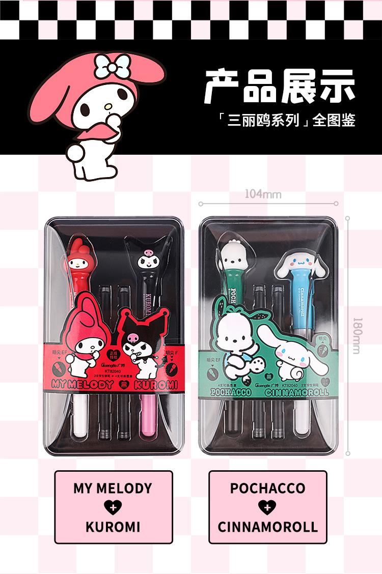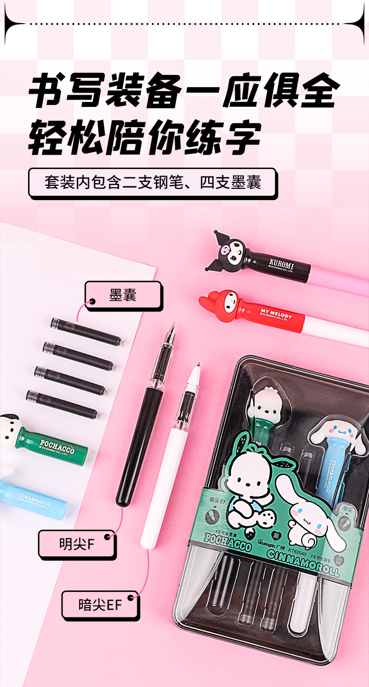 广博82040正版三丽鸥可换墨囊立体卡通配件学生练字拔盖F尖EF钢笔