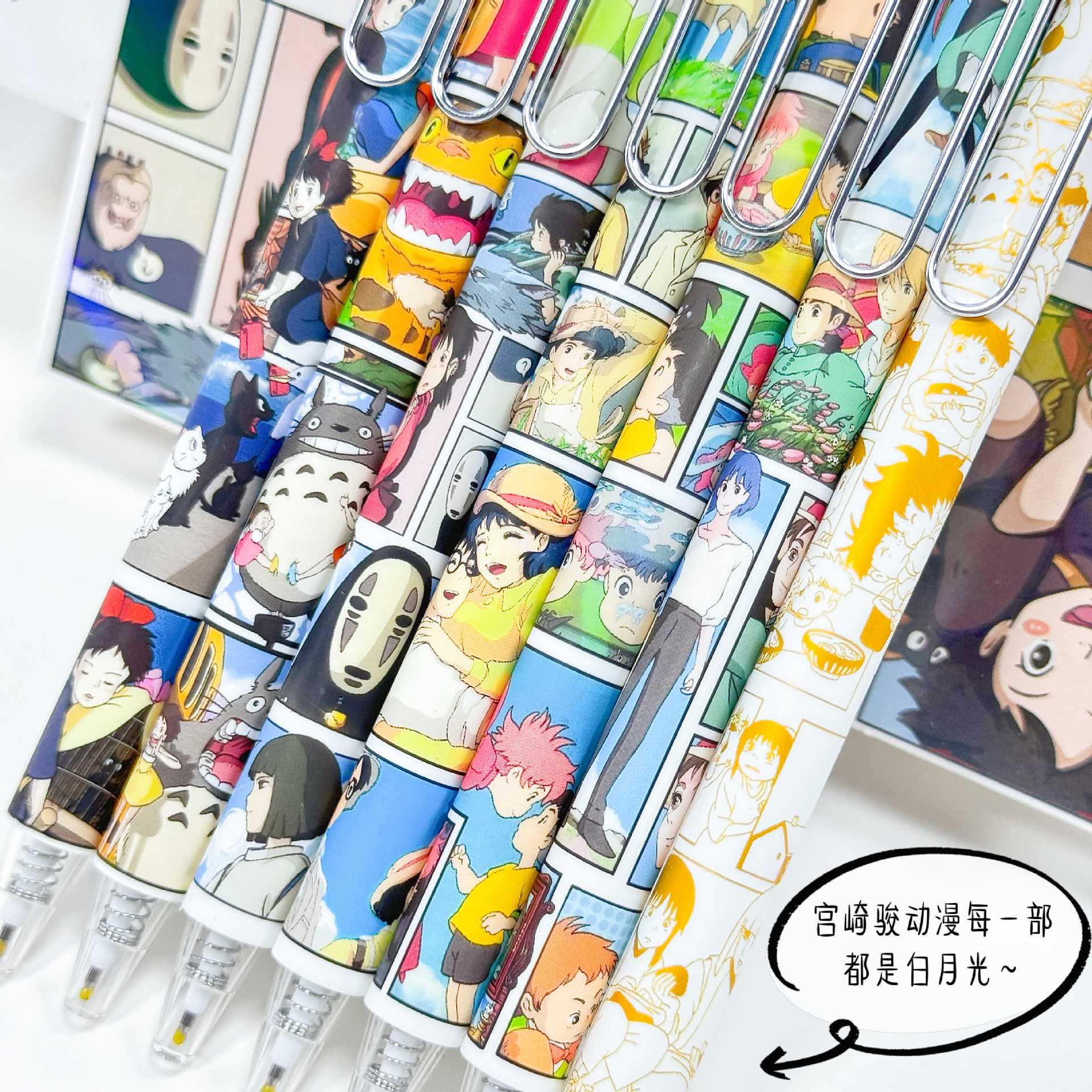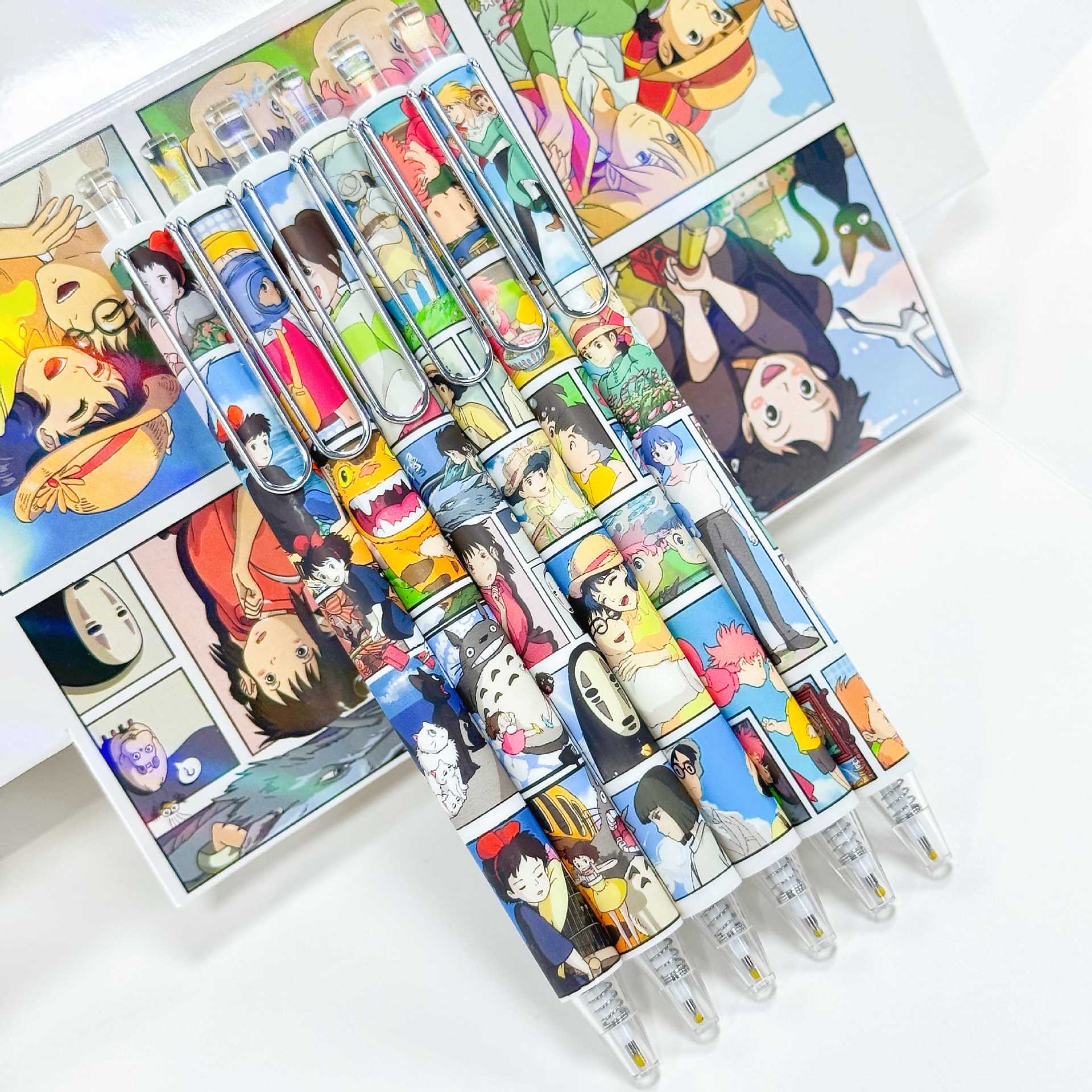 YSWH Hayao Miyazaki Kotak Buta Pena Netral Nilai Wajah Tinggi Pena Kartun Gaya Anime Pena Air Pusat gravitasi Rendah Kuas Tulisan Bagus Pena Hitam