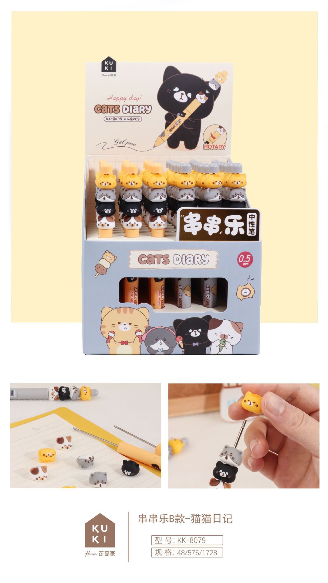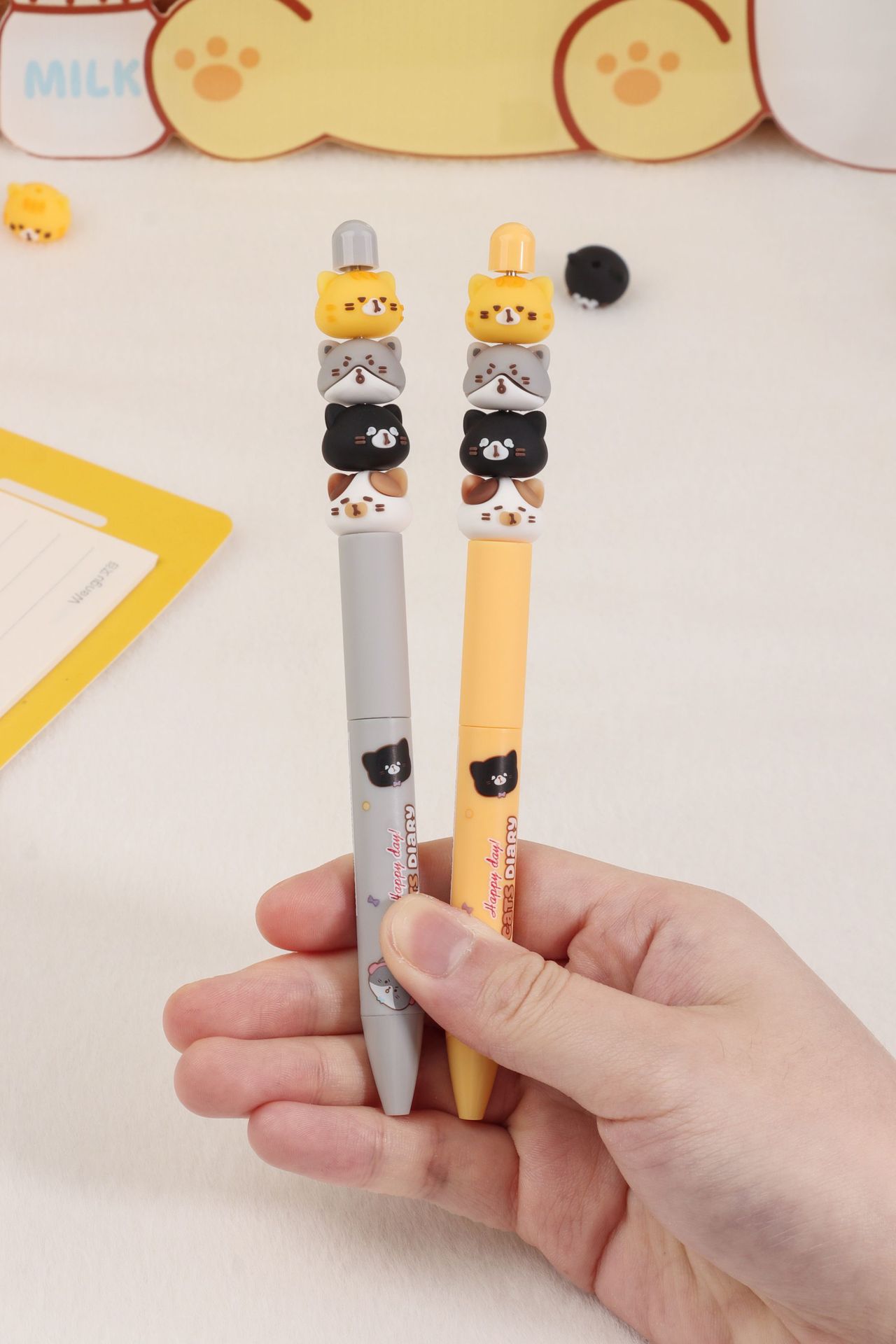 新款创意串串乐中性笔可爱猫咪造型DIY串串签字笔高颜值水性笔