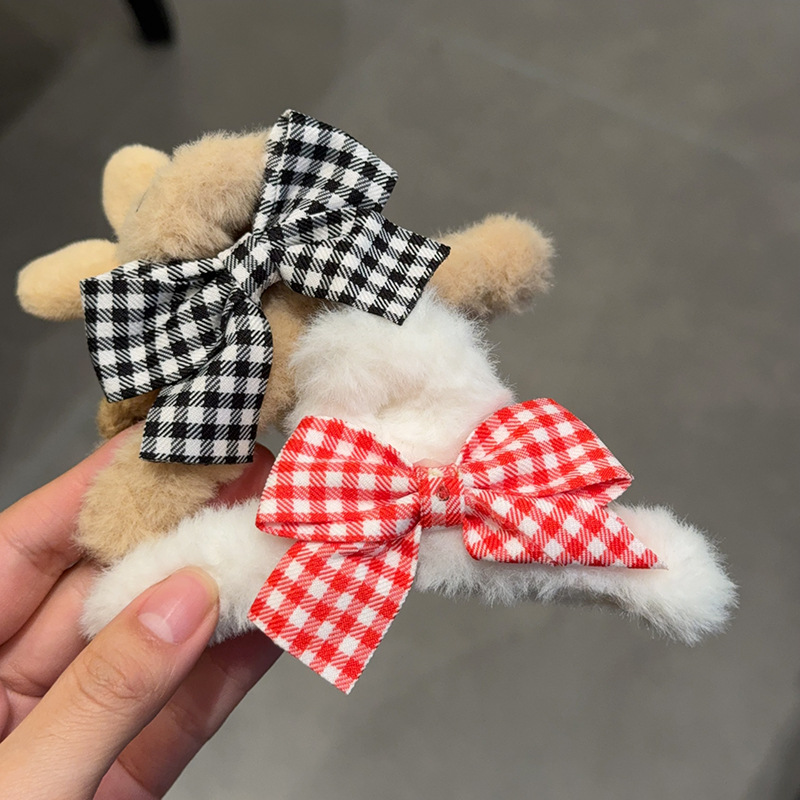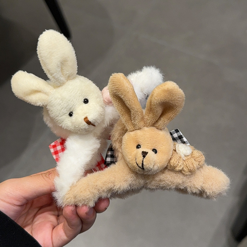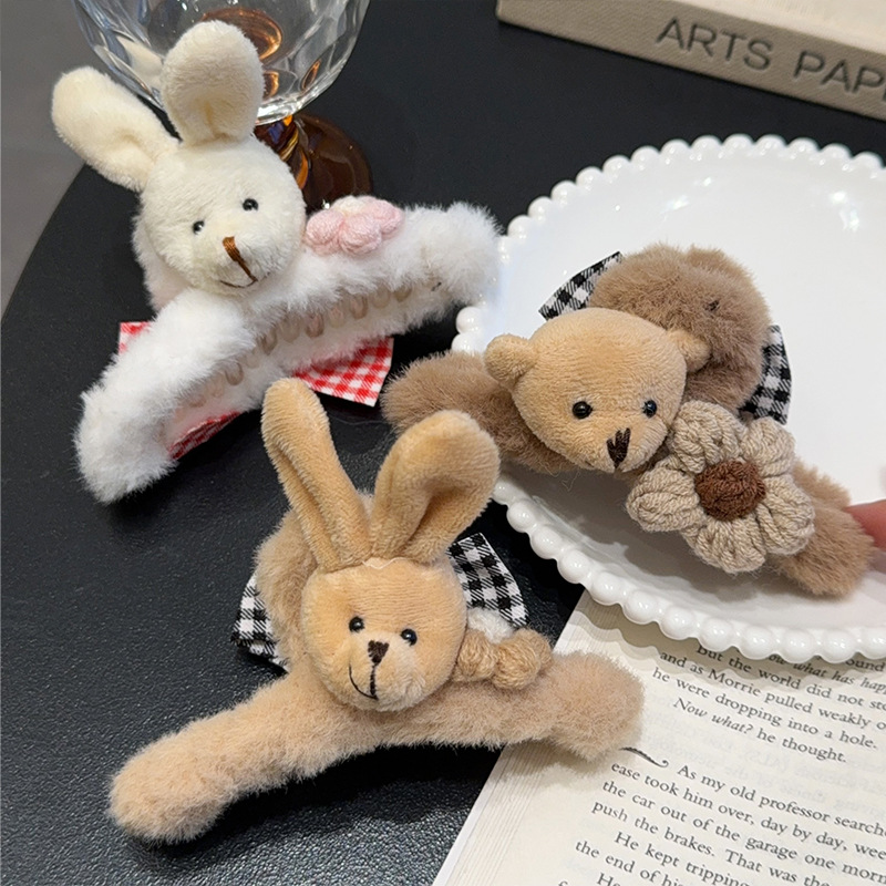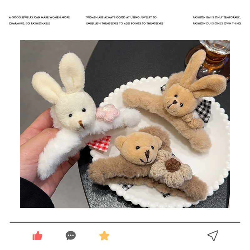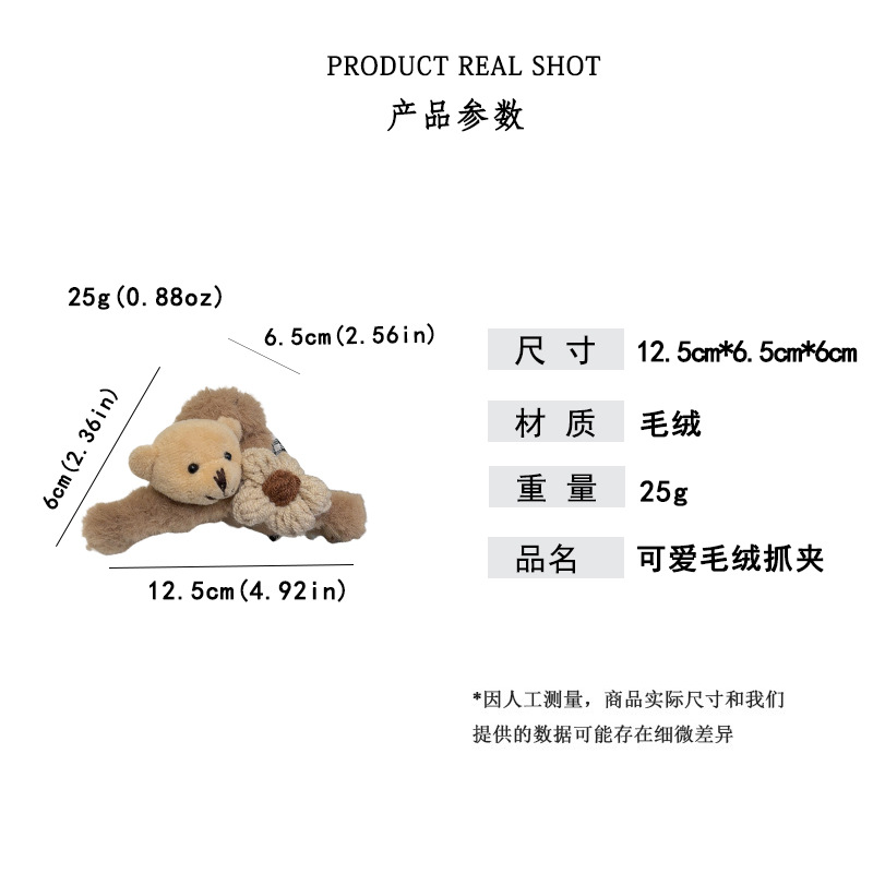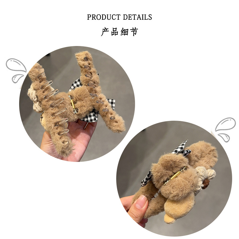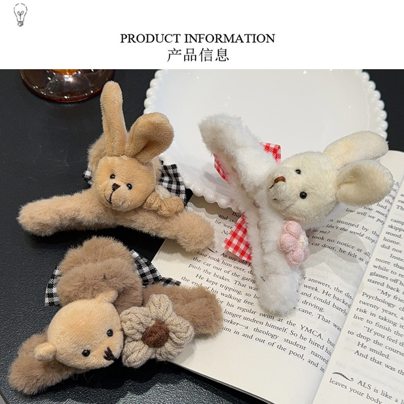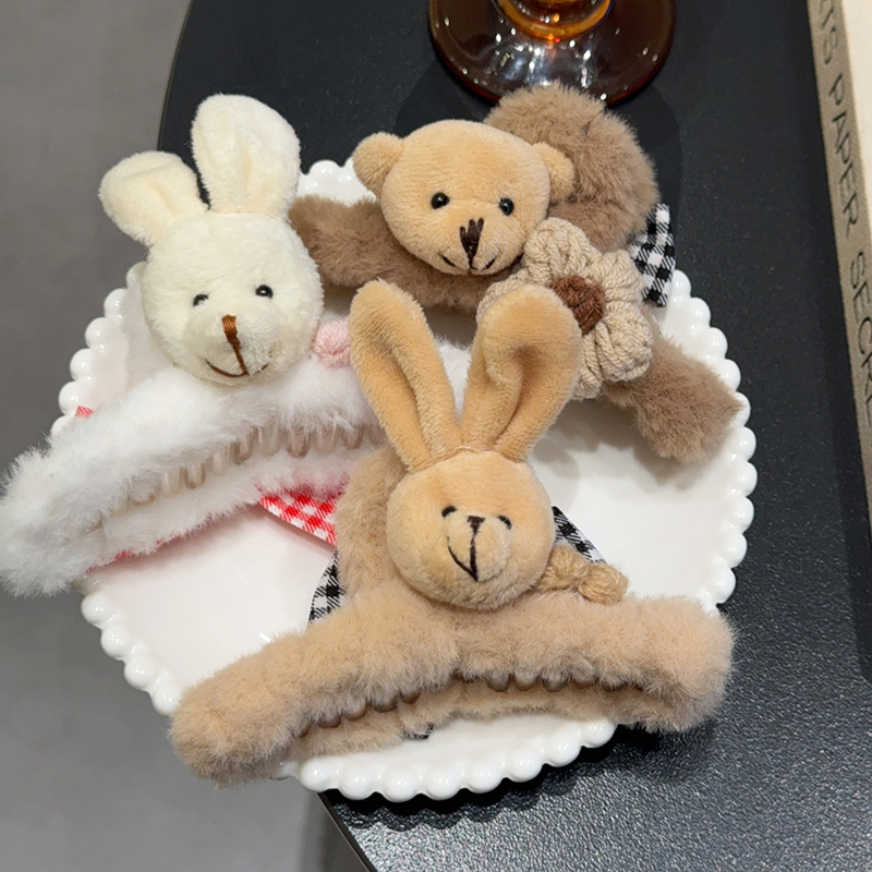 韩国ins可爱熊毛绒抓夹女可爱夹子头饰发夹秋冬气质后脑勺鲨鱼夹