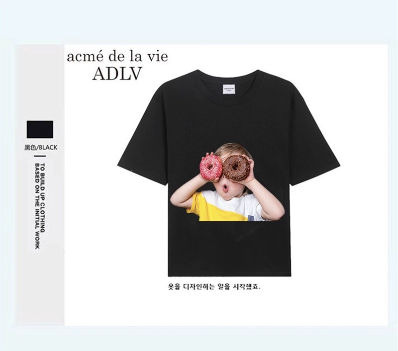 [Versi Korea] T-shirt Donat Lengan Pendek ADLV Korea Model Baru 2025 Atasan Pasangan Longgar Katun Murni Wanita