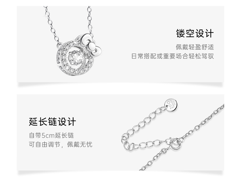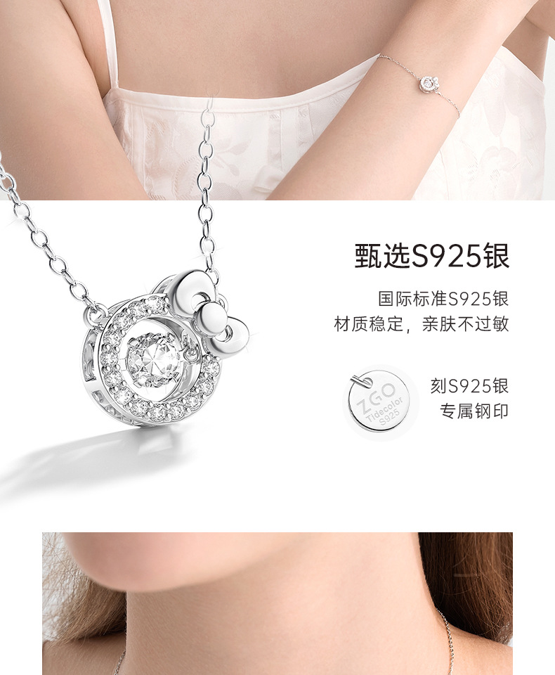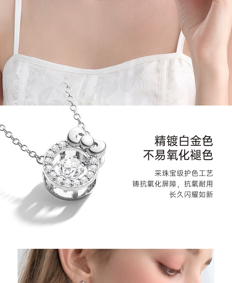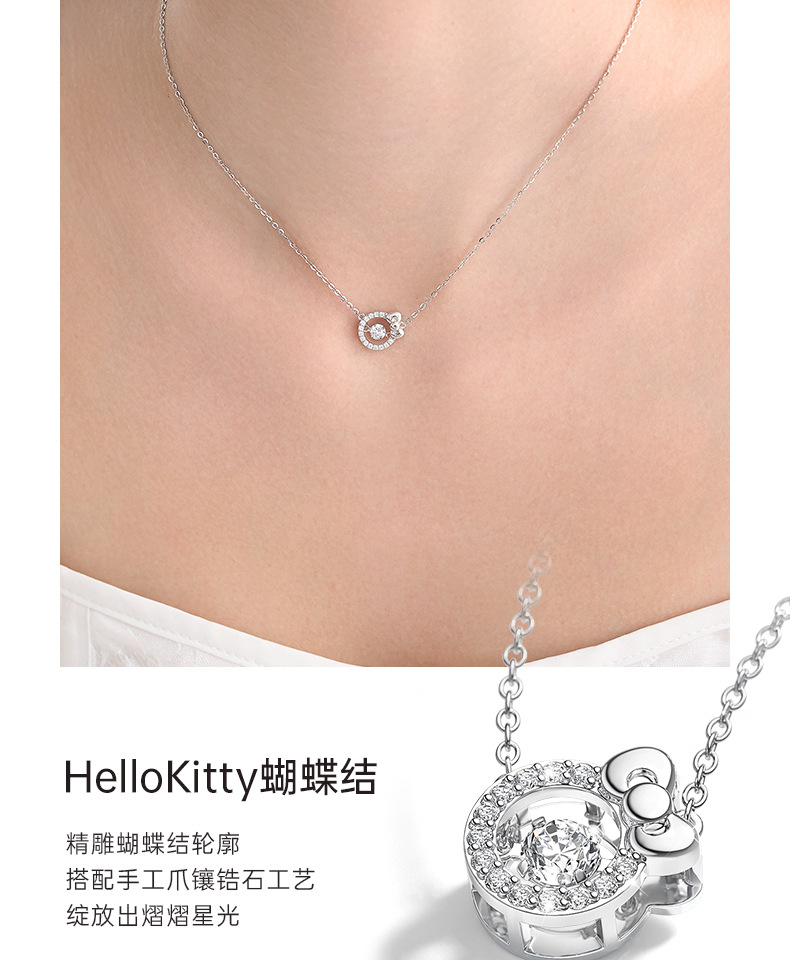 ZGO Chia Hong Kong Kalung HelloKitty Kalung Klavikula Perak Murni Wanita 9999 Hadiah Ulang Tahun Model Lucu