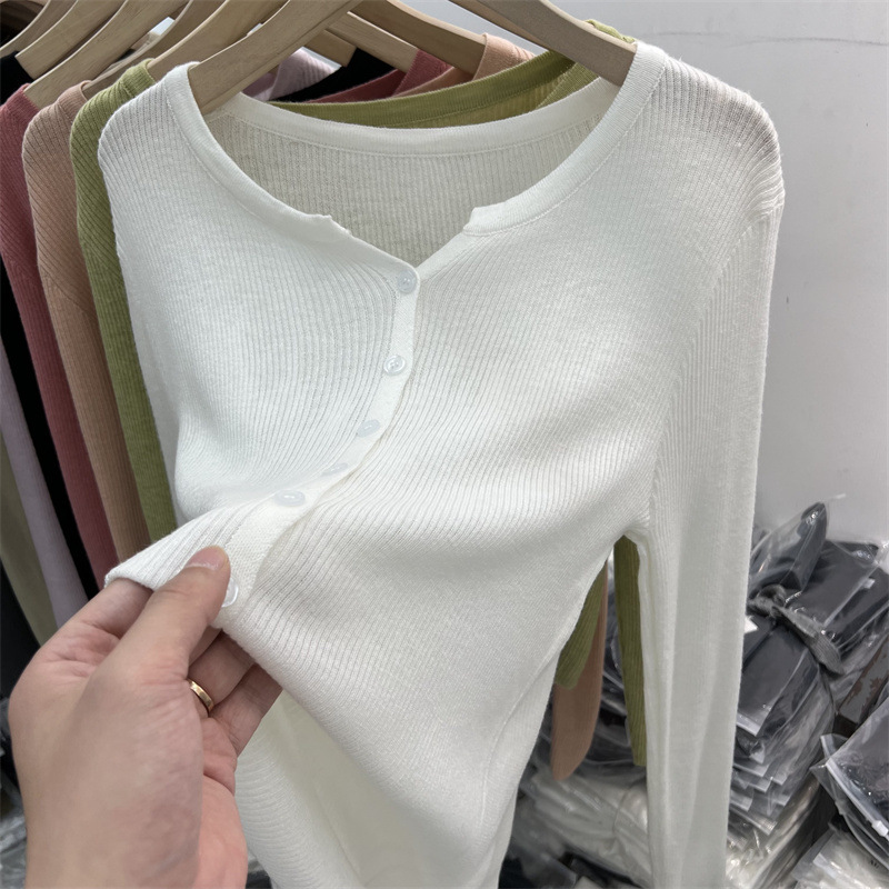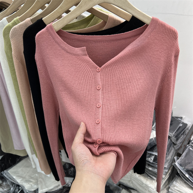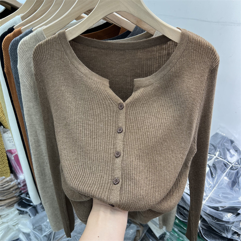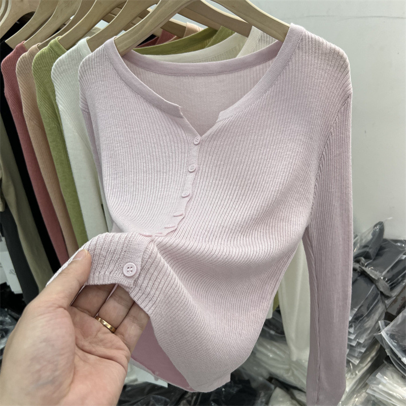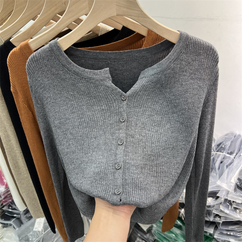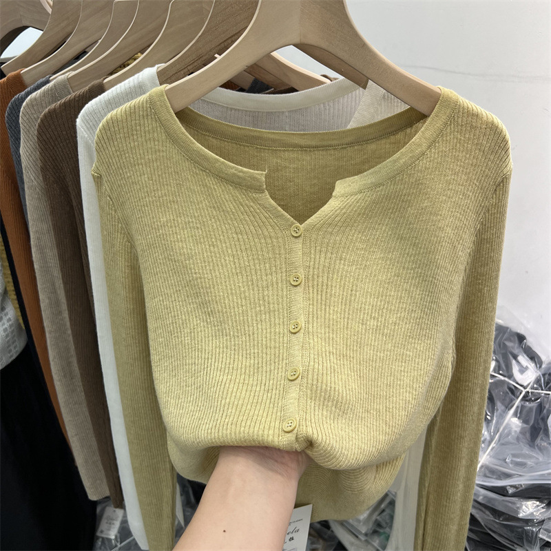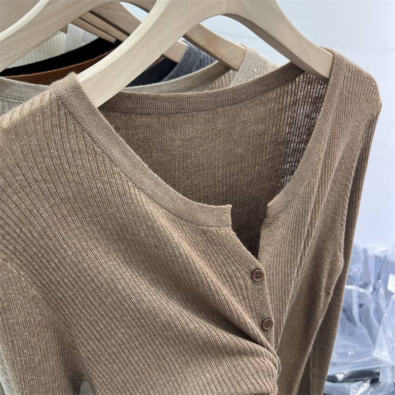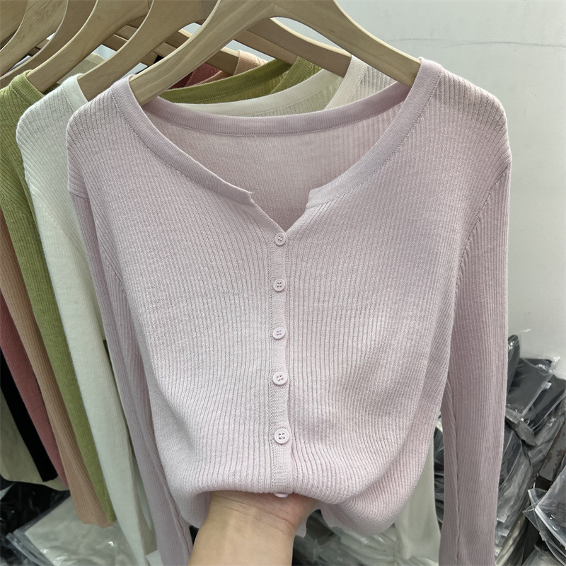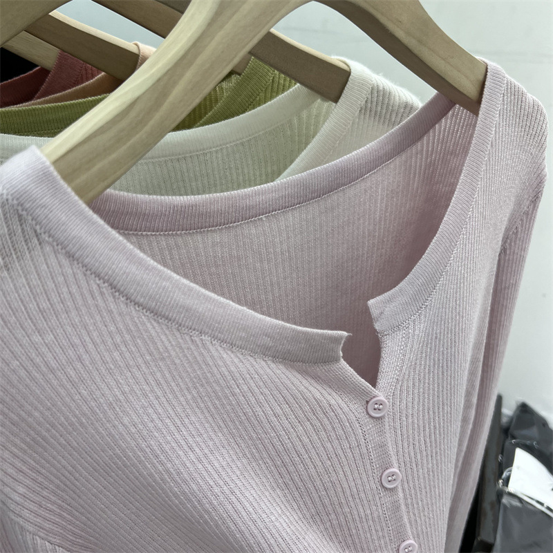6 wol sweater wanita lengan panjang, atasan kardigan warna polos, pakaian pelindung matahari luar ruangan, musim semi dan musim panas 2024