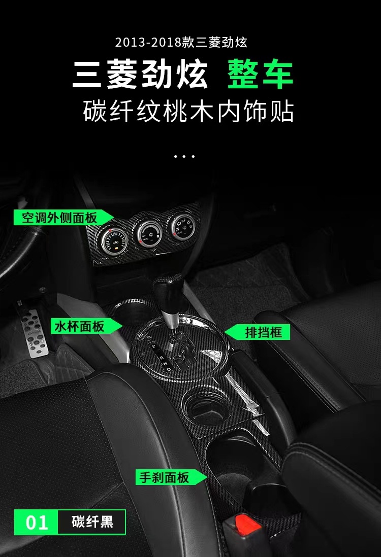 Jinxuan panel rem tangan, serat karbon pola interior kontrol pusat Jinxuan ASX cangkir air outlet udara stiker modifikasi