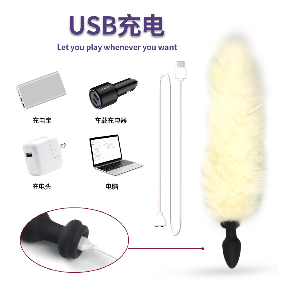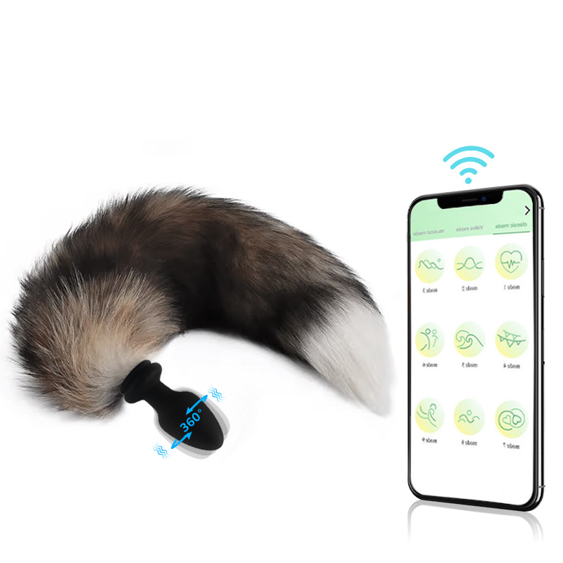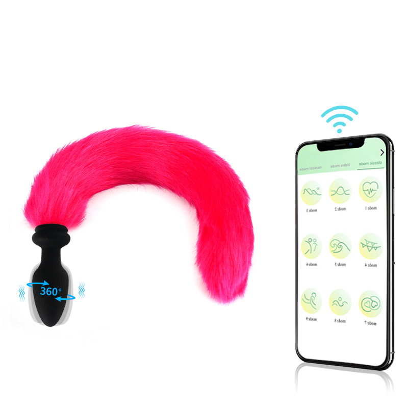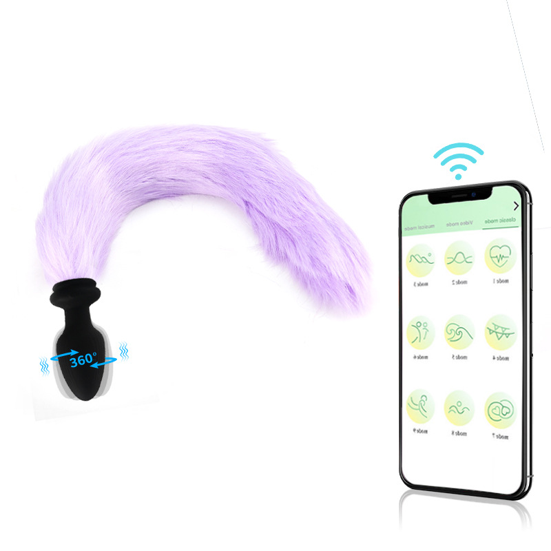 Xingwan Foreign Trade Fur Ball Tail Anal Plug APP Silicone Glowing Vibrating Tail Anal Plug Swinging Colorful Sex Toy