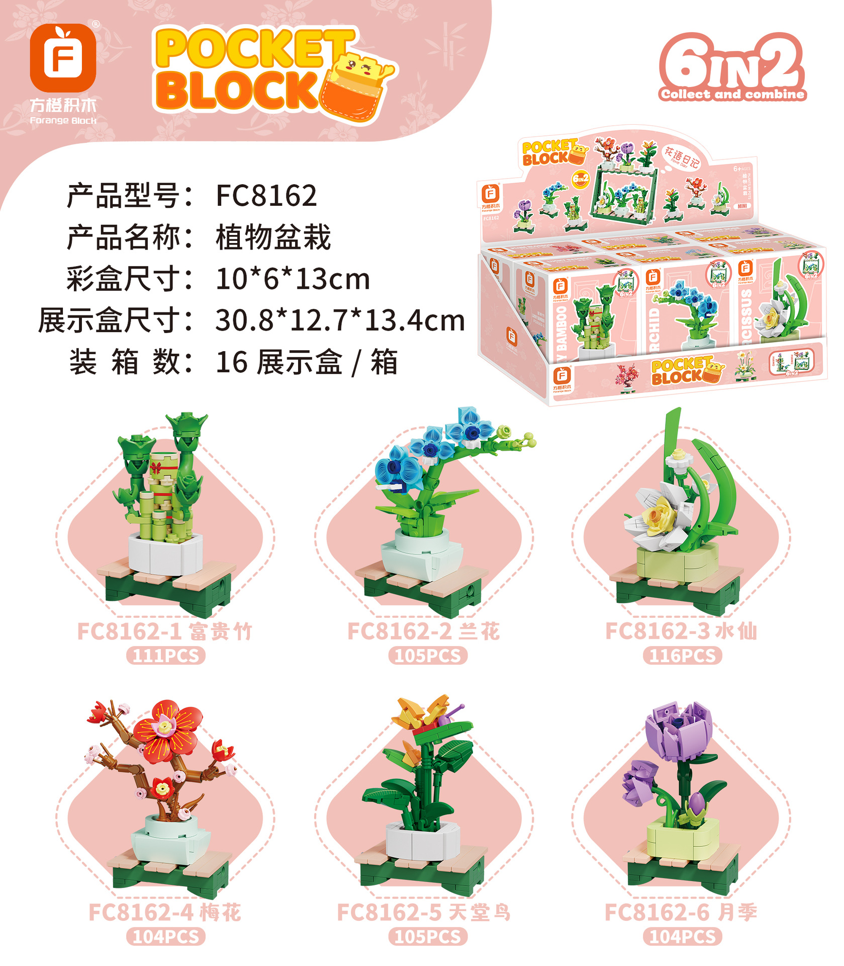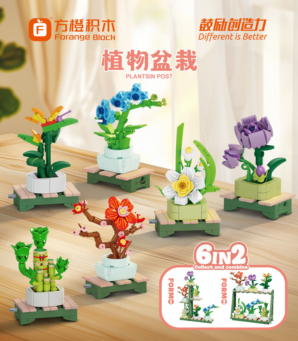 Pernis Oranye FC8162 Koleksi Mini Tanaman Pot 6 Model 12 Bentuk Anak-anak Intelektual Rakitan Blok Bangunan Hadiah