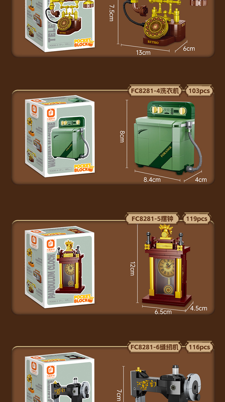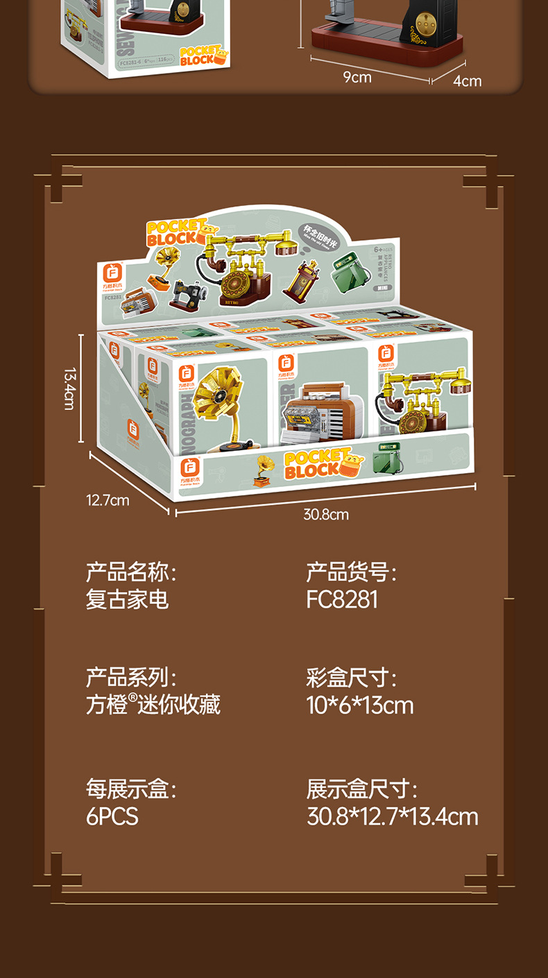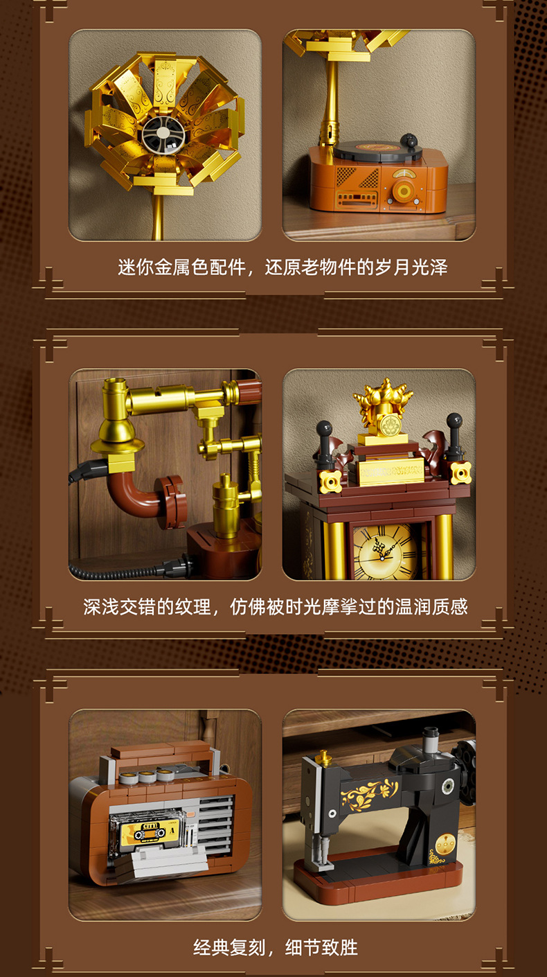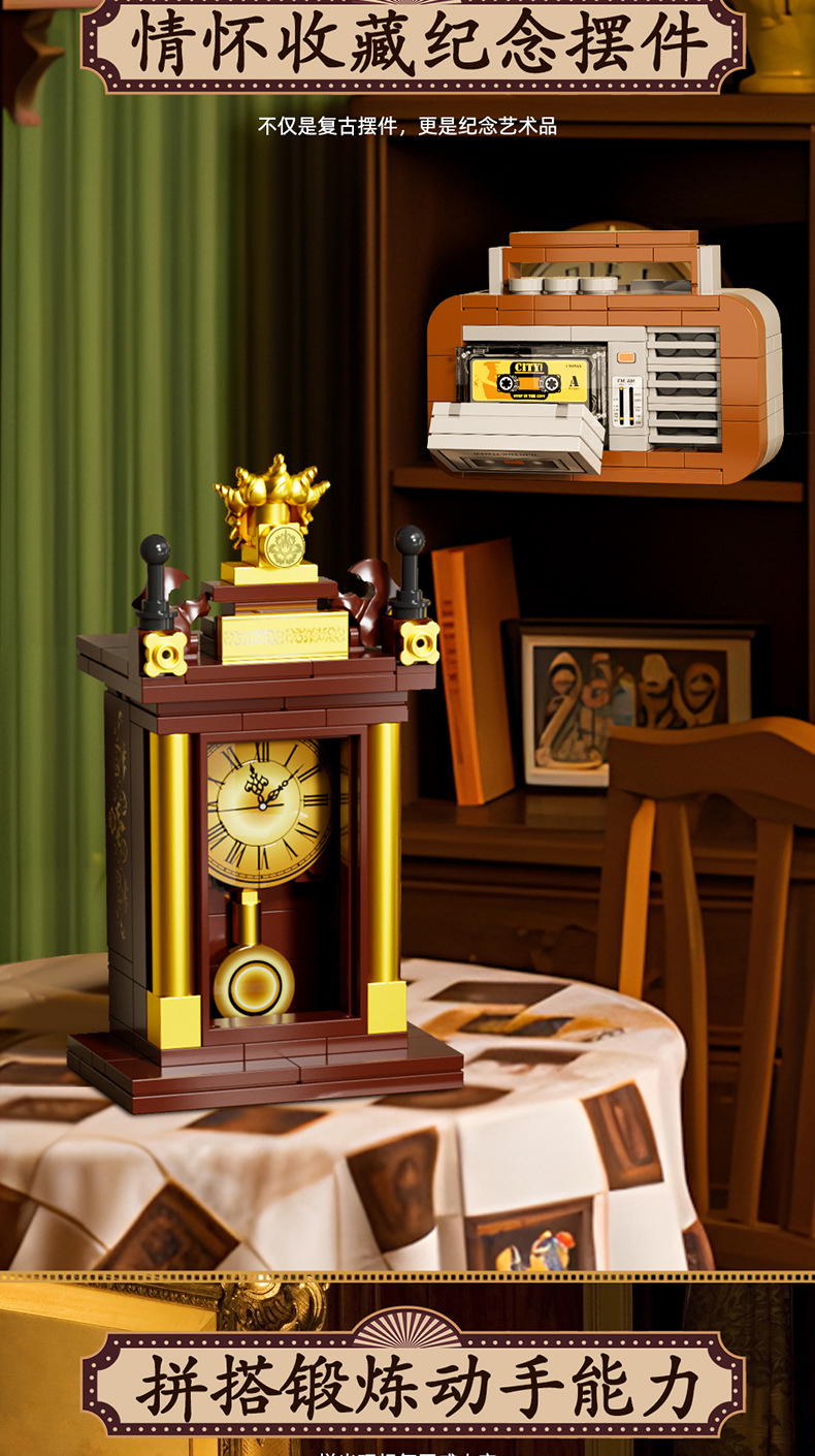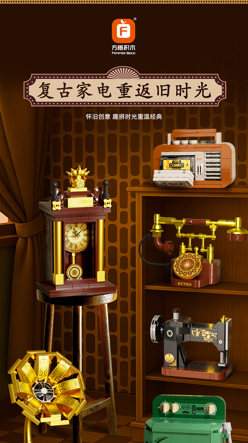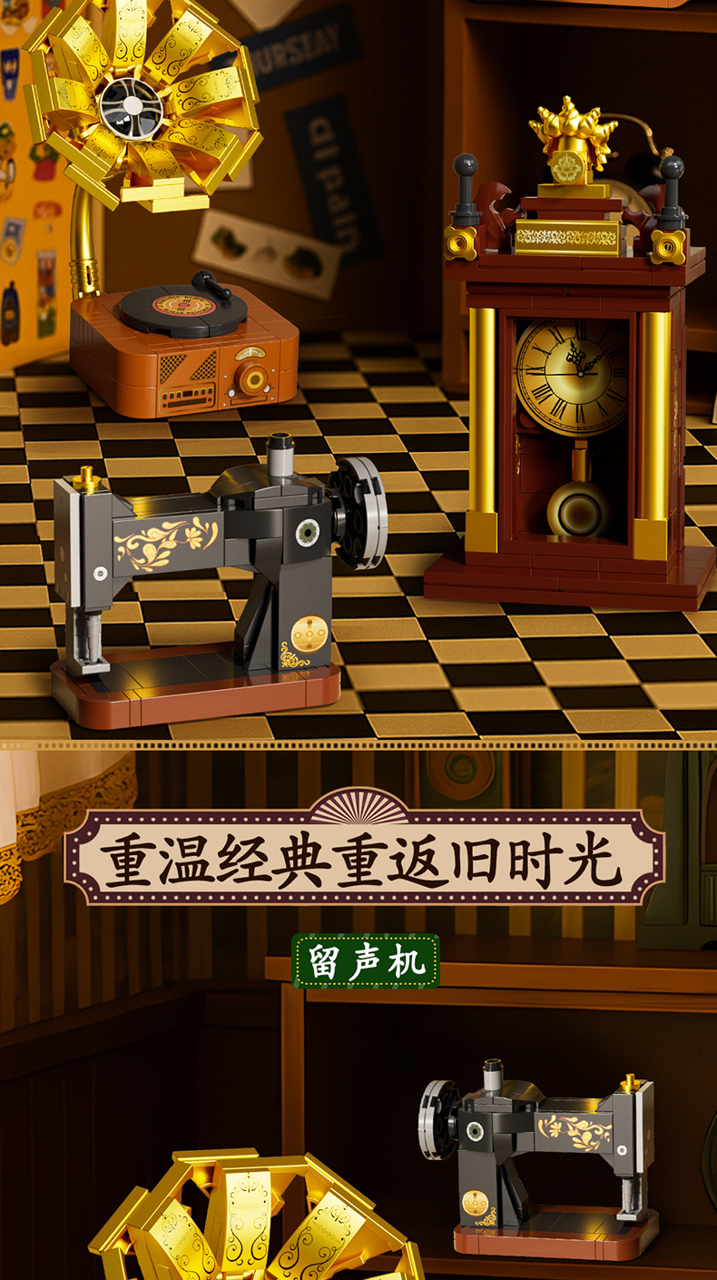 Peron Oranye Simulasikan Retro Perekam Mini Model Telepon Gramofon Teka-teki Rakitan Partikel Kecil Blok Bangunan Mainan