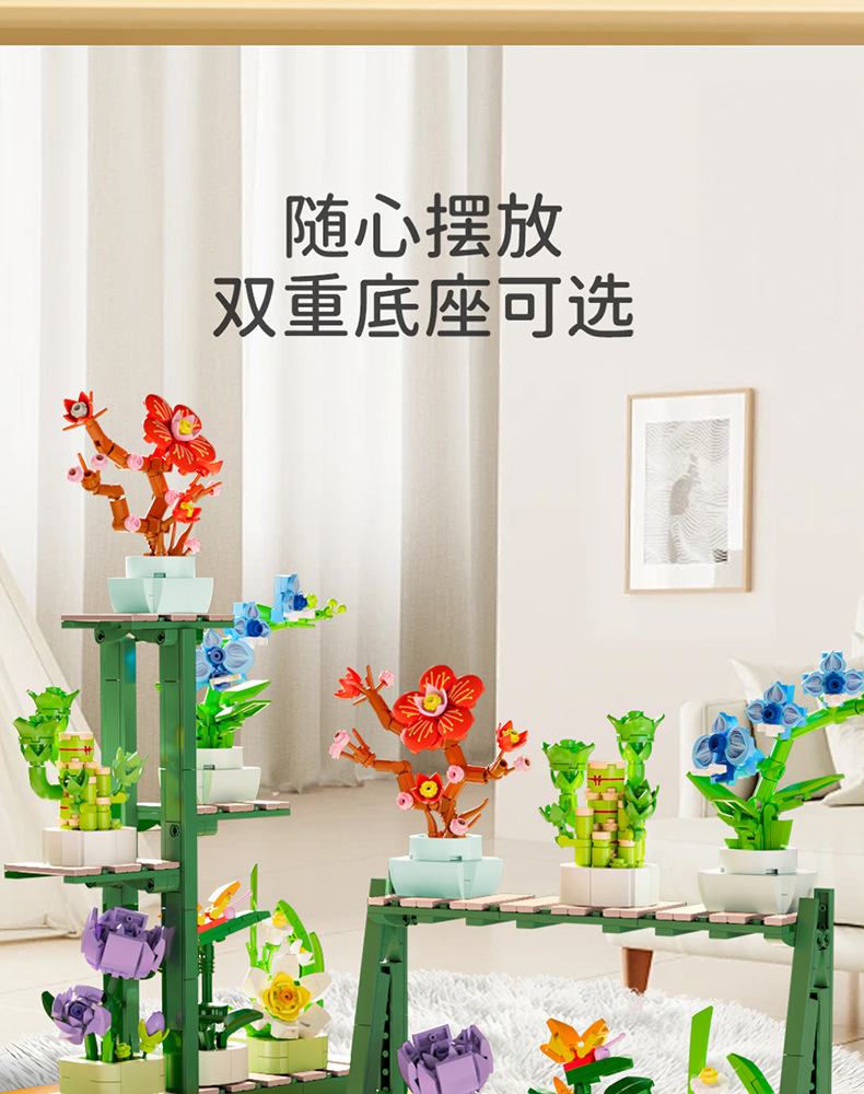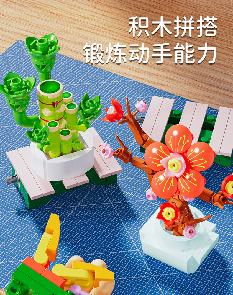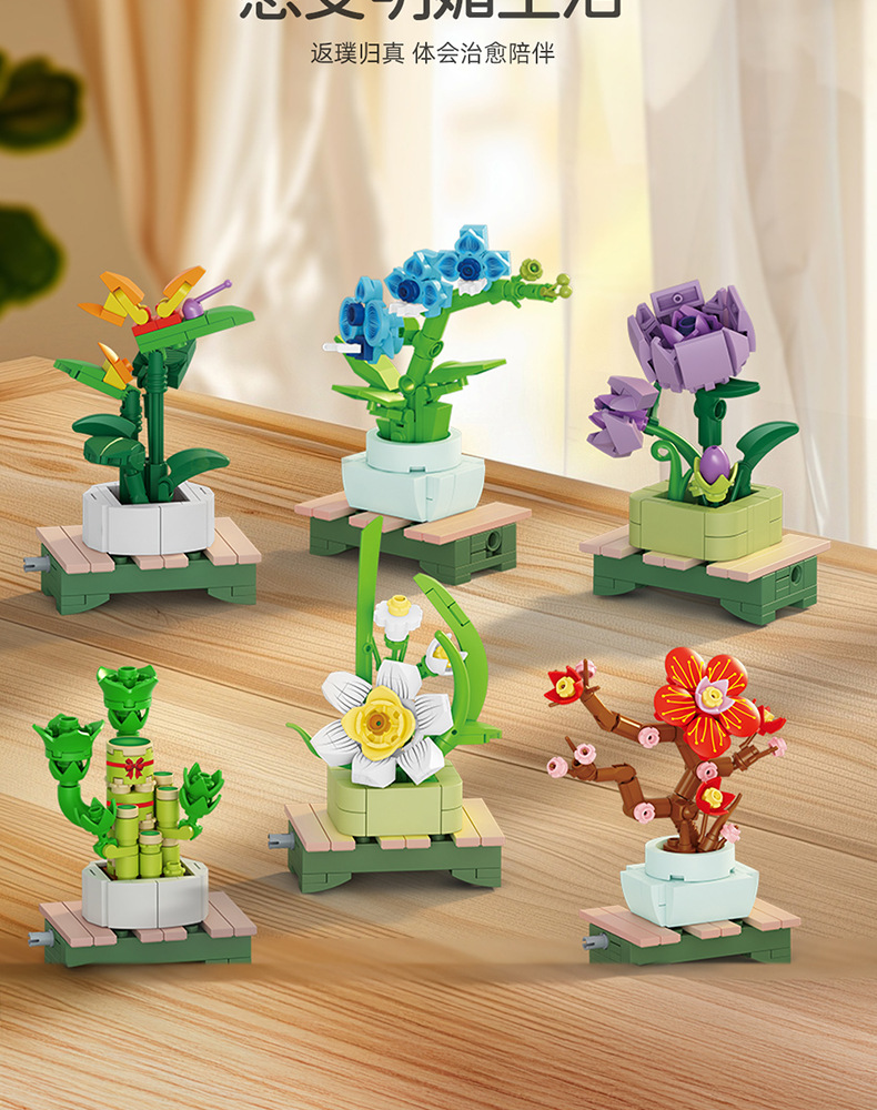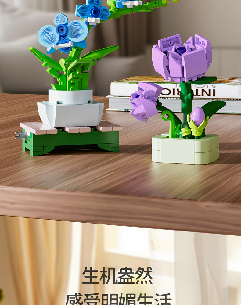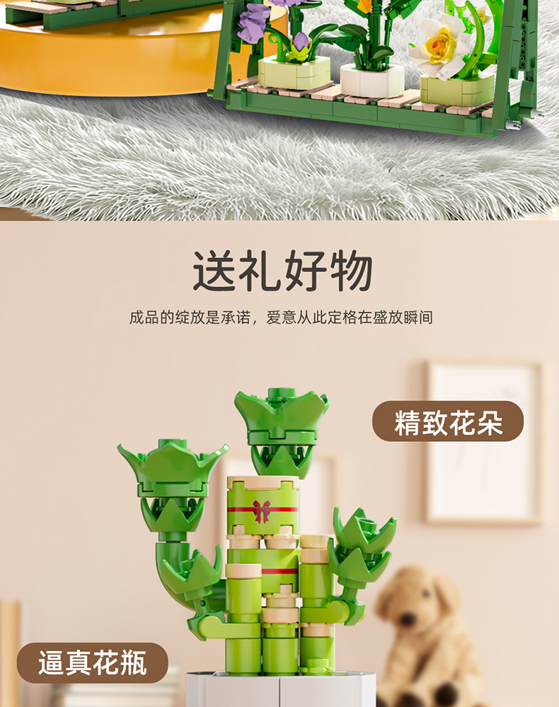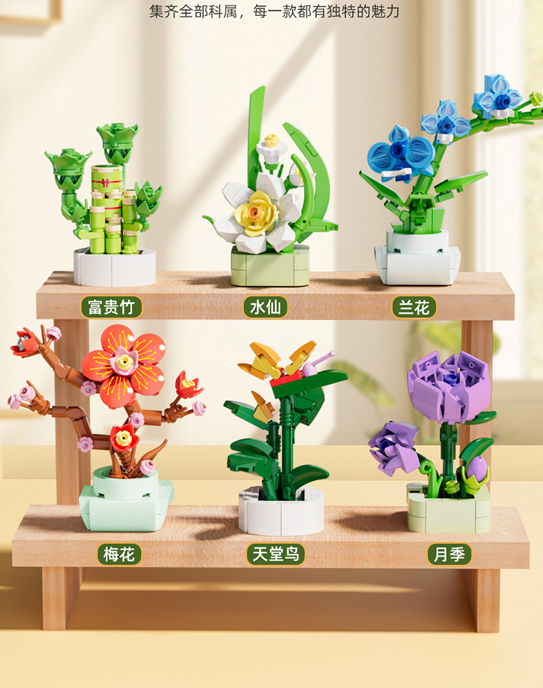 Balok Jeruk Perpersegi Anak-anak Teka-teki Bunga Tanaman Pot Rakitan Model Anggrek Mainan Anak Laki-laki Kompatibel Lego Hadiah