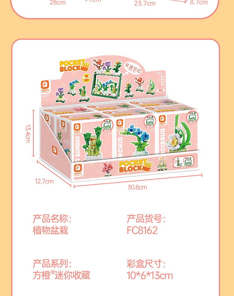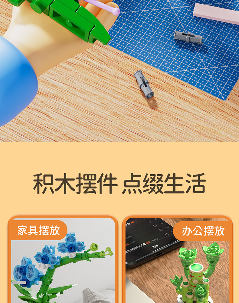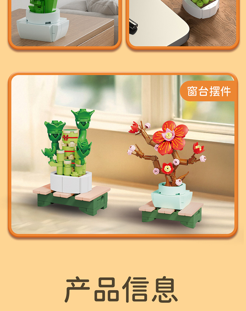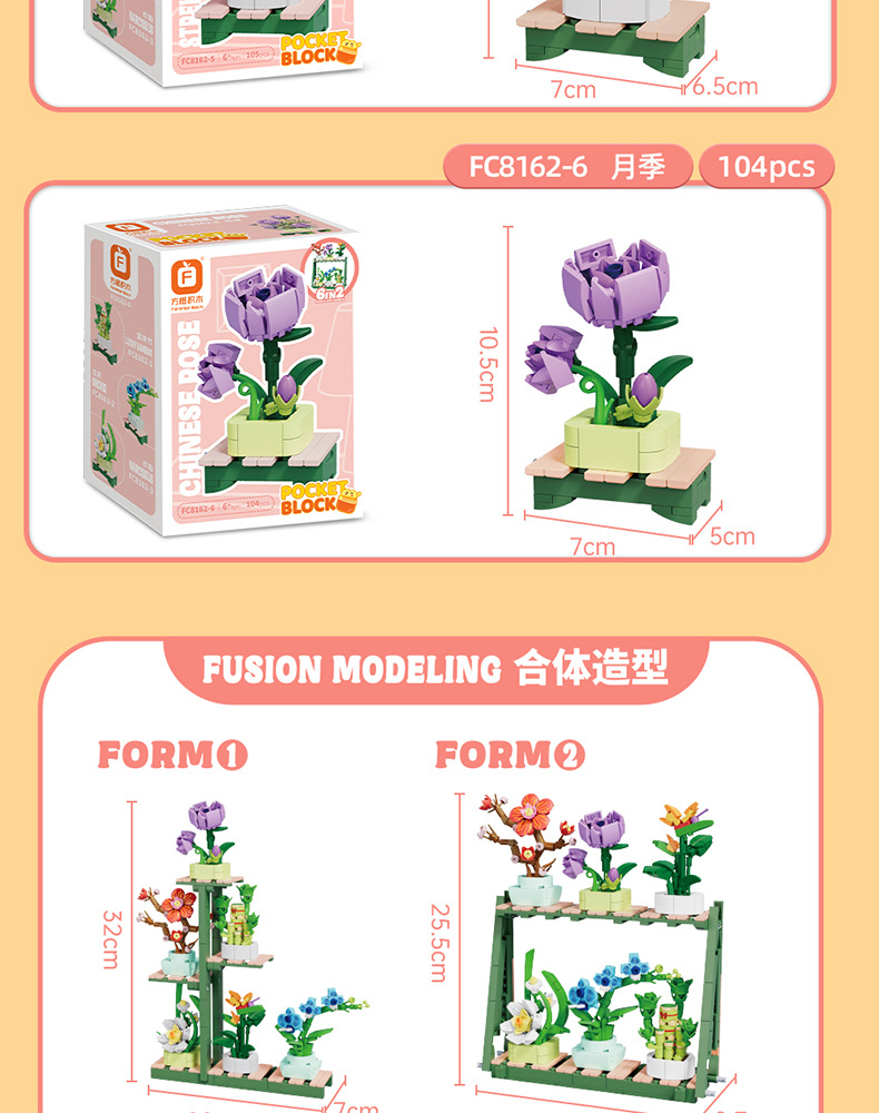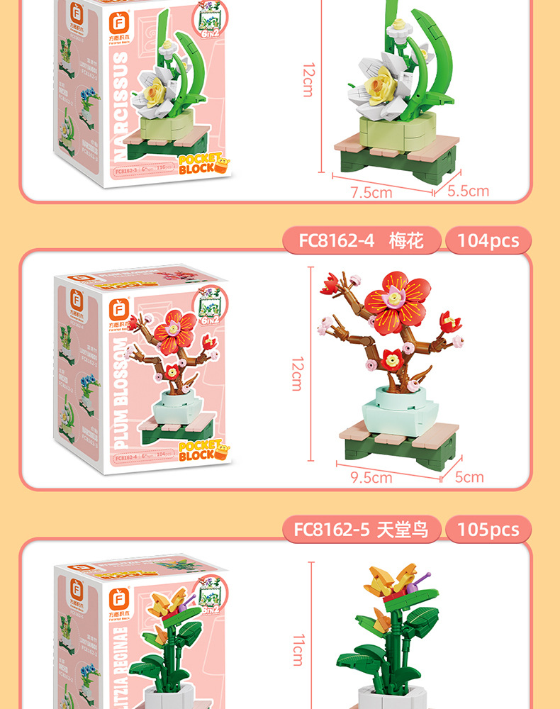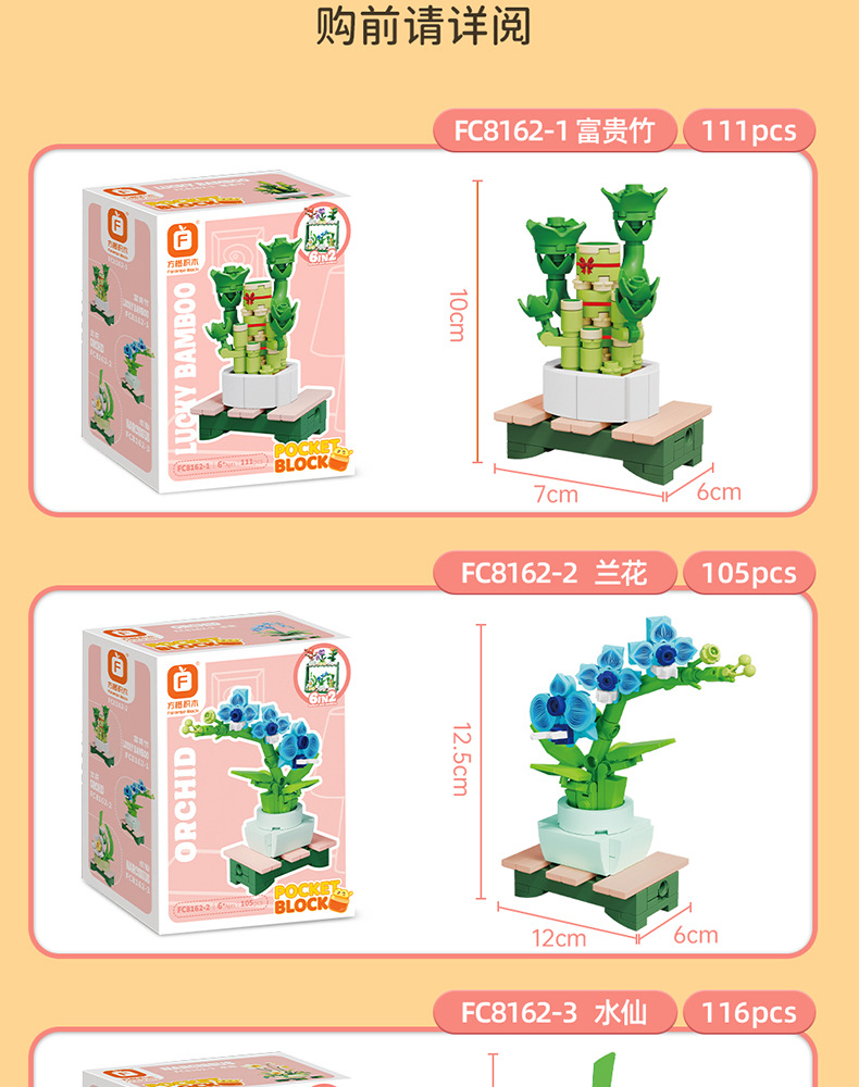 Balok Jeruk Perpersegi Anak-anak Teka-teki Bunga Tanaman Pot Rakitan Model Anggrek Mainan Anak Laki-laki Kompatibel Lego Hadiah