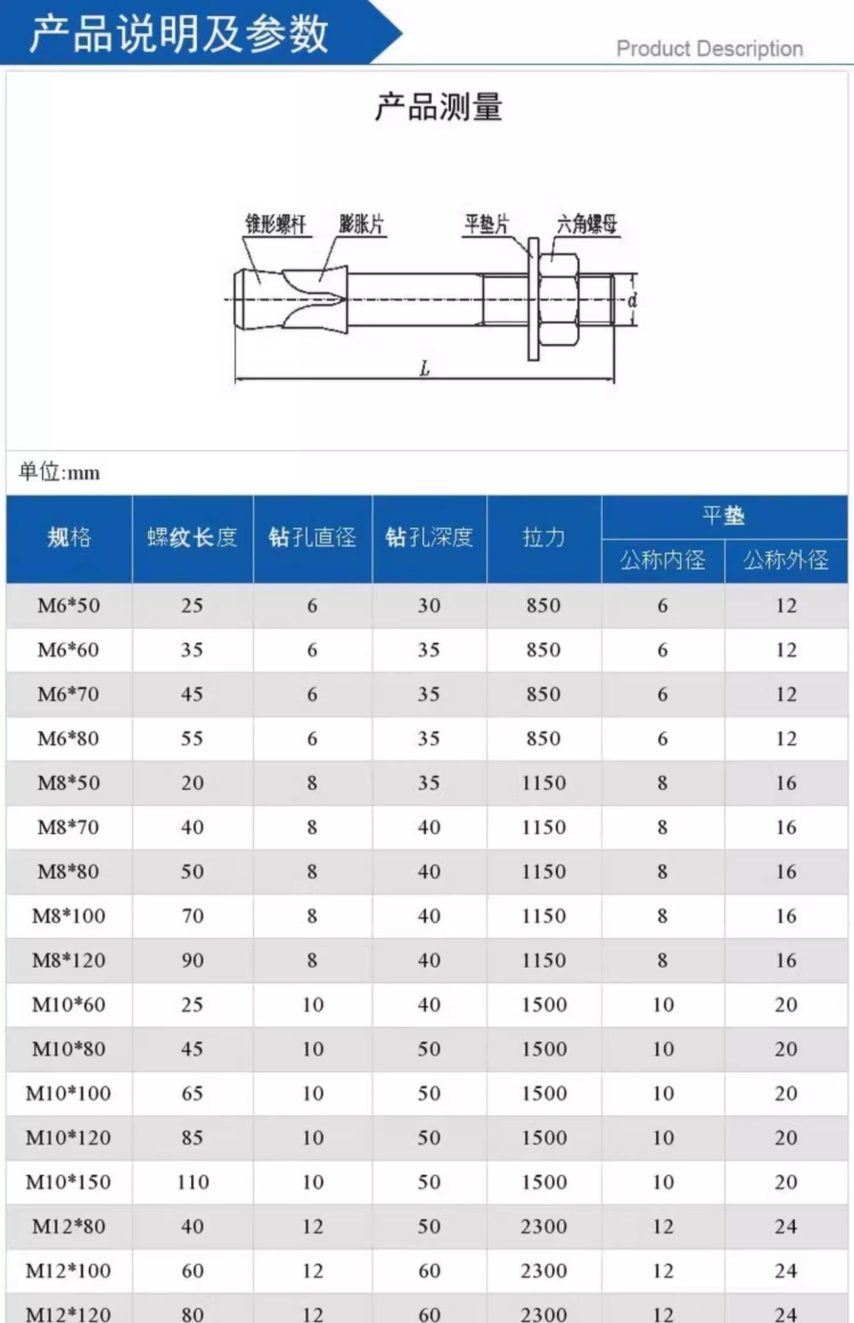 国标镀锌高强度强力车修膨胀螺丝壁虎拉爆电梯专用螺栓M6M8-M20mm