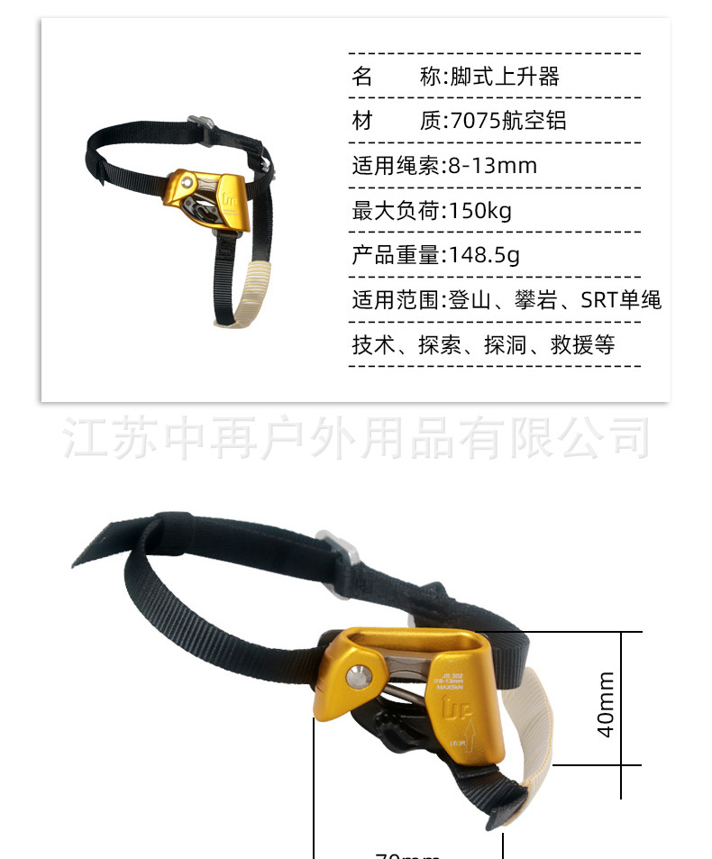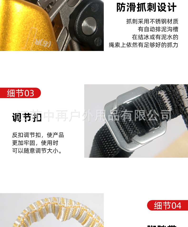 中再户外攀岩探洞左右脚脚式上升器绳索上升爬绳脚升登山攀岩装备