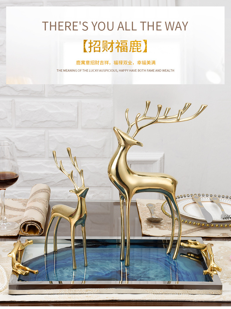 Ornamen logam rusa kuningan besar untuk ruang tamu, dekorasi rumah mewah, hadiah kreatif, kerajinan dekoratif grosir pabrik