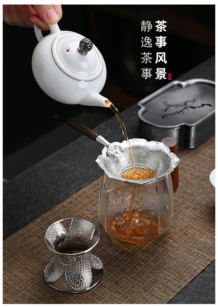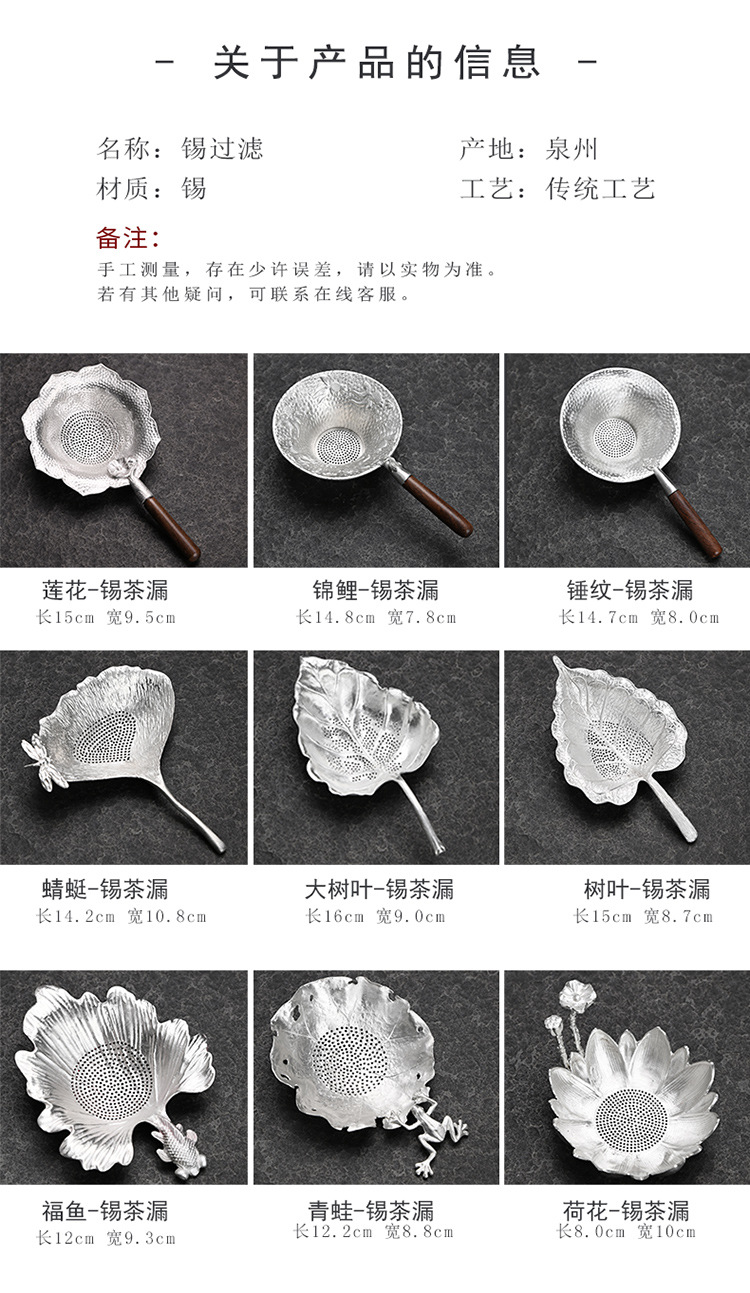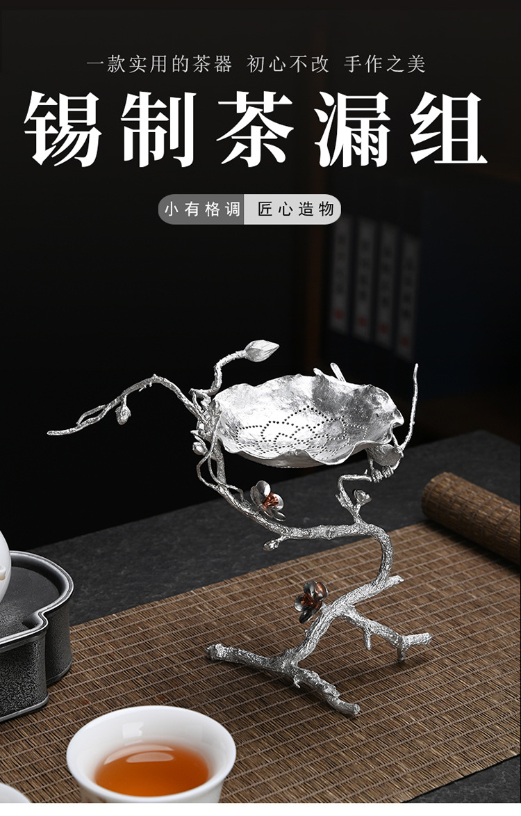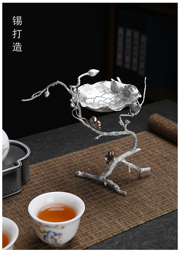 Penyaring teh kreatif, penyaring teh timah, penyaring teh murni, set penyaring jaring Jepang buatan tangan pola palu, penyaring teh kung fu, upacara nol cocok