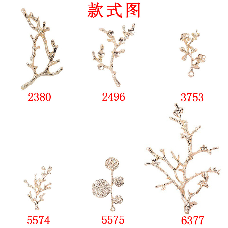 单杆树枝树杈合金配件diy古风汉服发饰发冠腊梅花枝挂件手工饰品