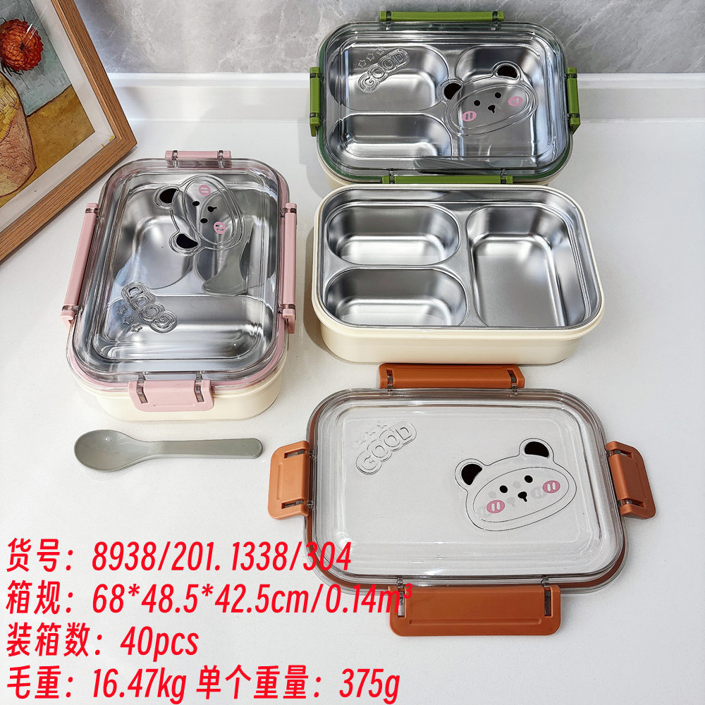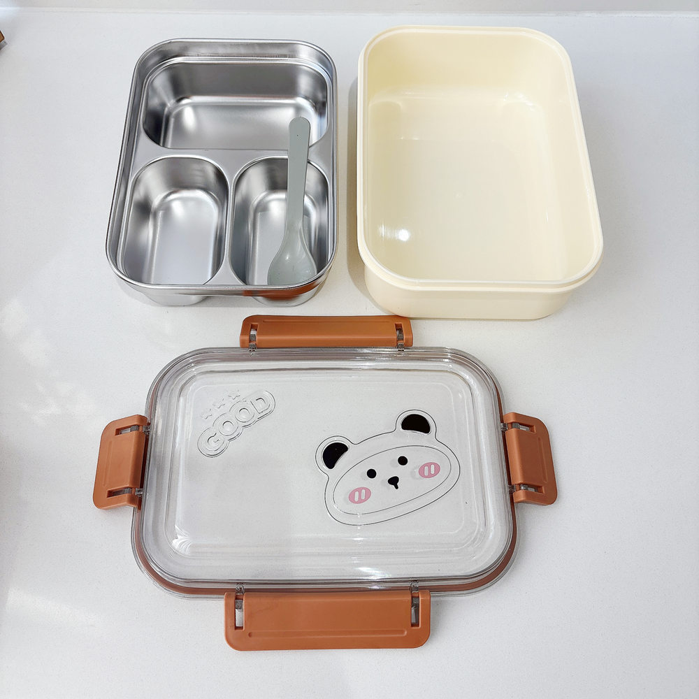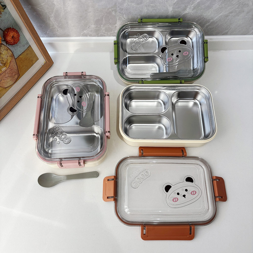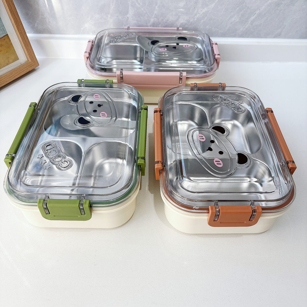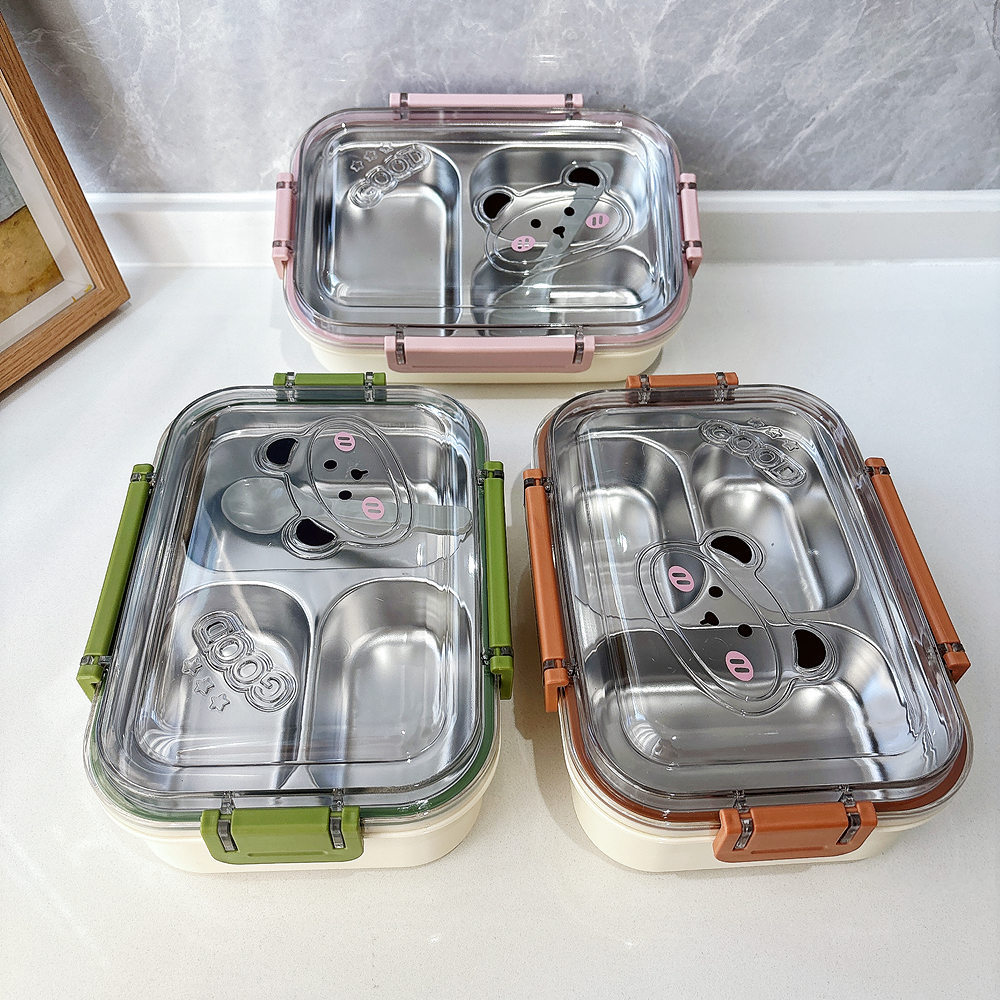 大容量不锈钢饭盒双层保温加热午餐盒学生上班族长方形便当盒批发