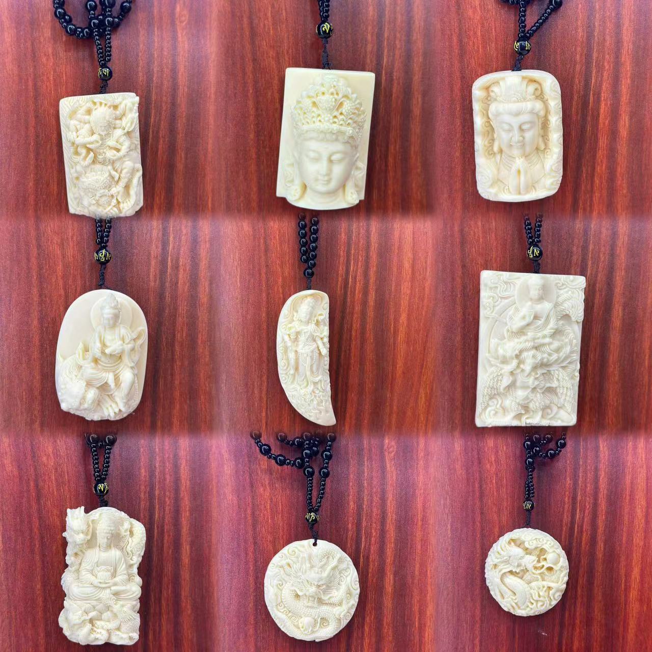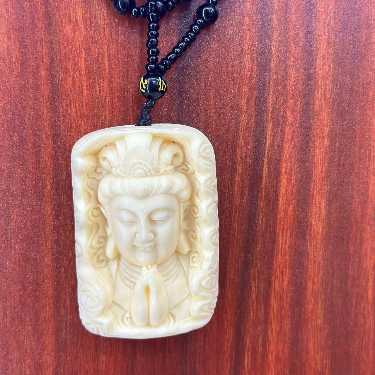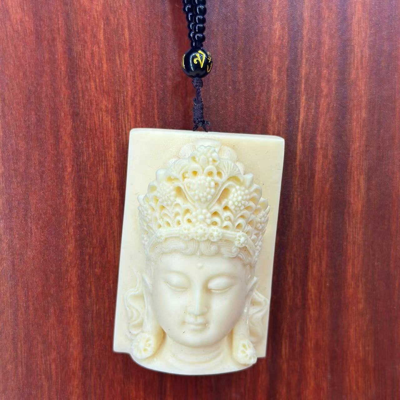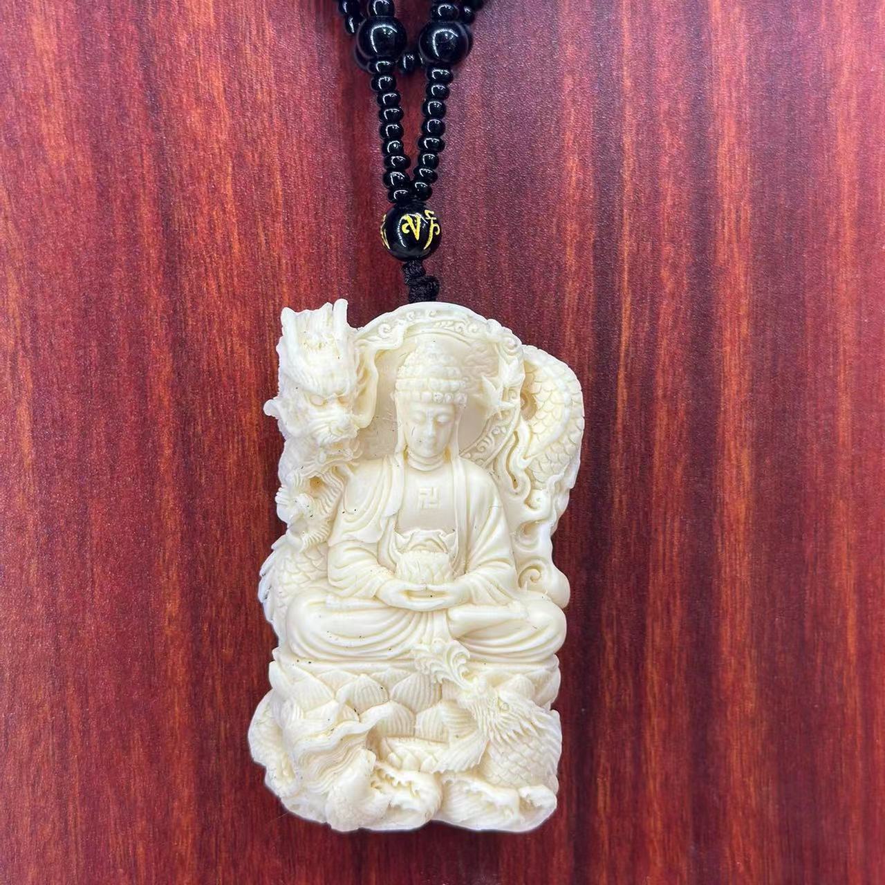 象牙果雕刻大日如来月牙御龙观音菩萨龙牌461吊坠车载挂件批发