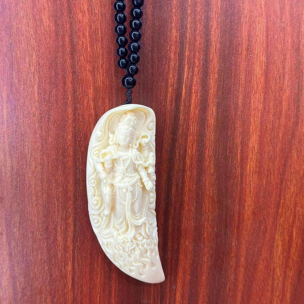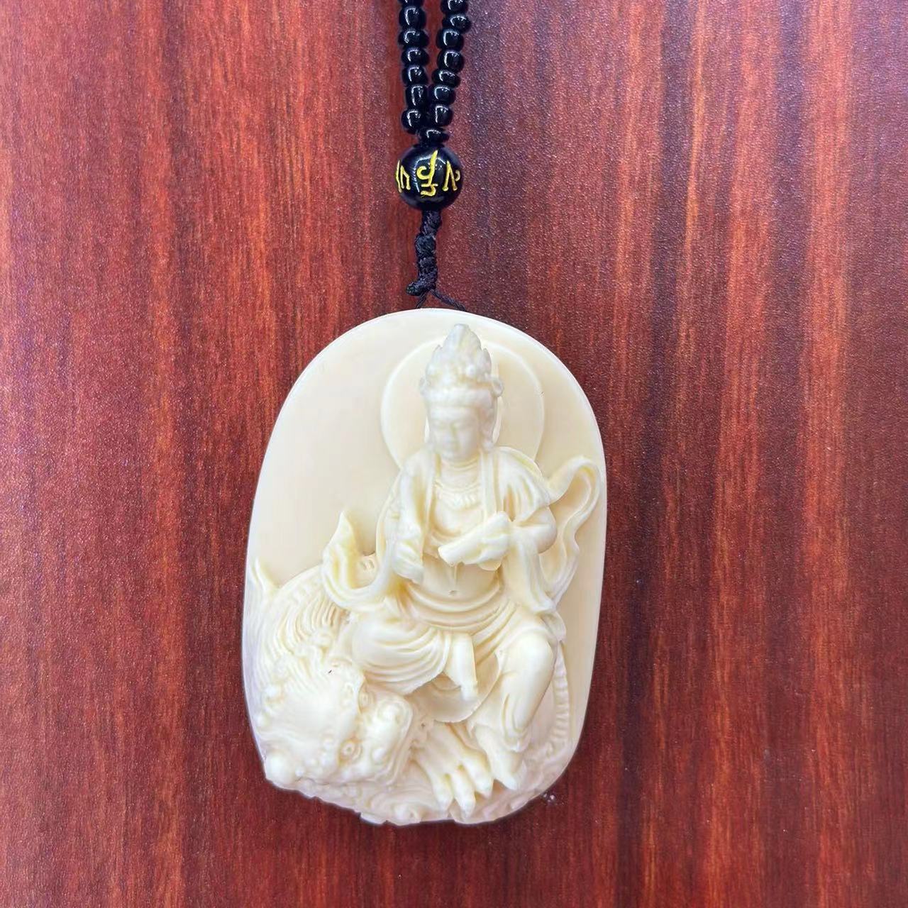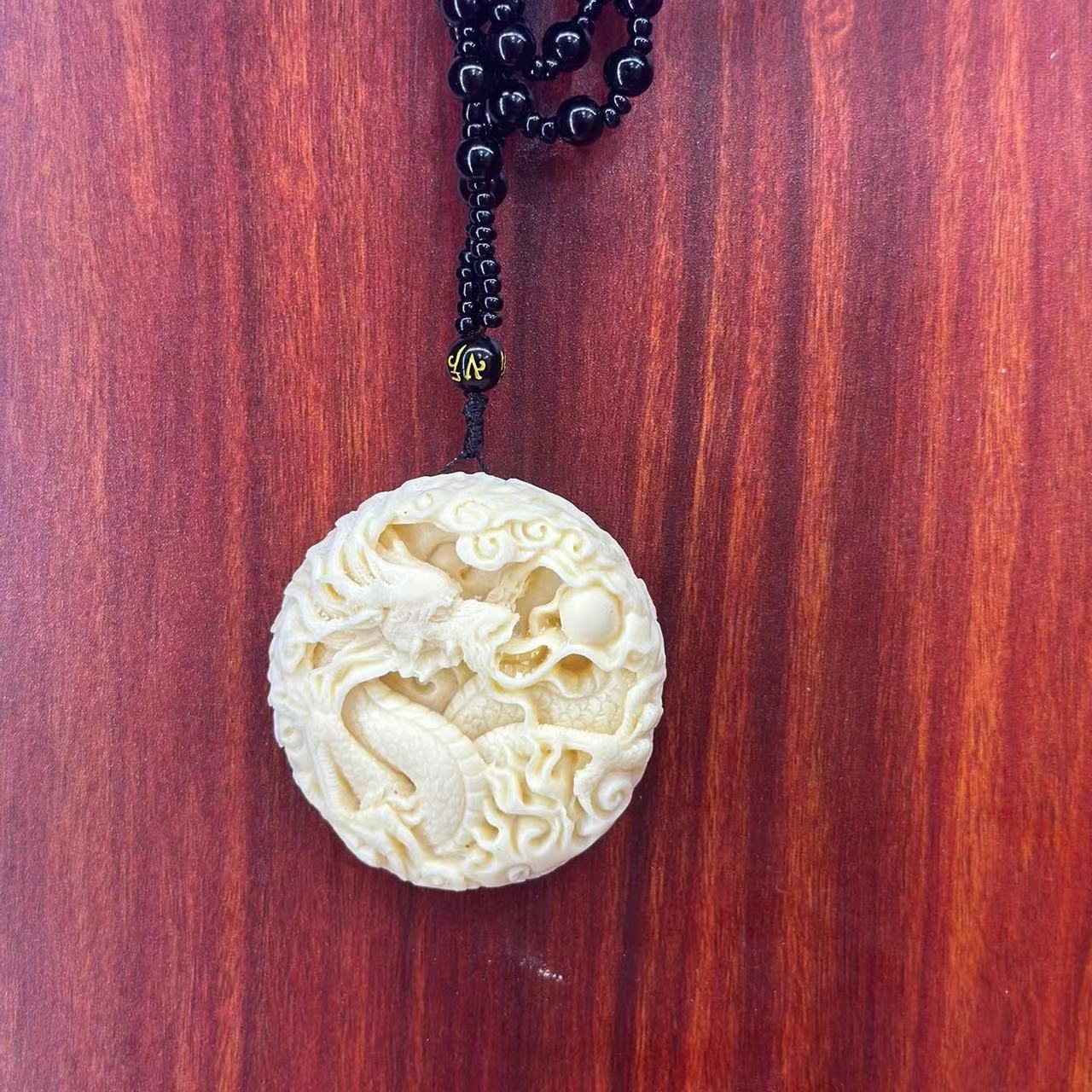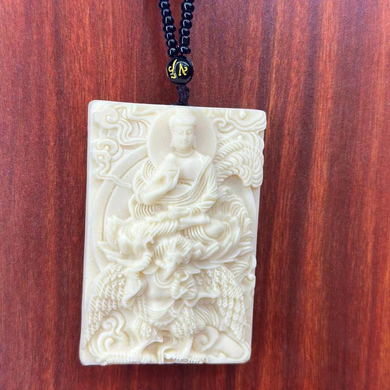 象牙果雕刻大日如来月牙御龙观音菩萨龙牌461吊坠车载挂件批发