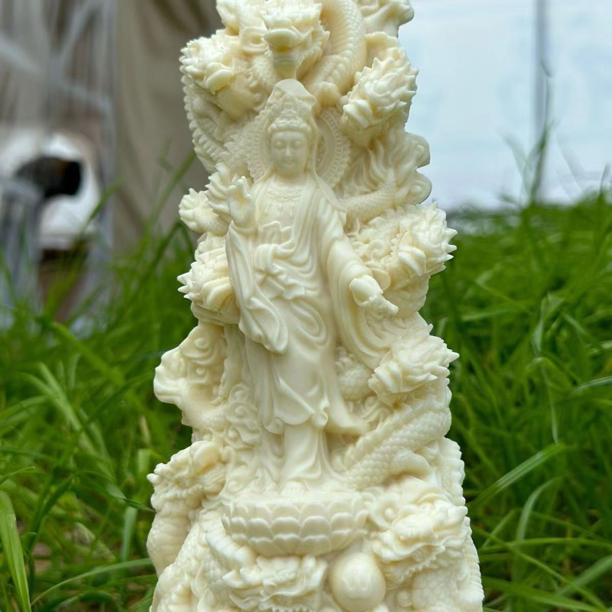 温馨提示:象牙果果实本身是很小的,工艺品一般是比较大一点,是采用果实磨成粉,通过机器压模雕刻,人工精修打磨而成。密度高且重手感好。因为果实的部位不同,个别颜色也会有稍许差异。我们发货的时候会给客户挑选品相比较好一点的。