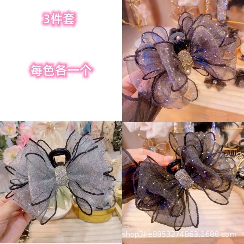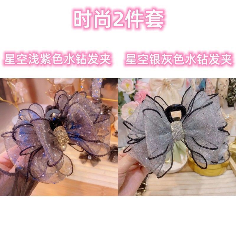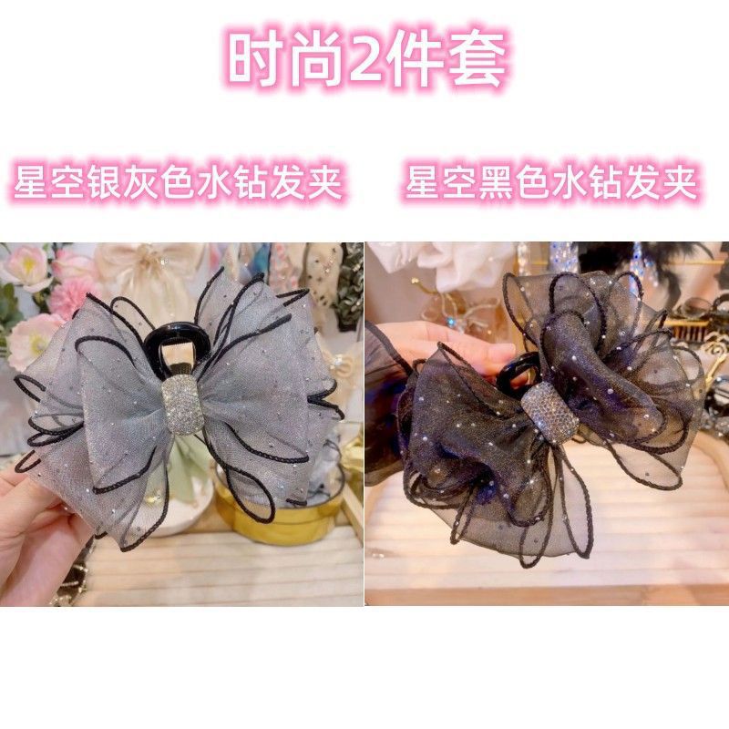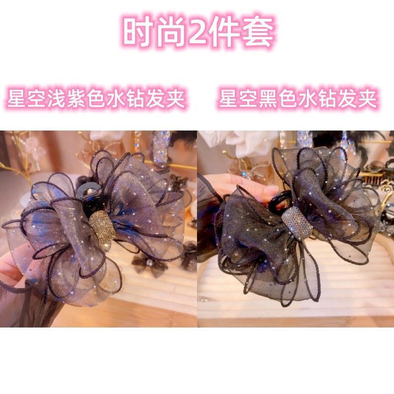 抓夹大号高级感水钻网纱双面蝴蝶结后脑勺盘发鲨鱼夹发卡发夹发饰