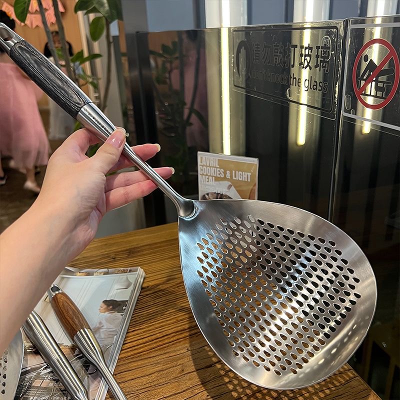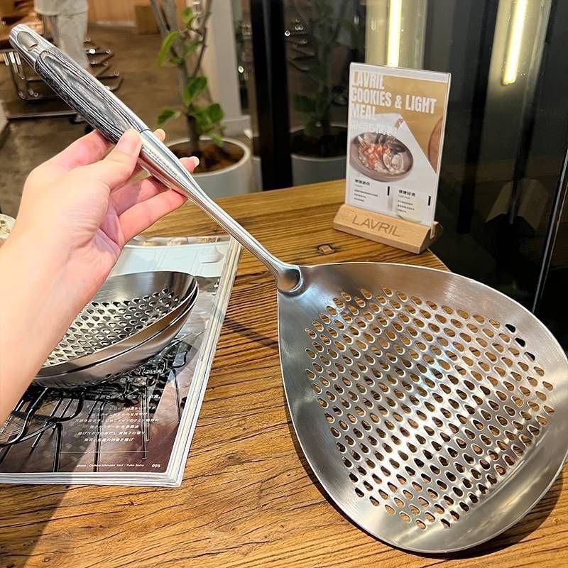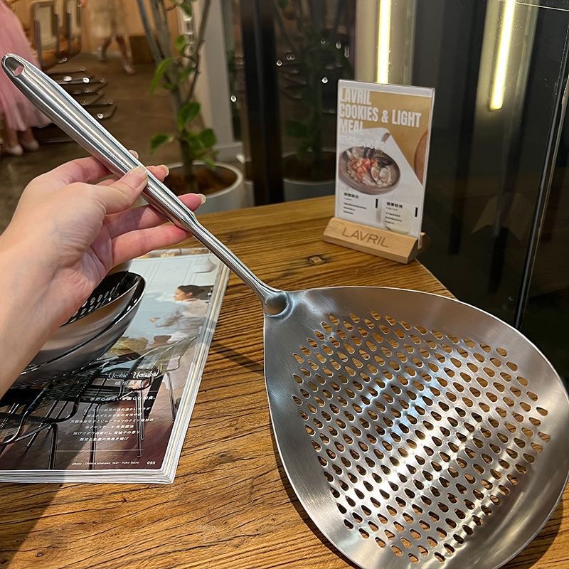 Sendok Saringan Lada Stainless Steel Tambah Besar Sendok Dapur Gagang Panjang Sendok Mie Pangsit Rumah Tangga Sendok Saringan Tirisan Lada