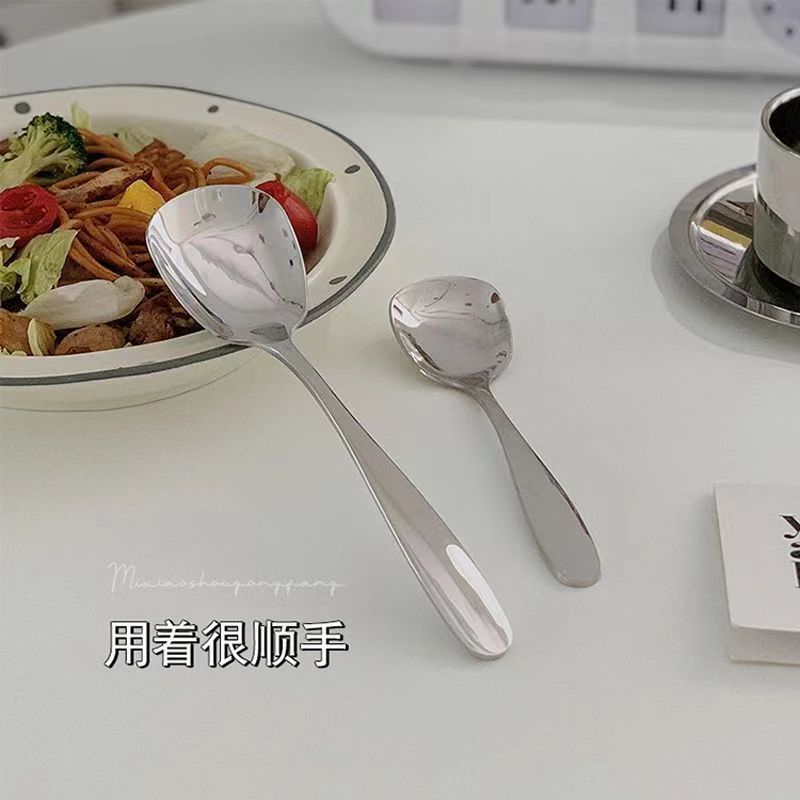 Sendok Stainless steel dewasa, sendok stainless steel pegangan pendek, sendok flat selebriti Internet, sendok makan anak-anak